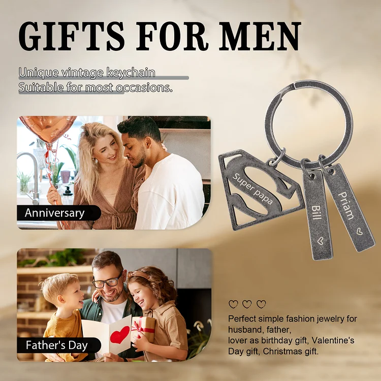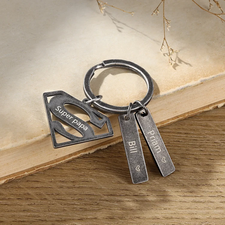 Portachiavi vintage superman supereroe ci protegge per papà padre marito nonno uomo della famiglia 2 nomi personalizzati