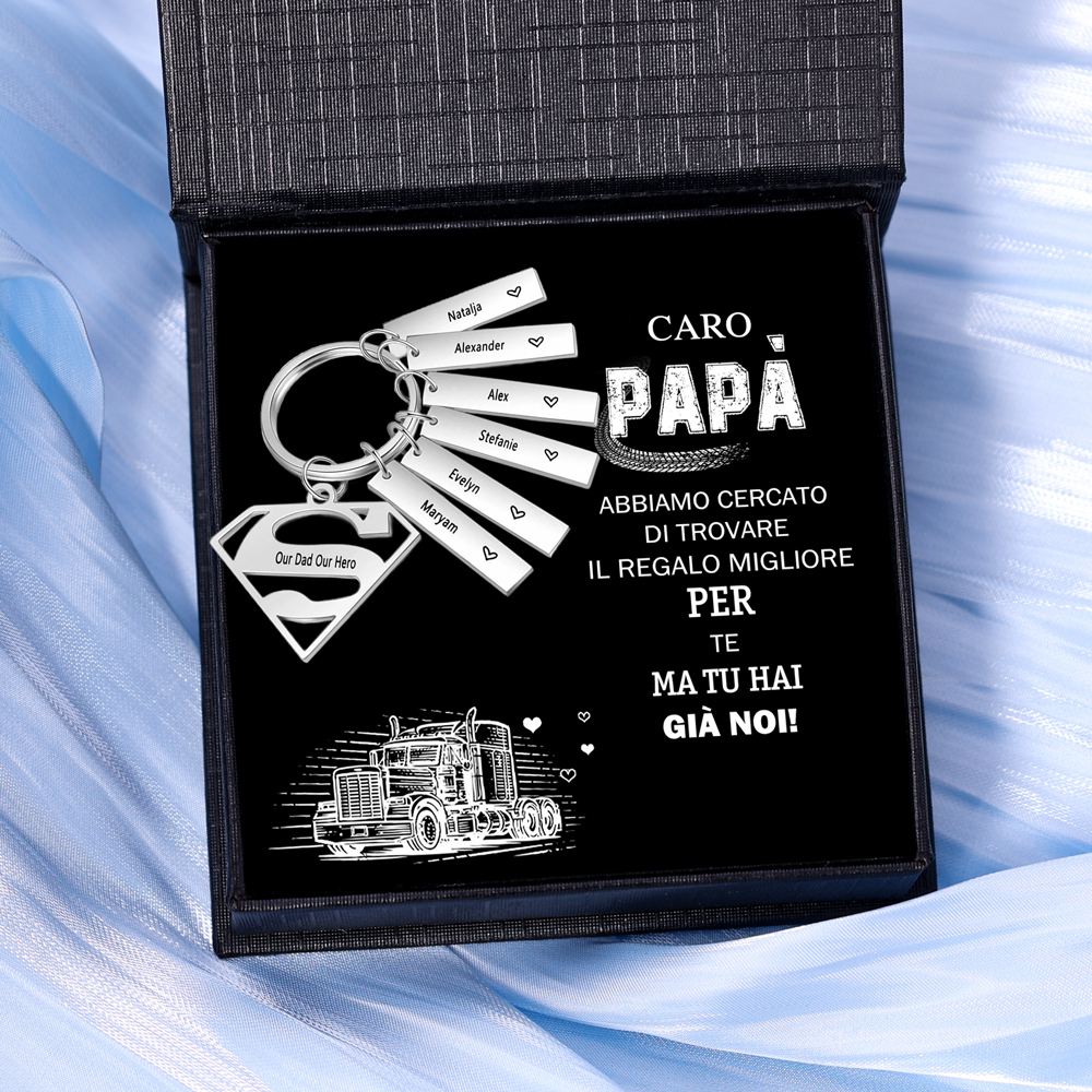 Caro papà-Portachiavi superman supereroe per papà padre marito nonno uomo 6 nomi personalizzati