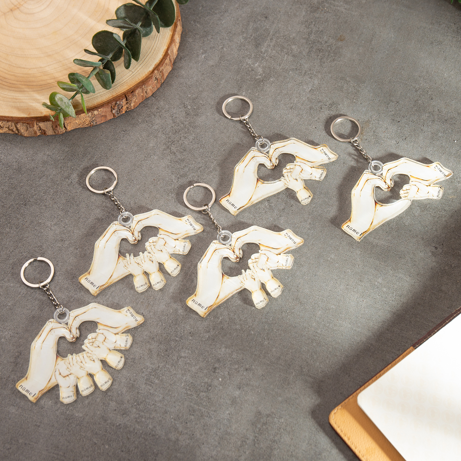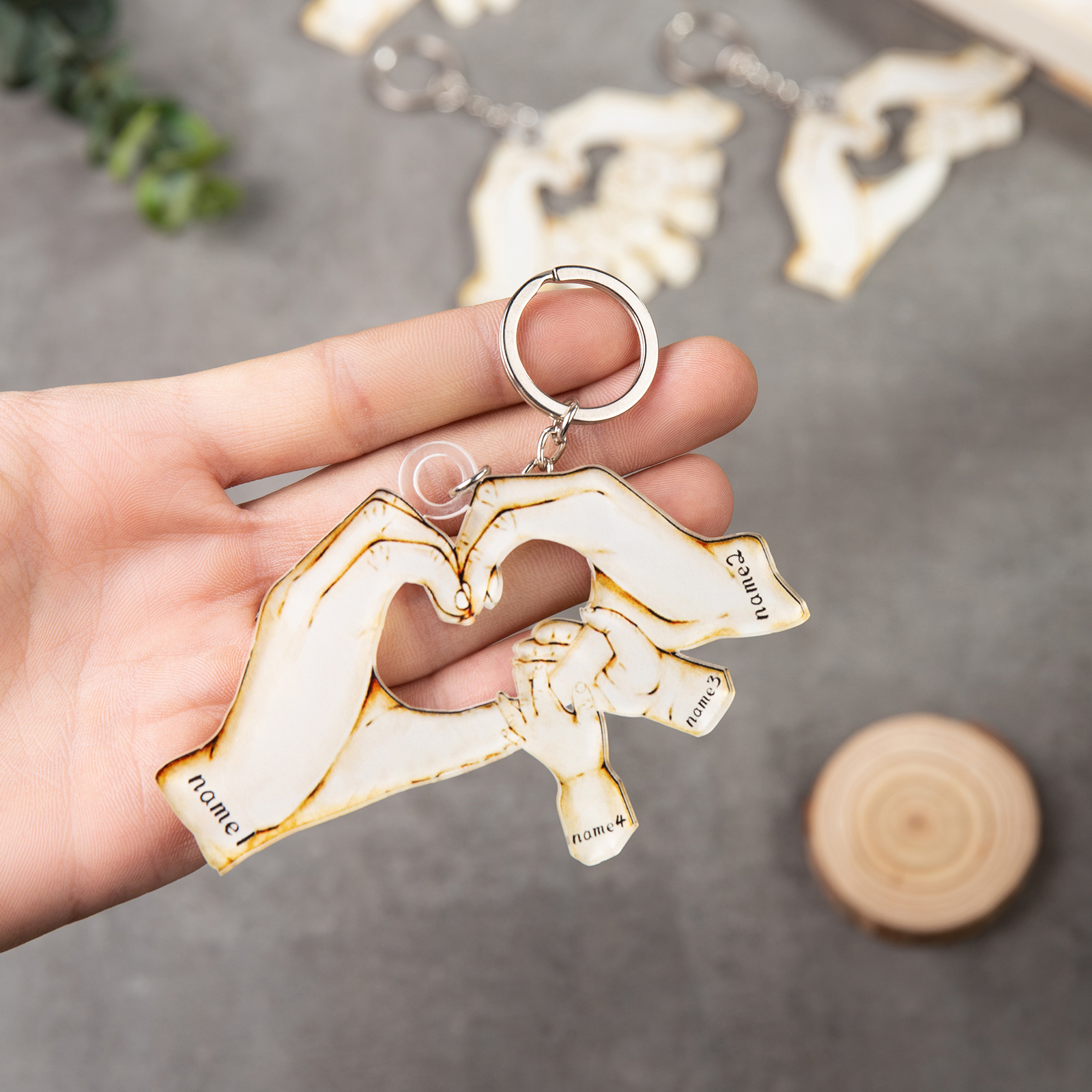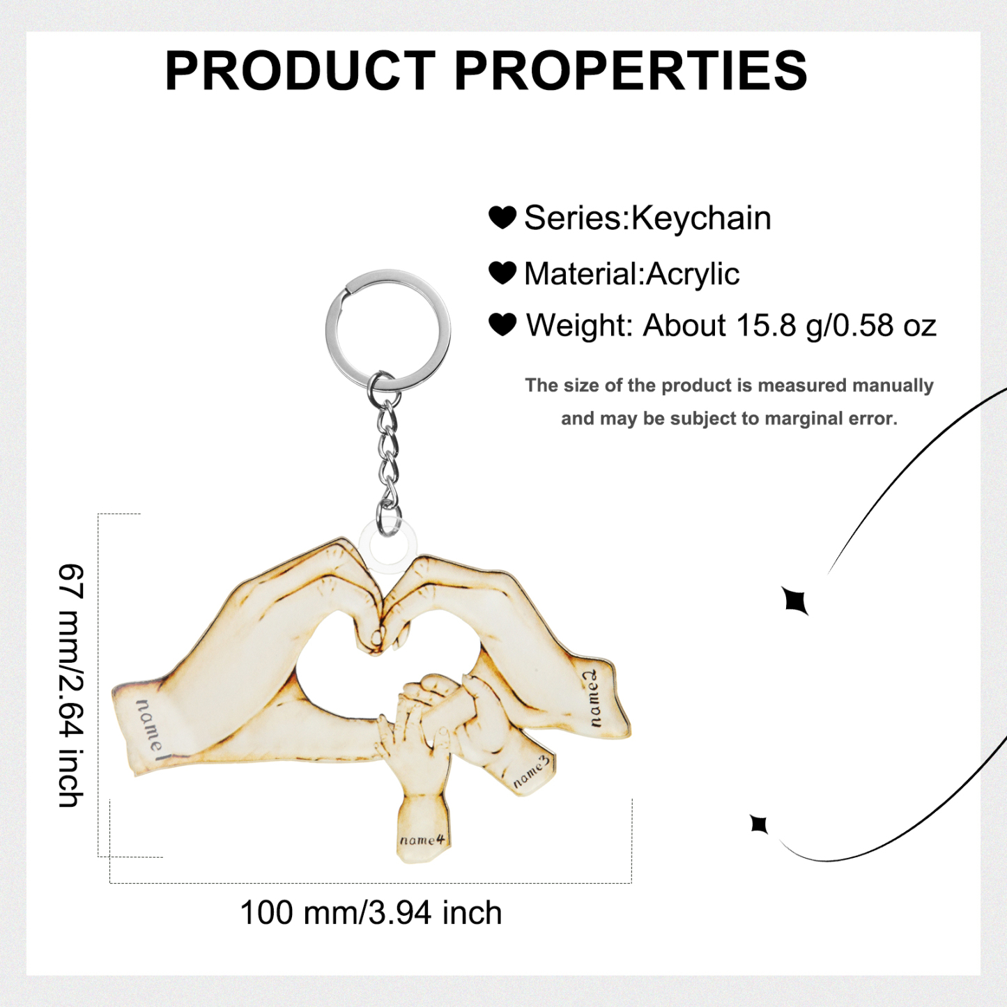 Portachiavi mano a mano cuore 4 nomi personalizzabili membri della famiglia unione