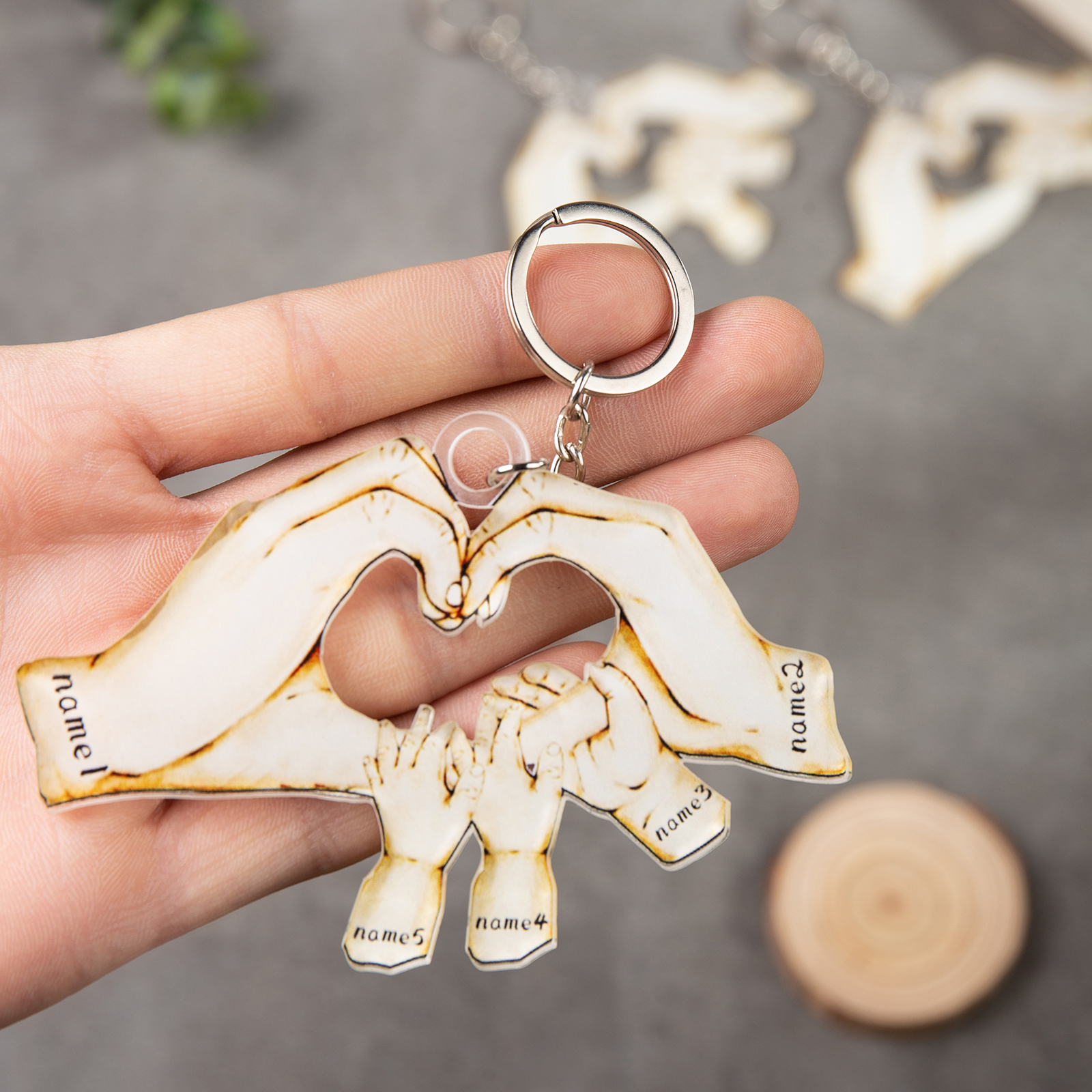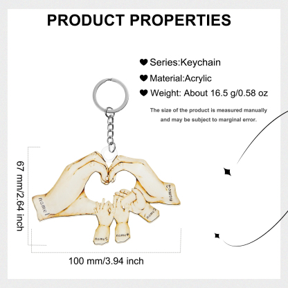 Portachiavi mano a mano cuore 5 nomi personalizzabili membri della famiglia unione