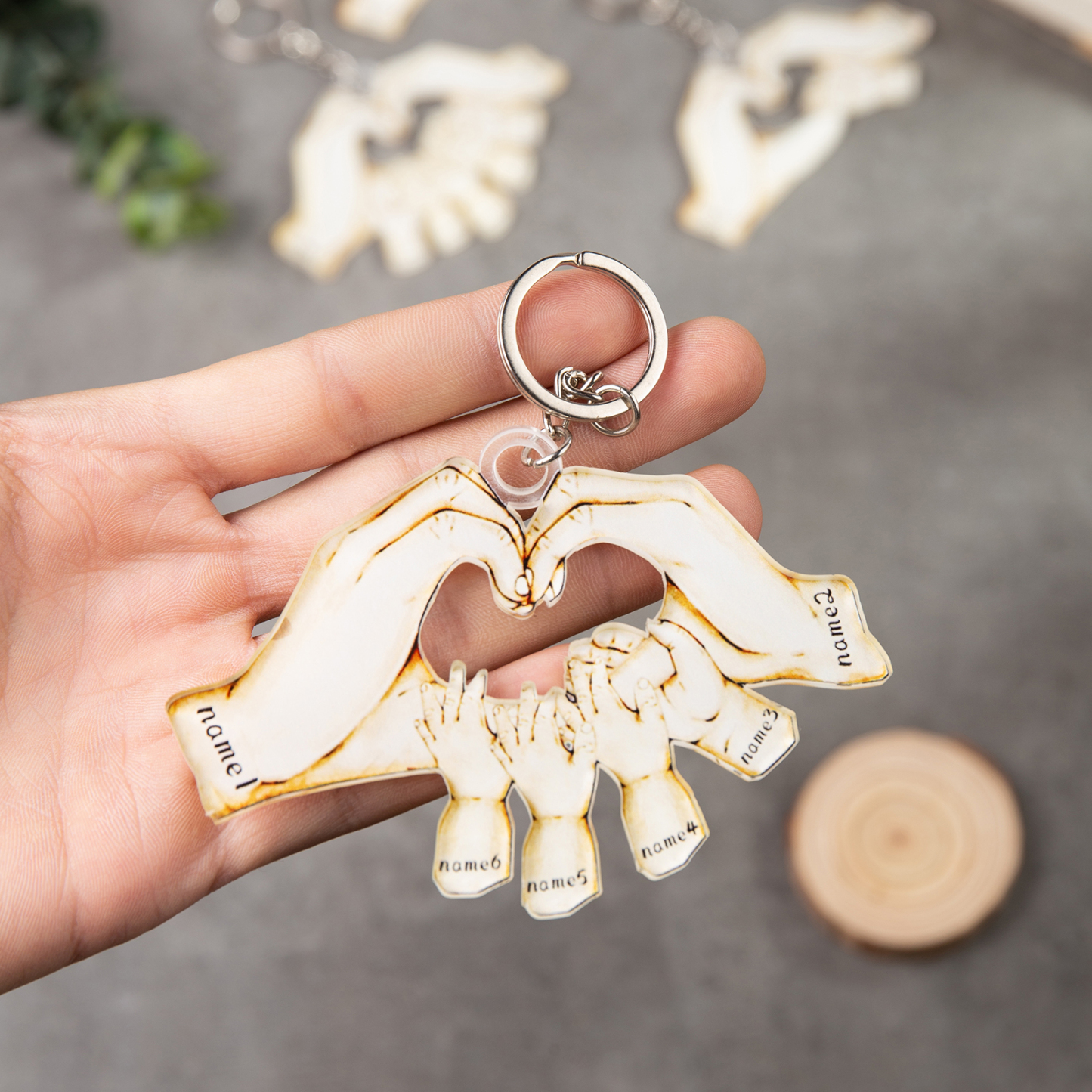 Portachiavi mano a mano cuore 6 nomi personalizzabili membri della famiglia unione