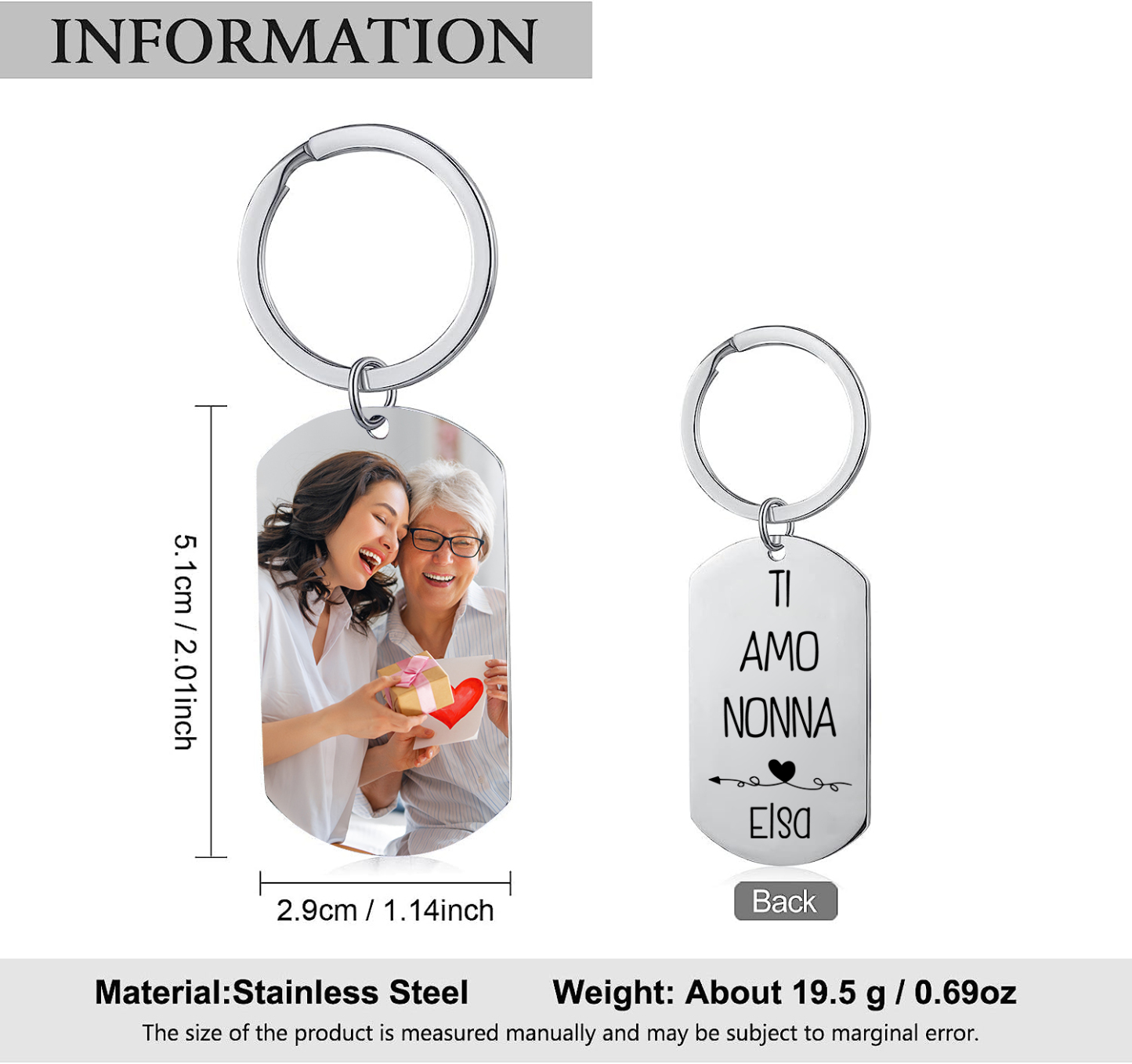 Portachiavi personalizzabile foto e nome alla nonna festa dei nonni