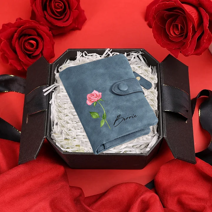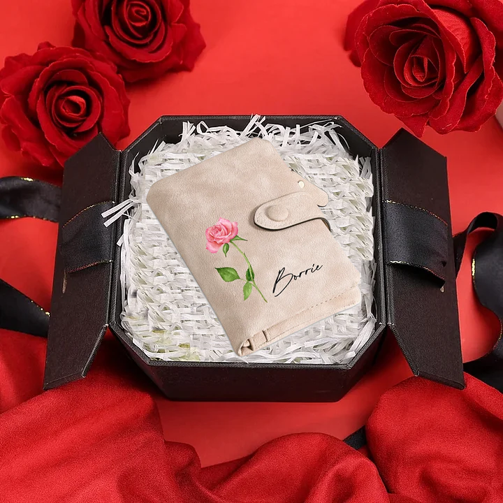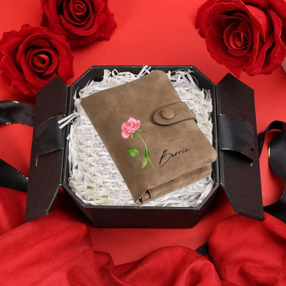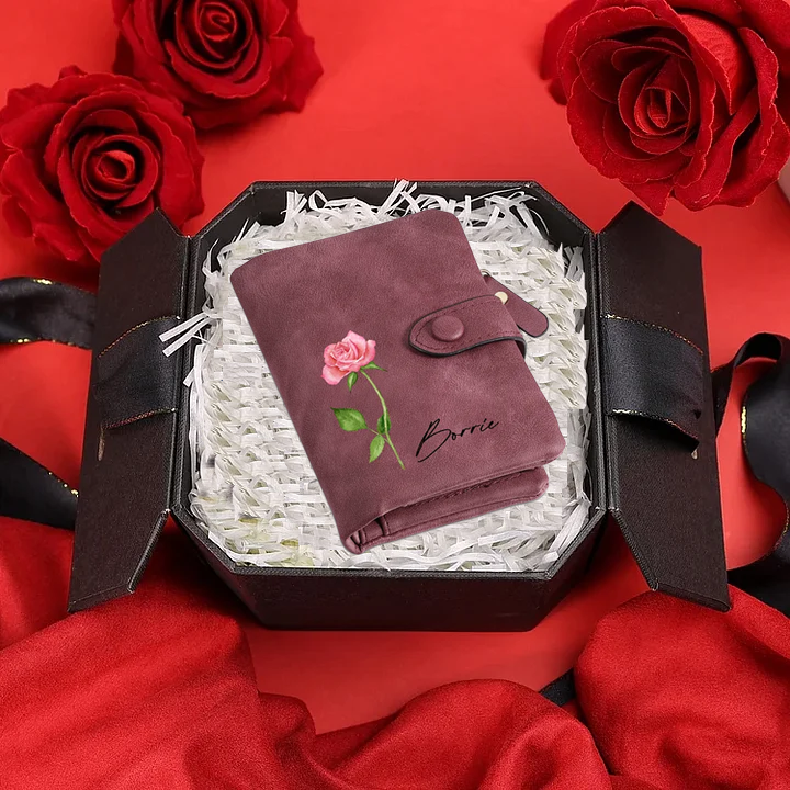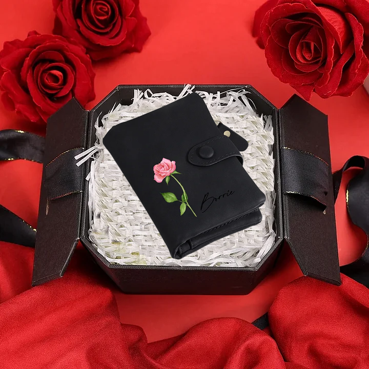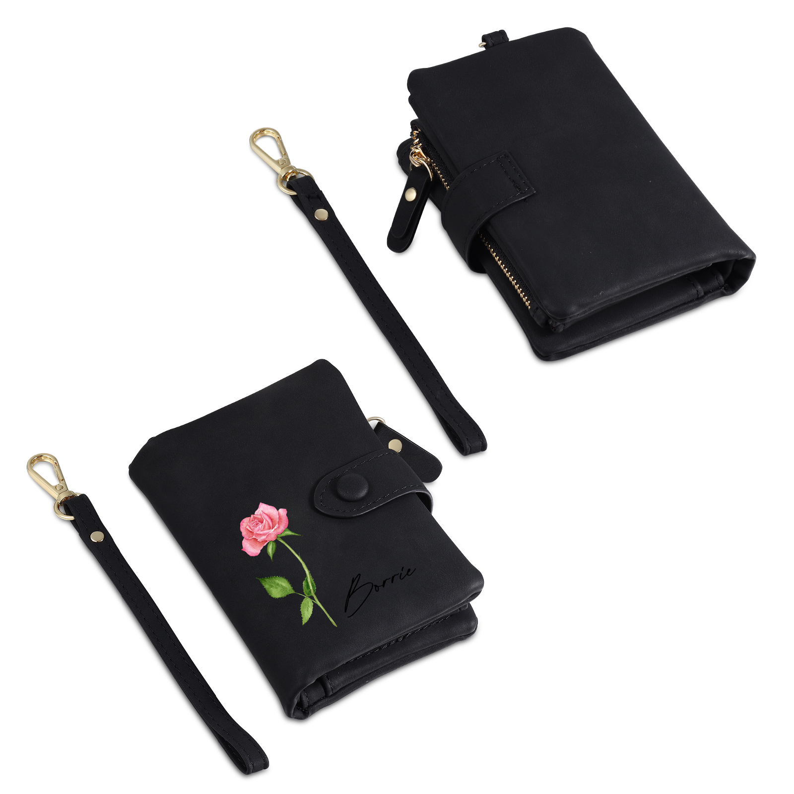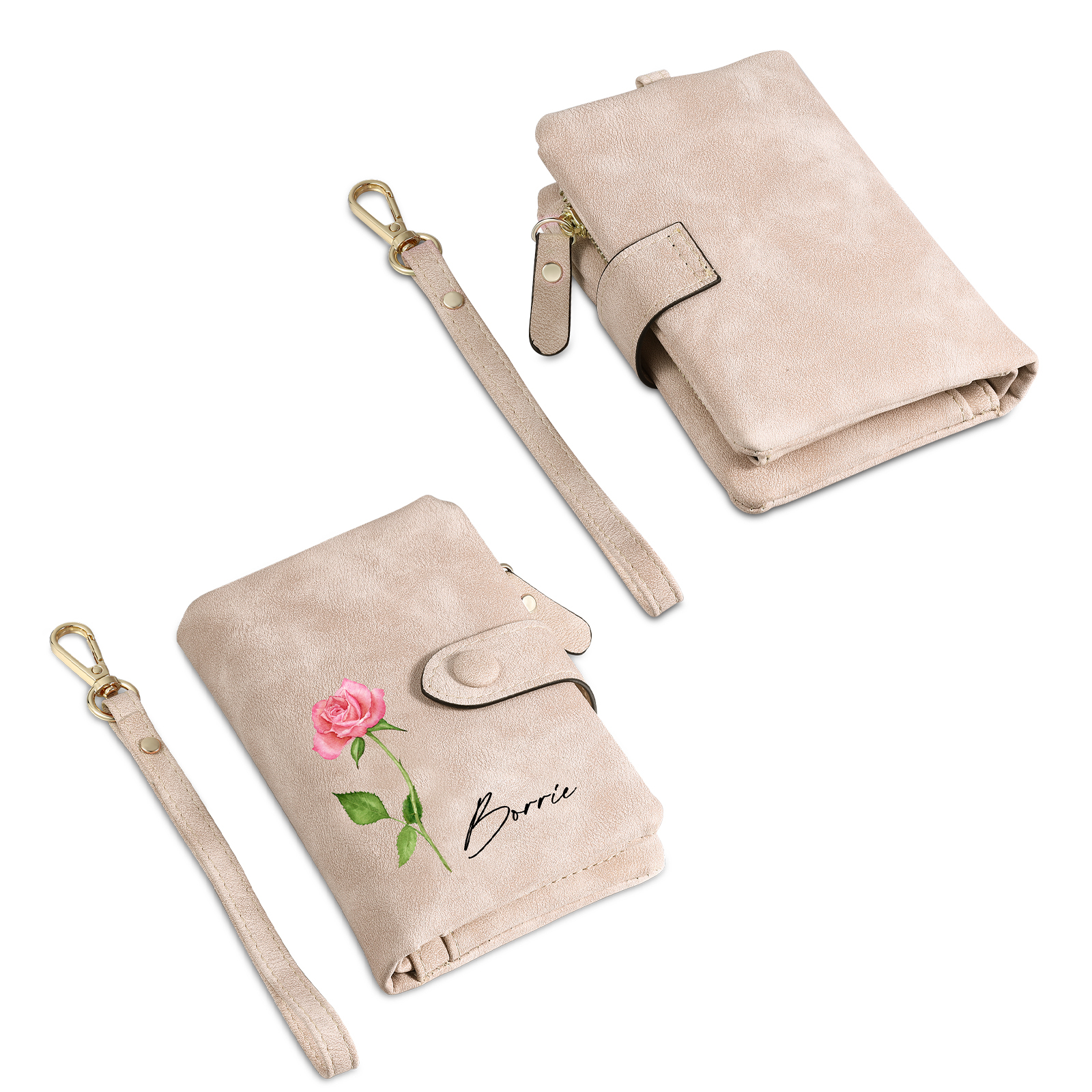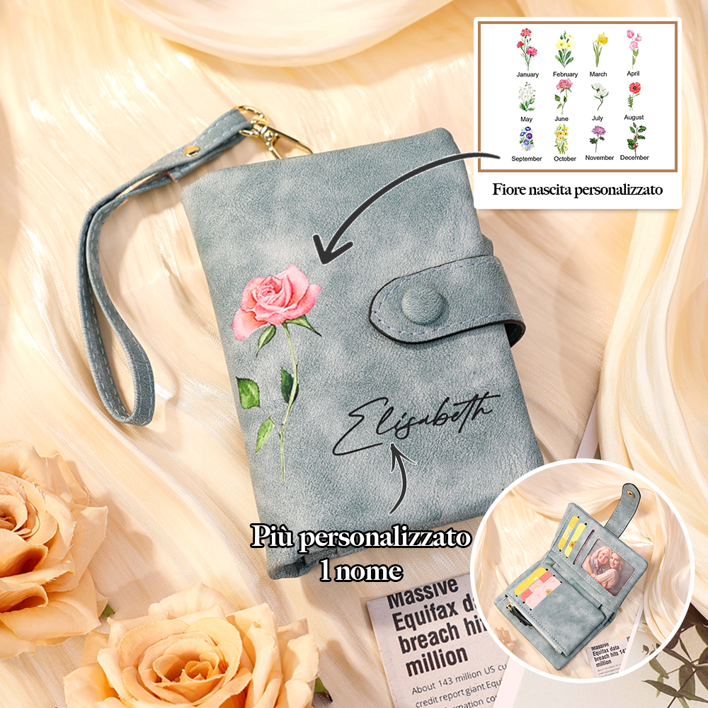 Portafoglio da donna in pelle PU 1 nome e 1 fiore di nascita regalo personalizzato per donna