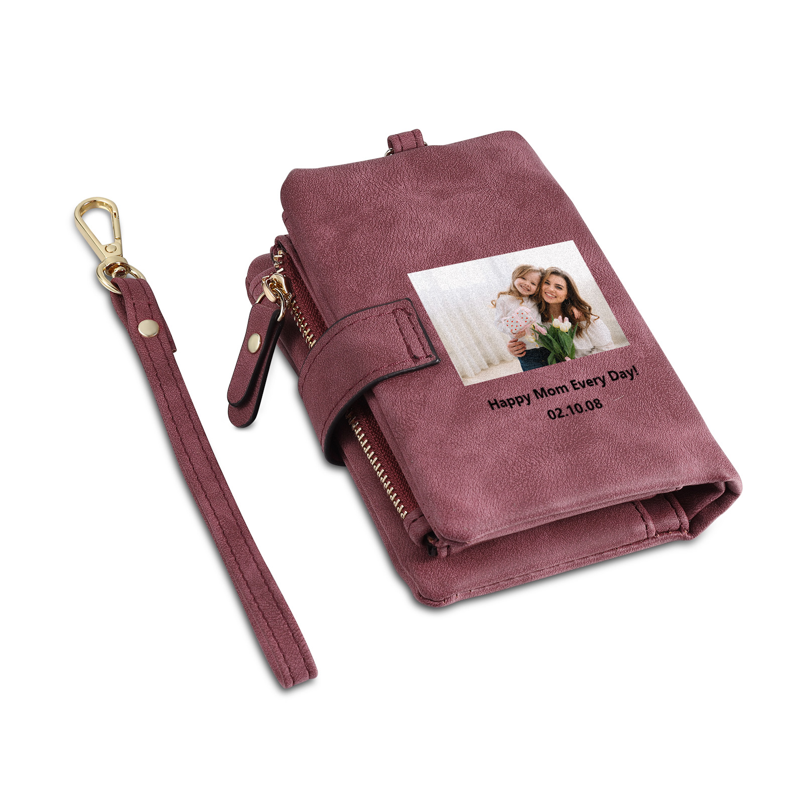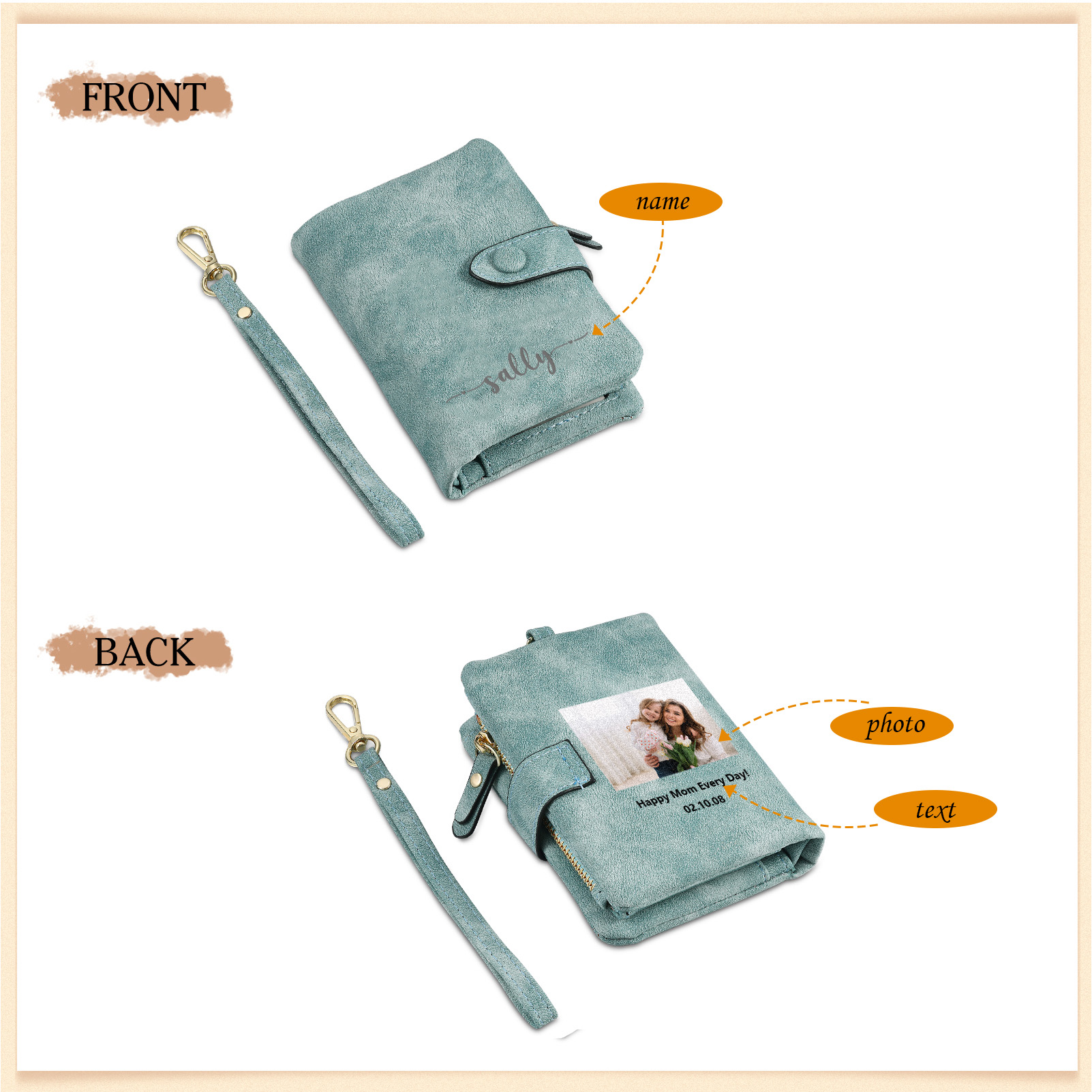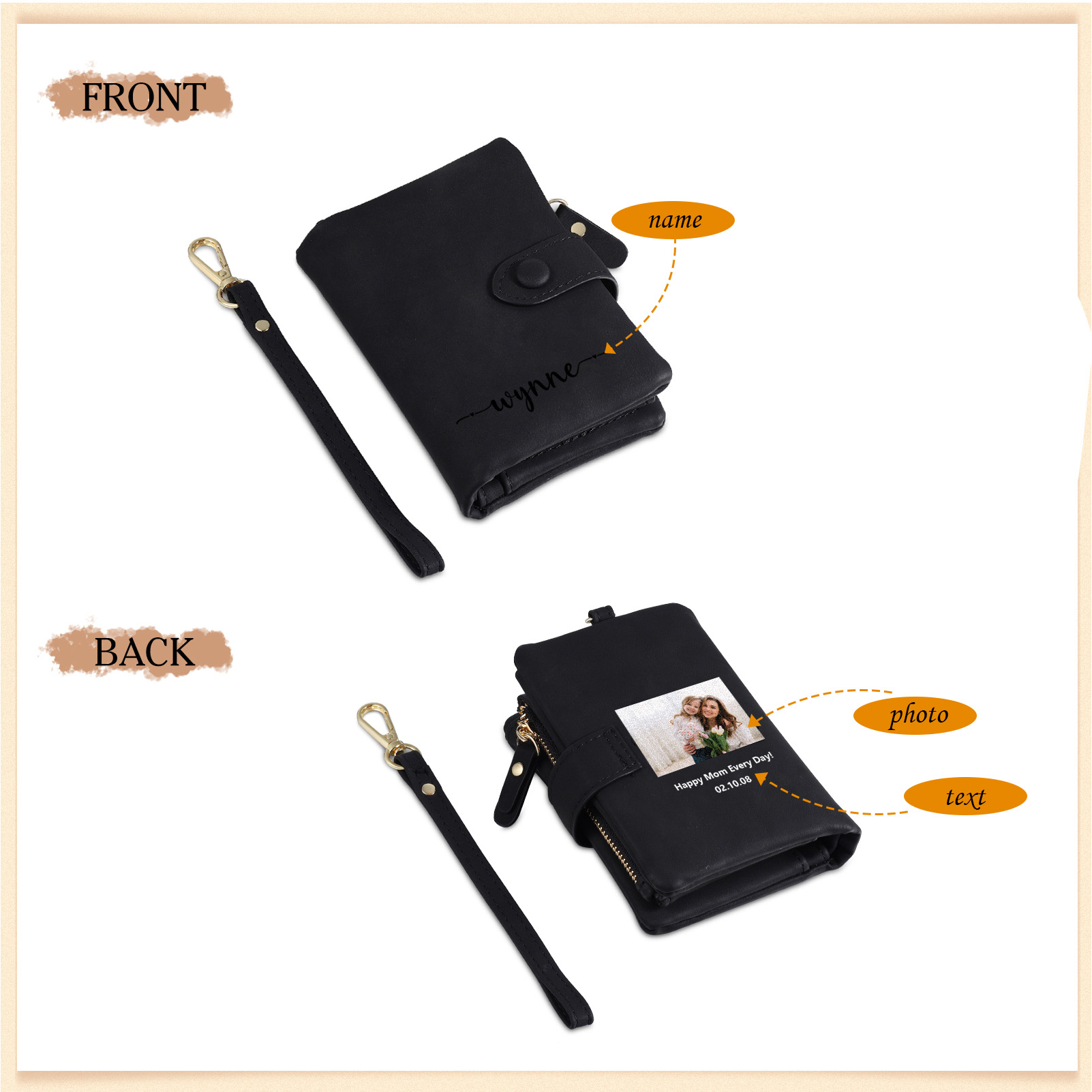 Portafoglio da donna in PU pelle 1 nome & 1 testo & 1 foto personalizzati regalo personalizzato per donna