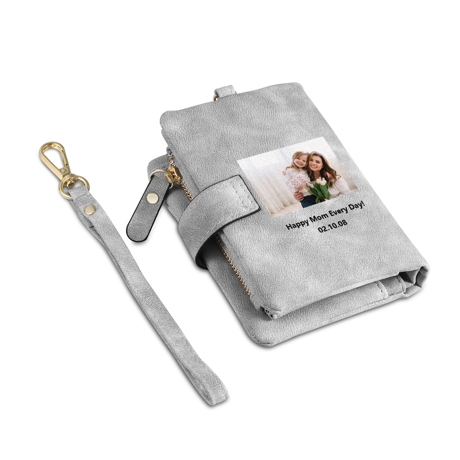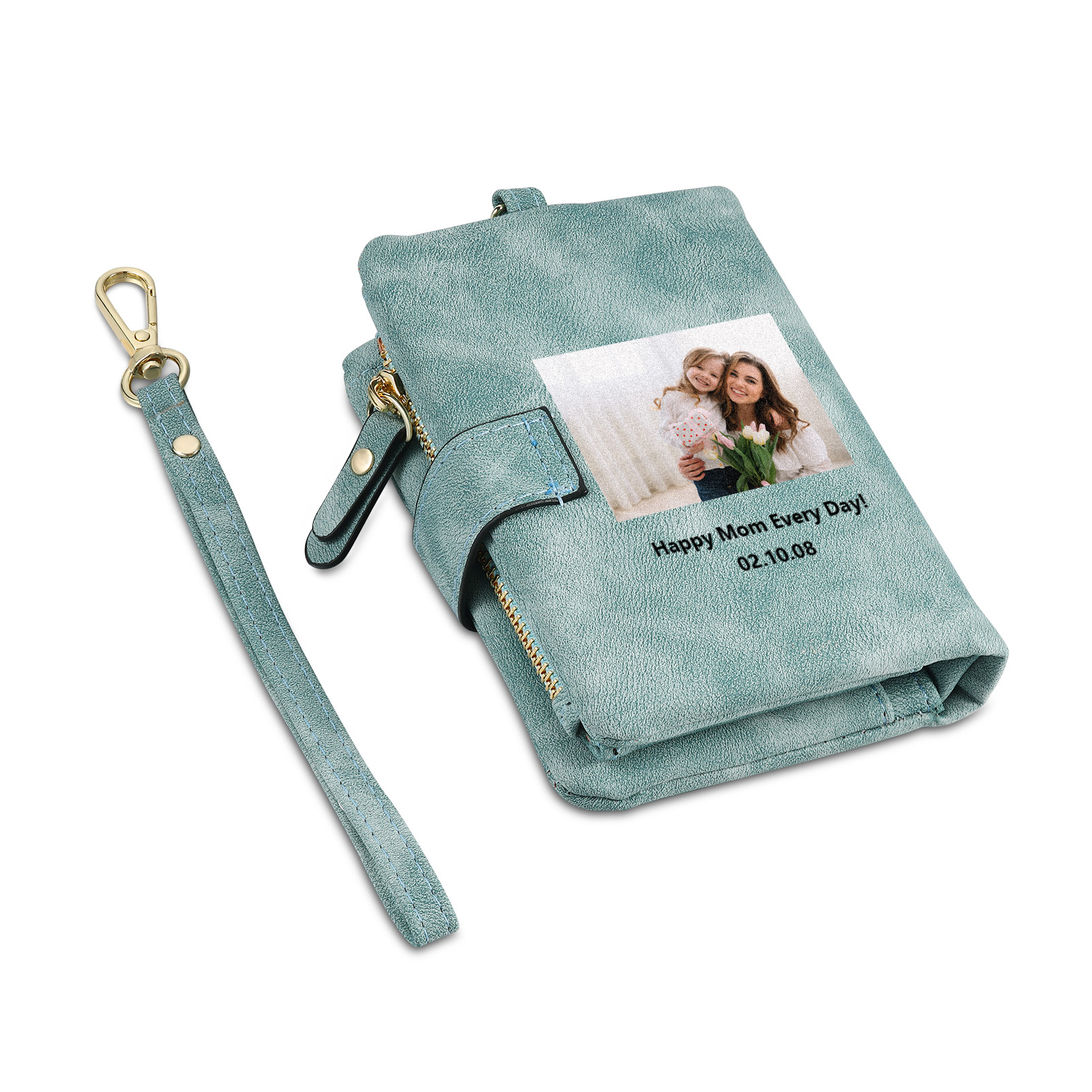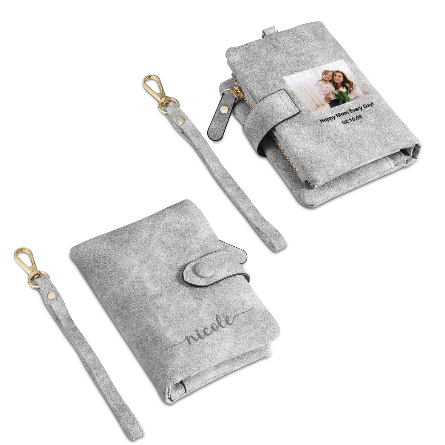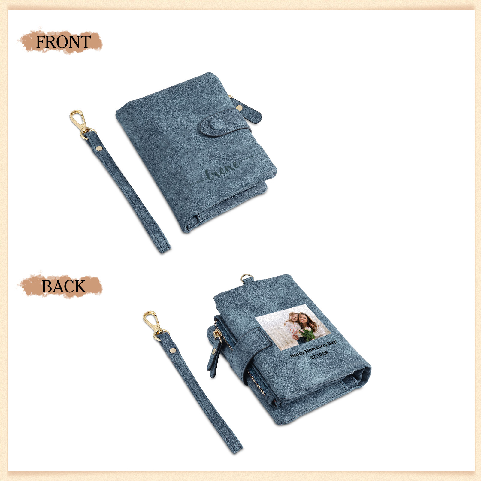 Portafoglio da donna in PU pelle 1 nome & 1 testo & 1 foto personalizzati regalo personalizzato per donna