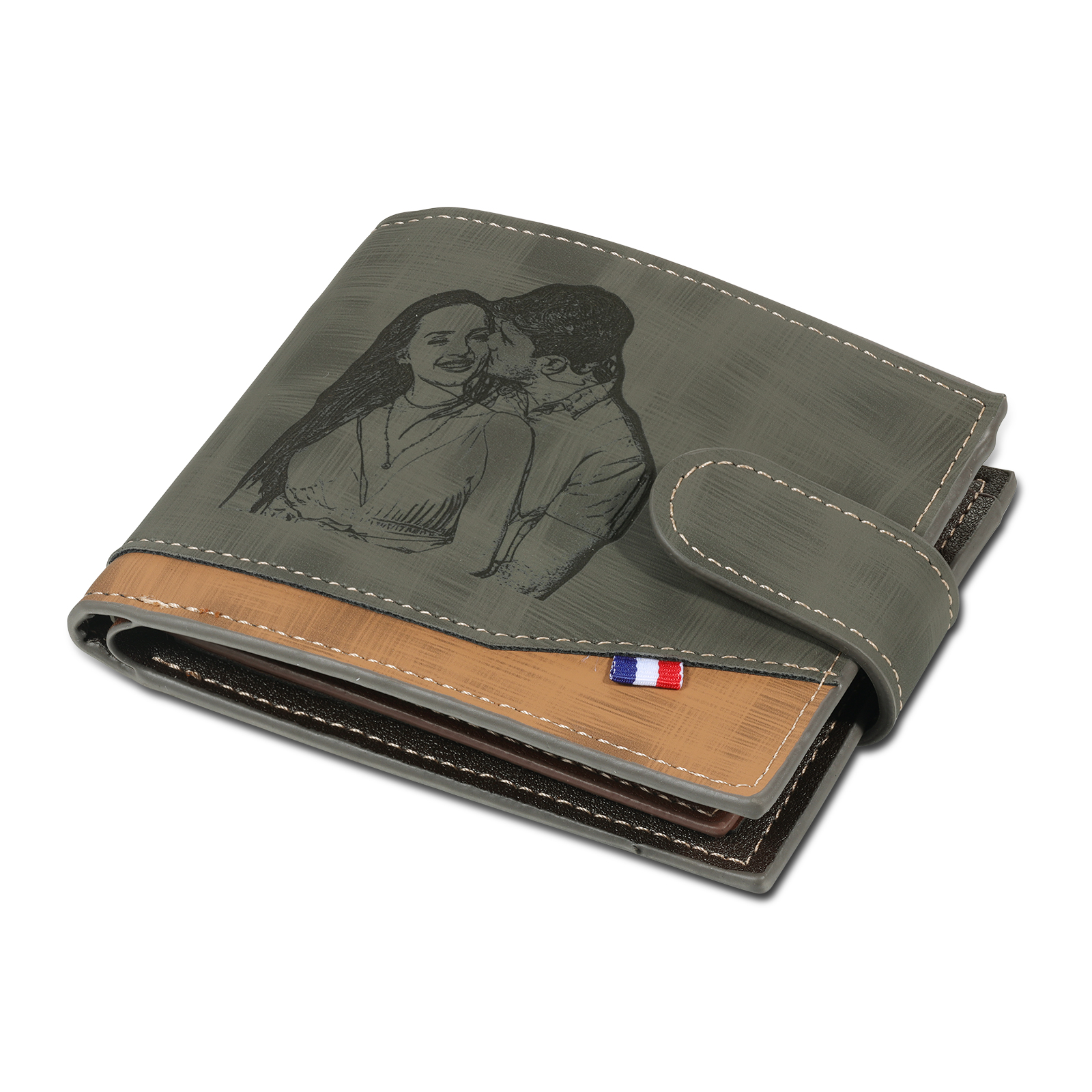Portafoglio da uomo personalizzato con fibbia incisa con foto, nome e monogramma personalizzati