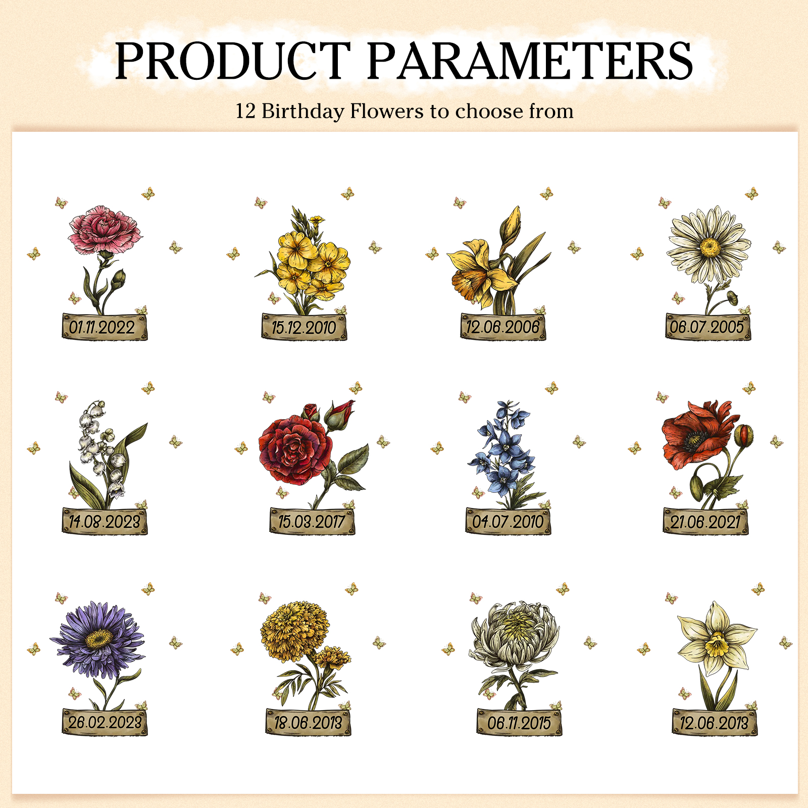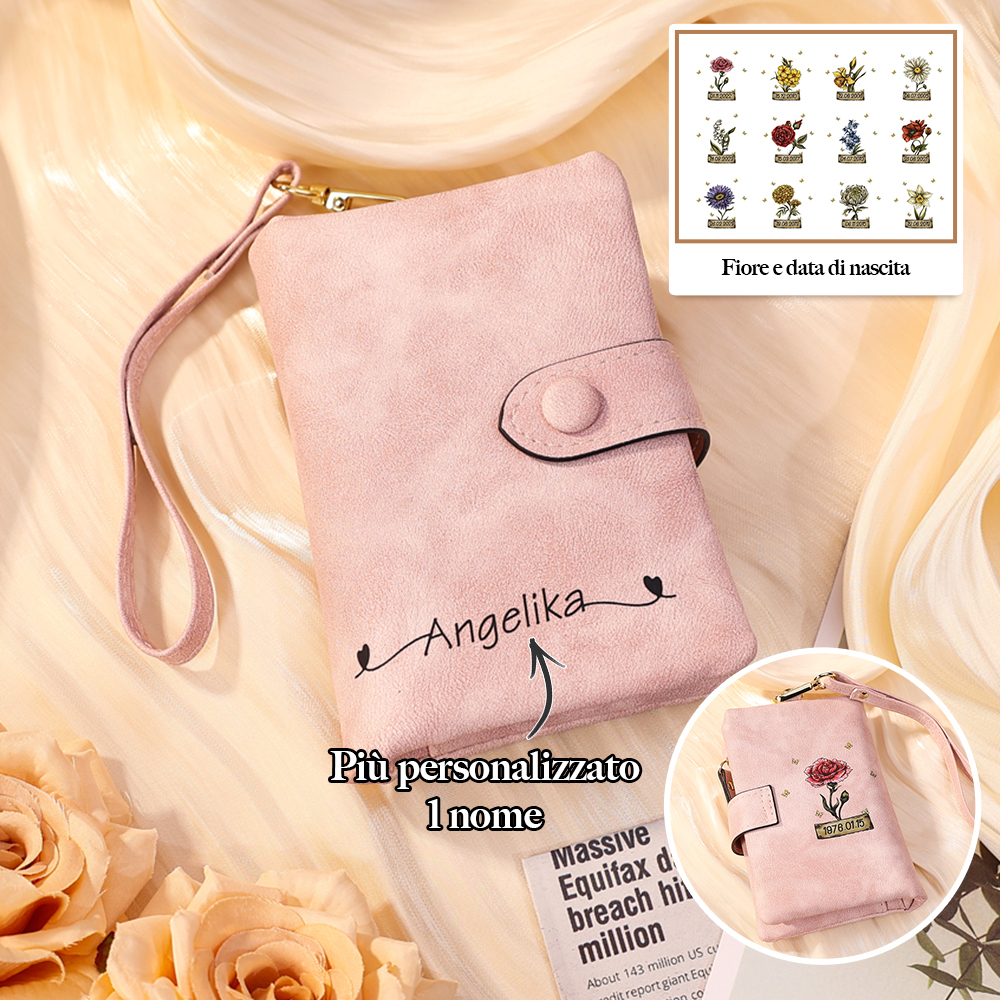 Portafoglio in PU pelle 1 nome 1 data e 1 fiore di nascita personalizzabili regalo personalizzato per donna