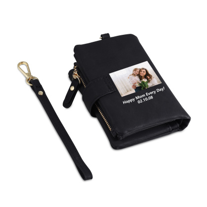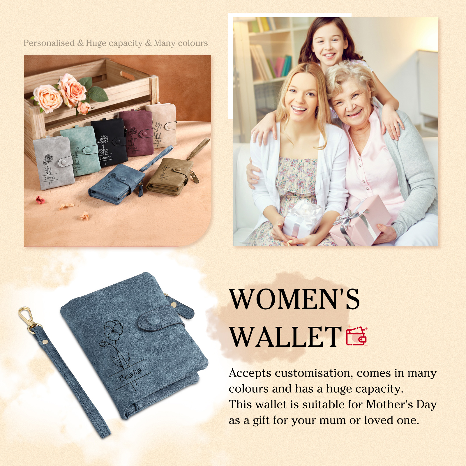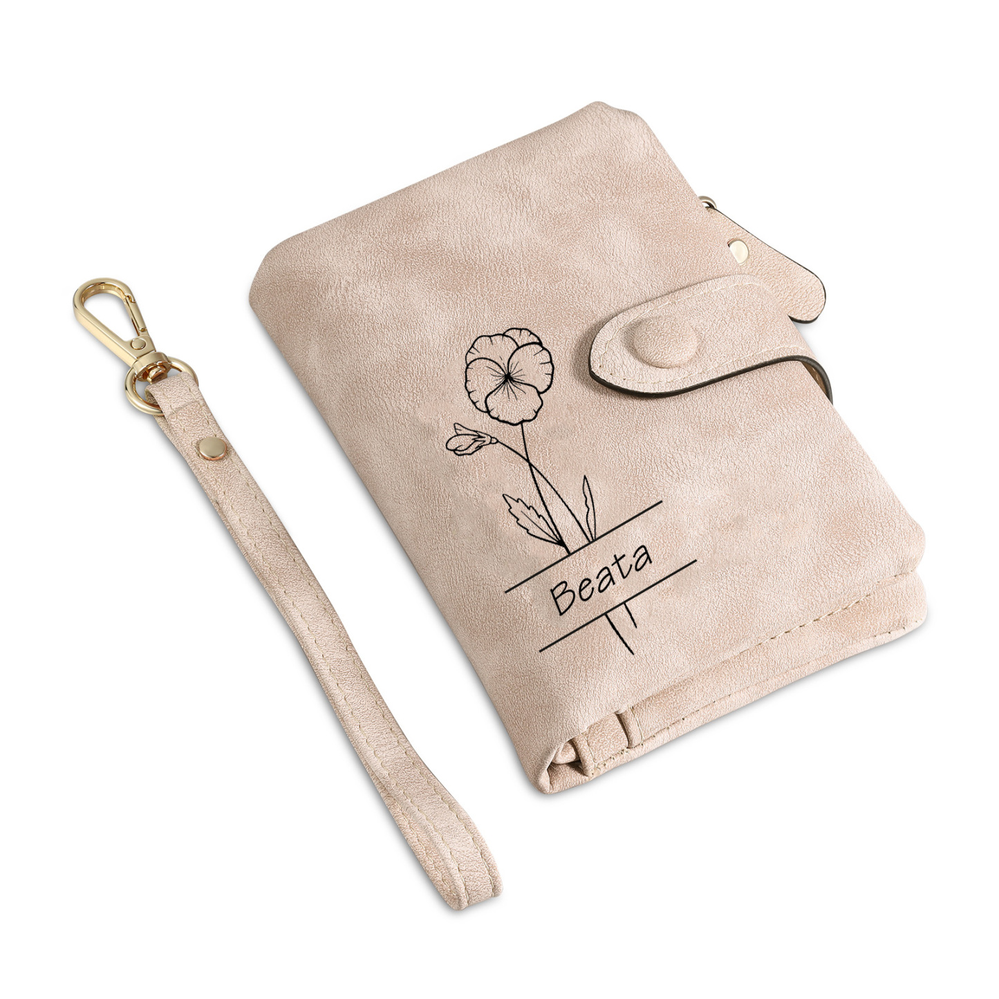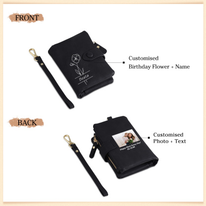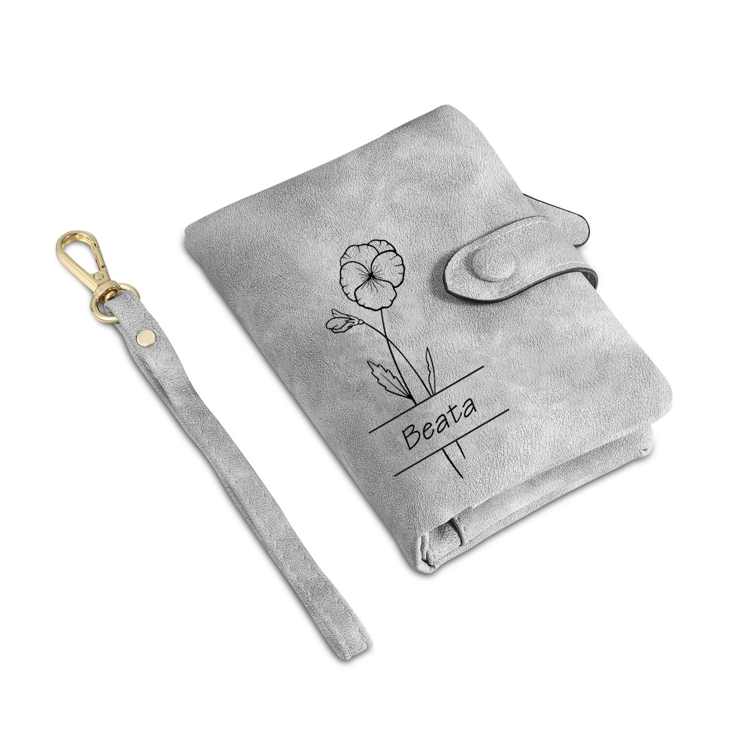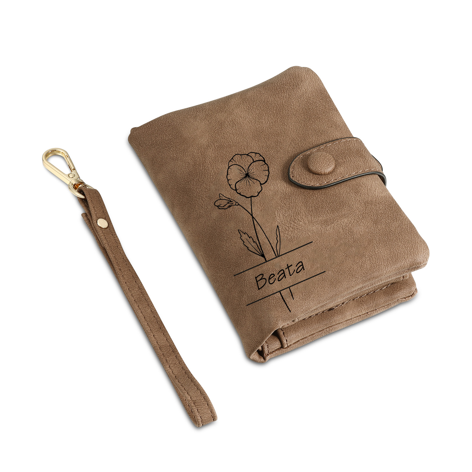 Portafoglio in PU pelle 1 nome,1 foto,1 testo e 1 fiore di nascita regalo personalizzato per donna