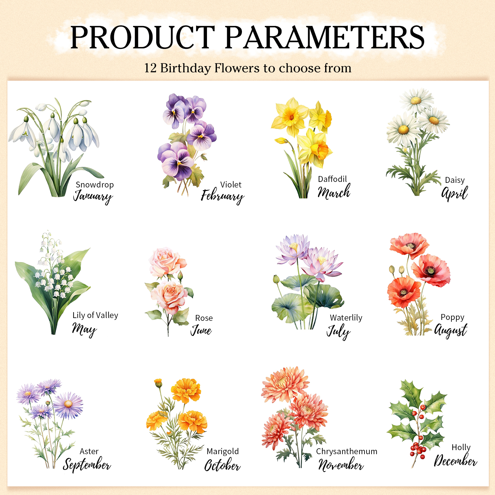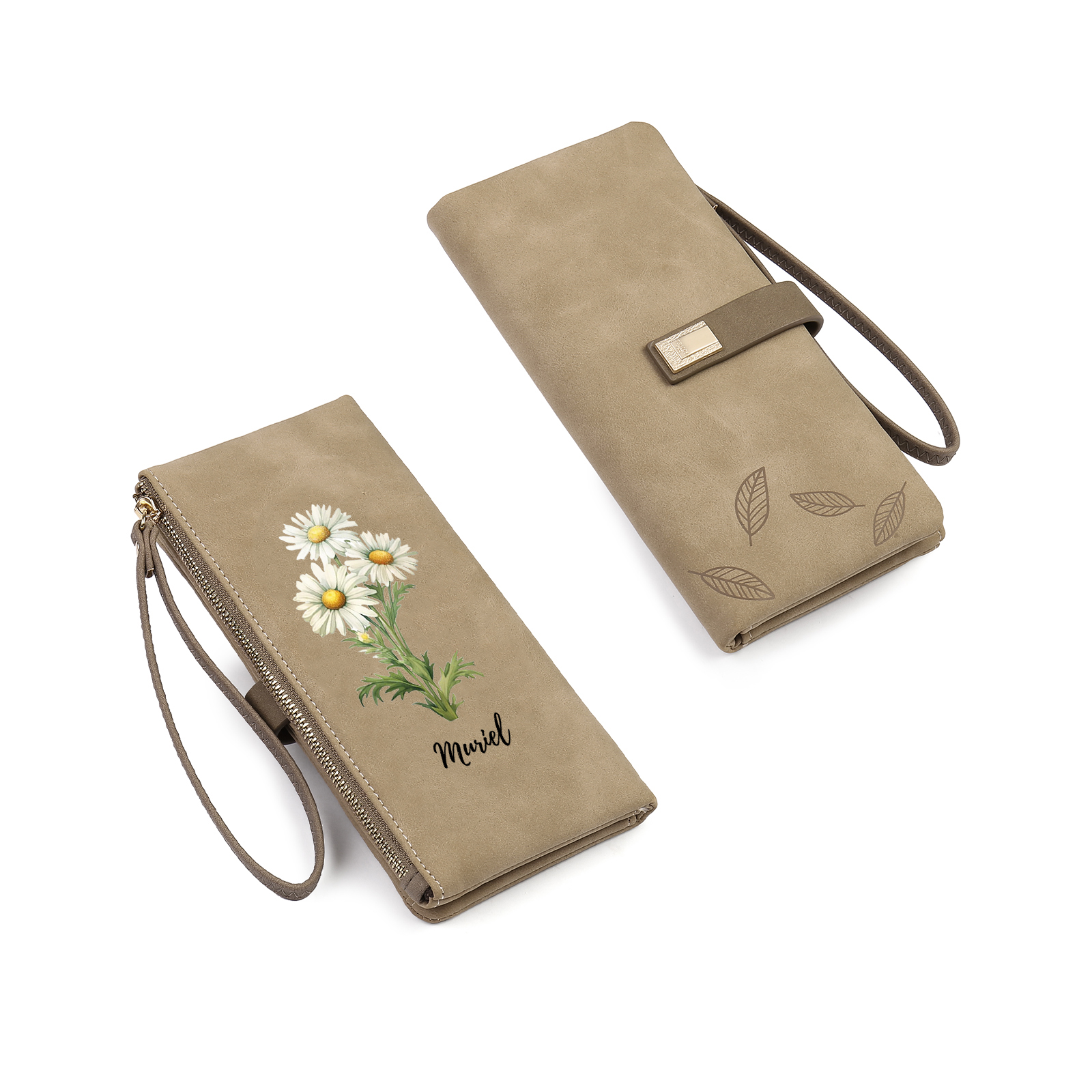 Portafoglio in PU pelle con 1 nome e 1 fiore di nascita personalizzati per donna
