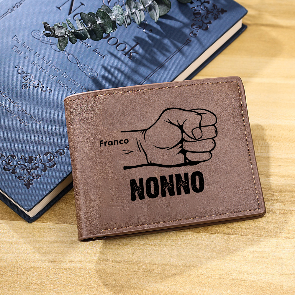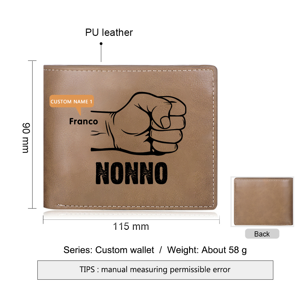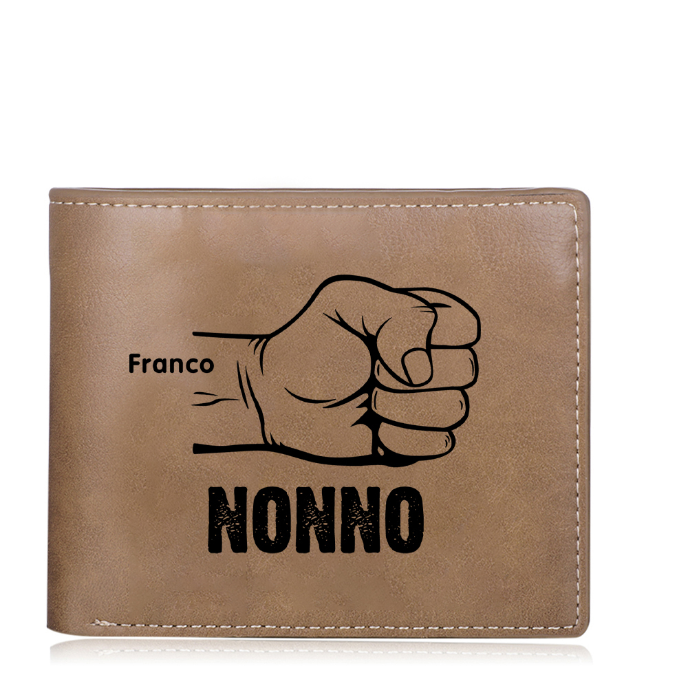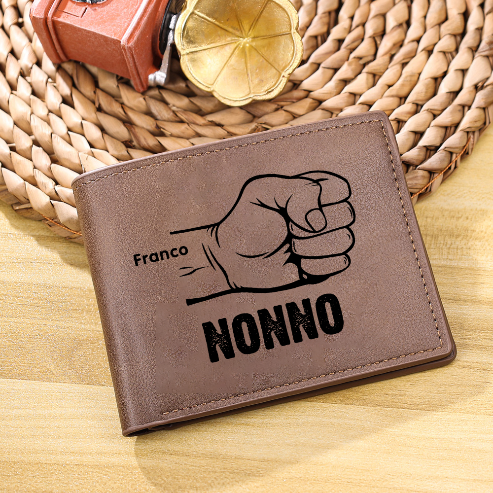 Portafoglio Pelle PU pugno mano regalo per nonno personalizzato 1 nome