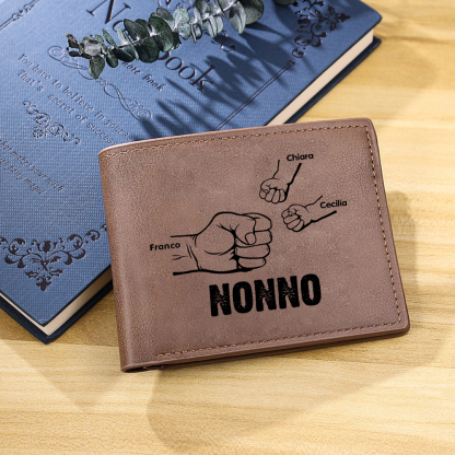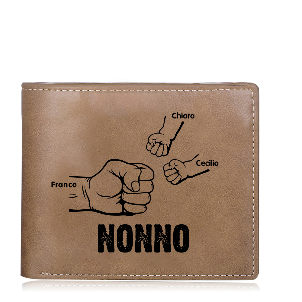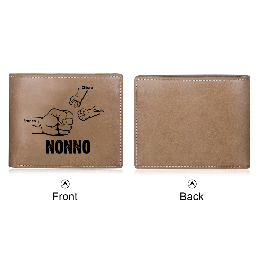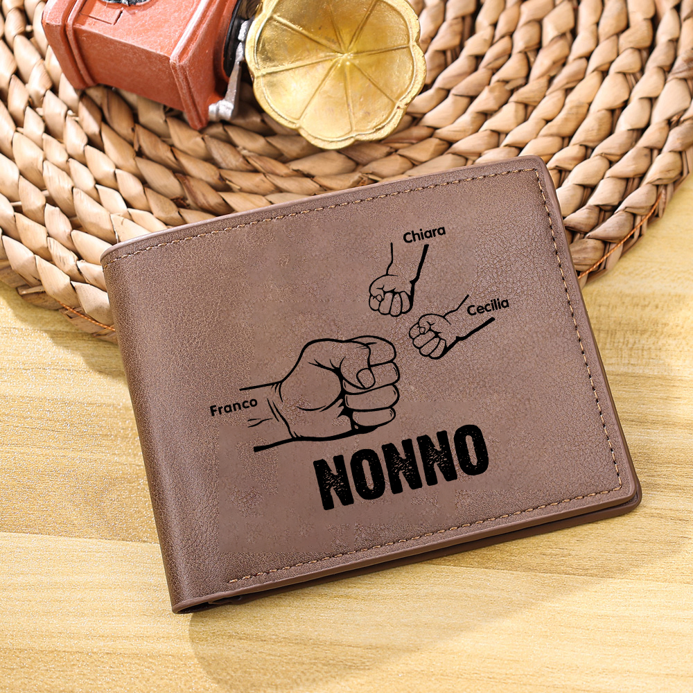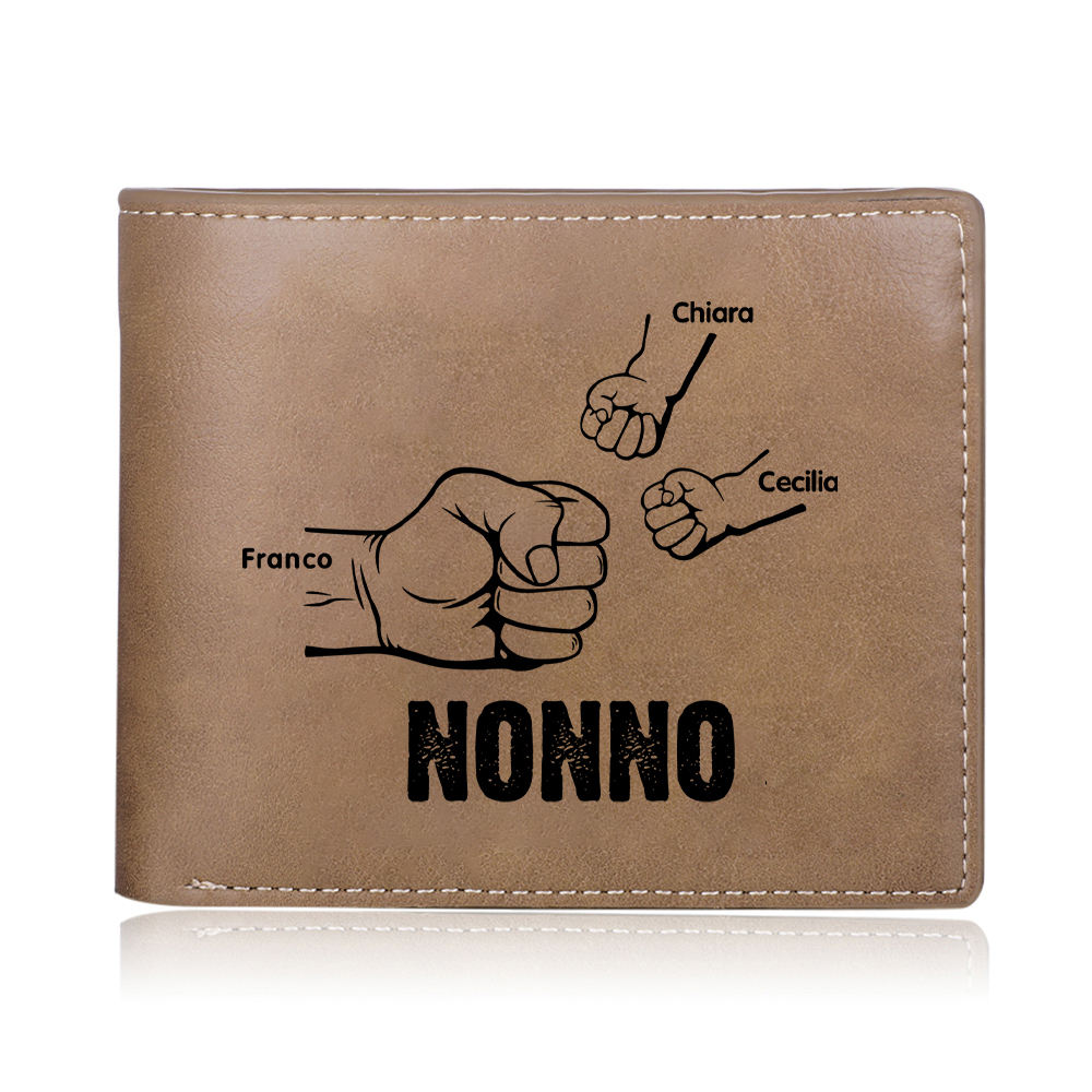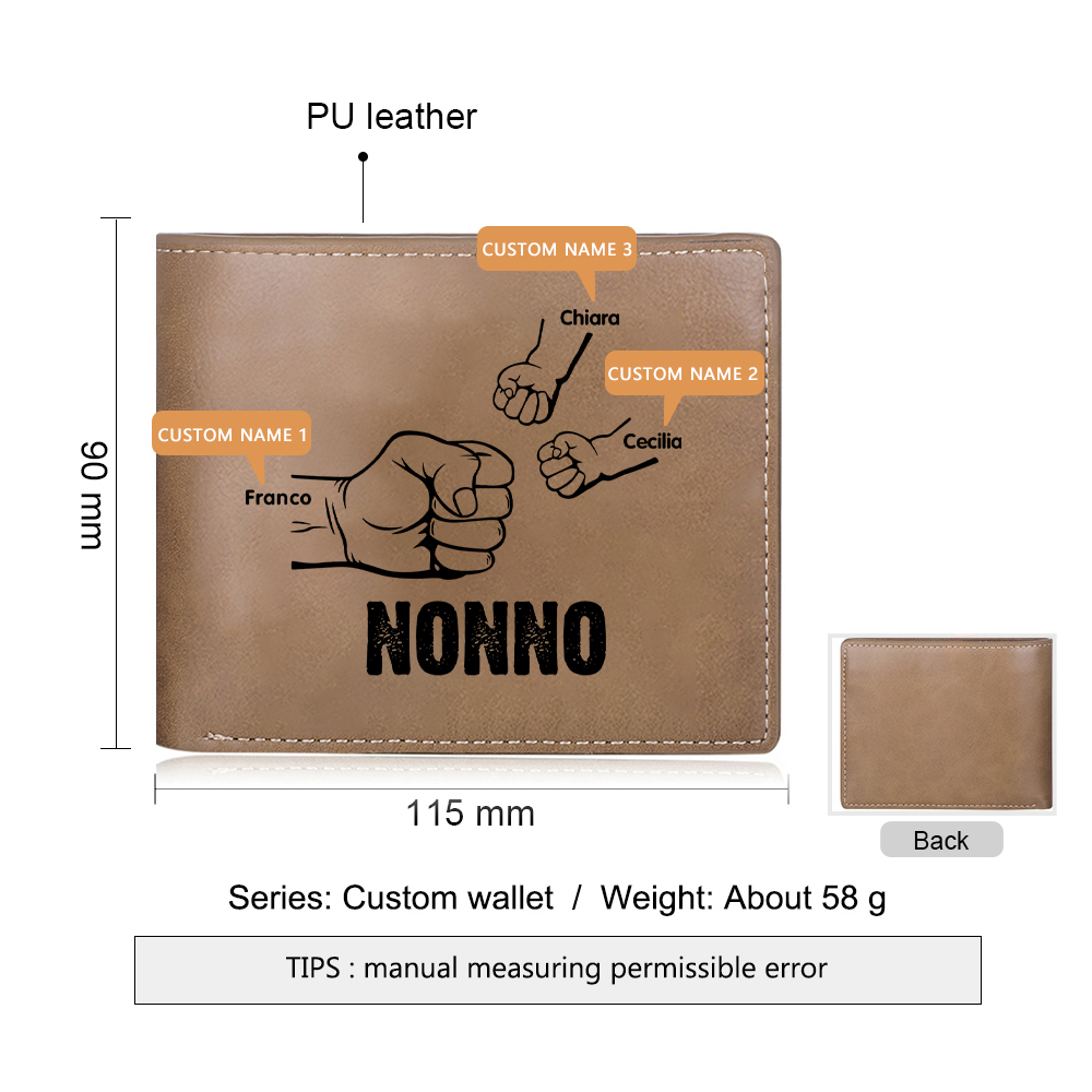 Portafoglio Pelle PU pugno mano regalo per nonno personalizzato 3 nomi