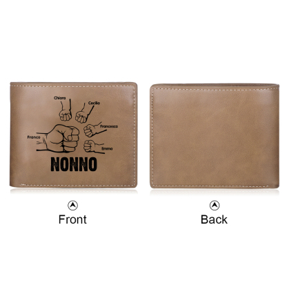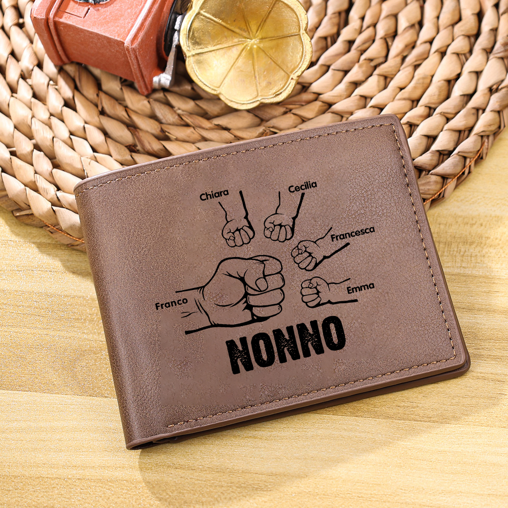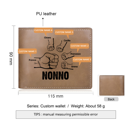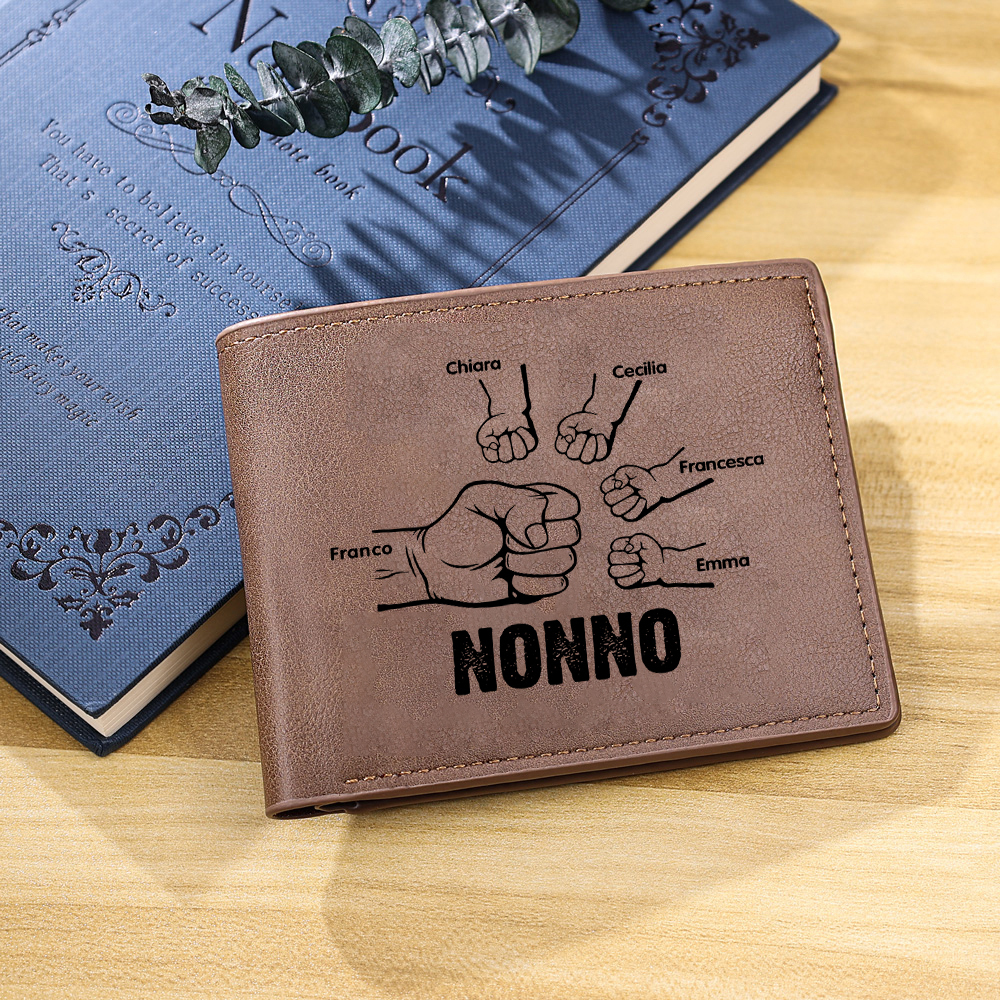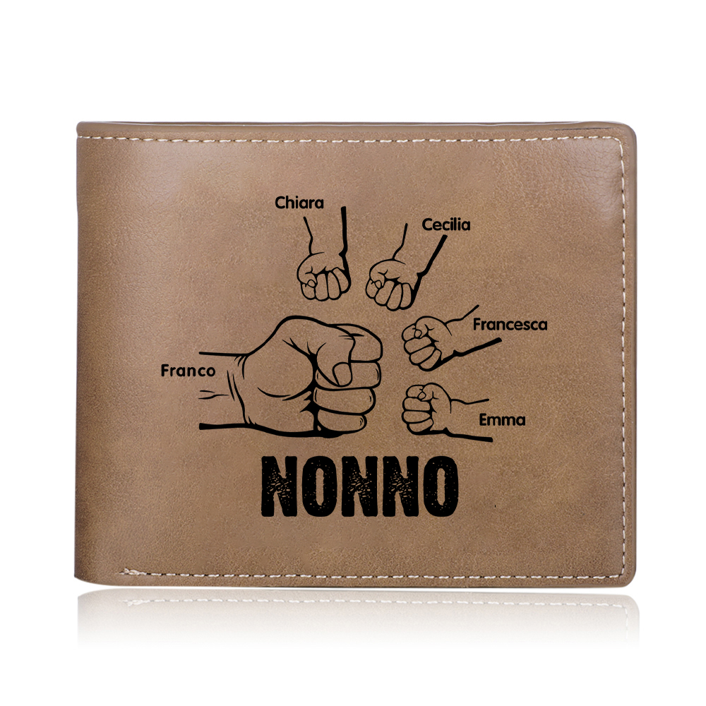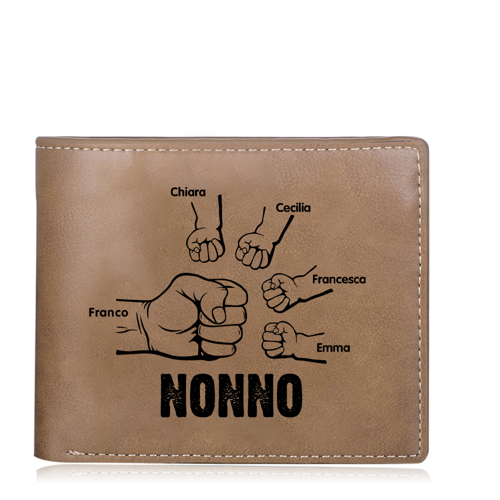Portafoglio Pelle PU pugno mano regalo per nonno personalizzato 5 nomi