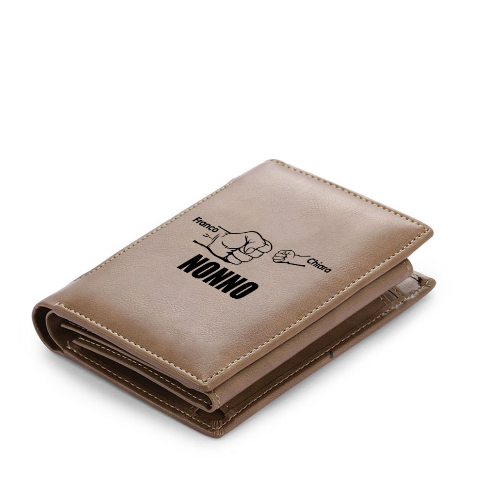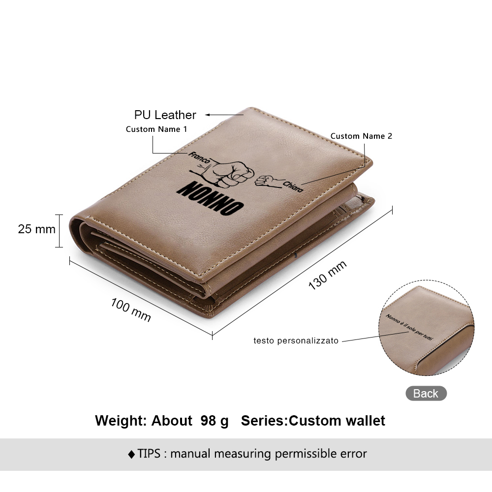 Portafoglio Pelle PU regalo per nonno personalizzati 2 nomi e 1 testo
