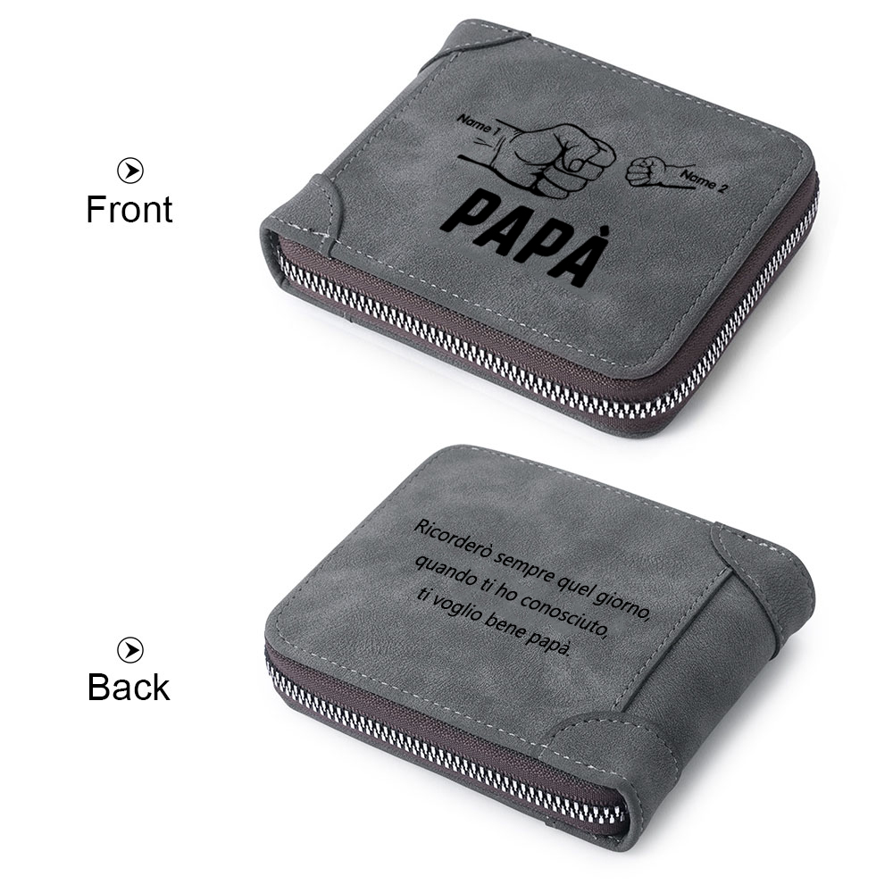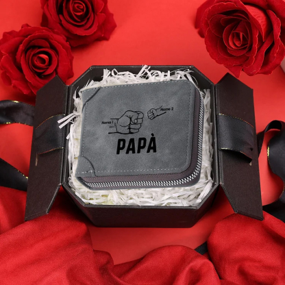 Portafoglio pugno a pugno Pelle PU regalo per padre personalizzati 2 nomi