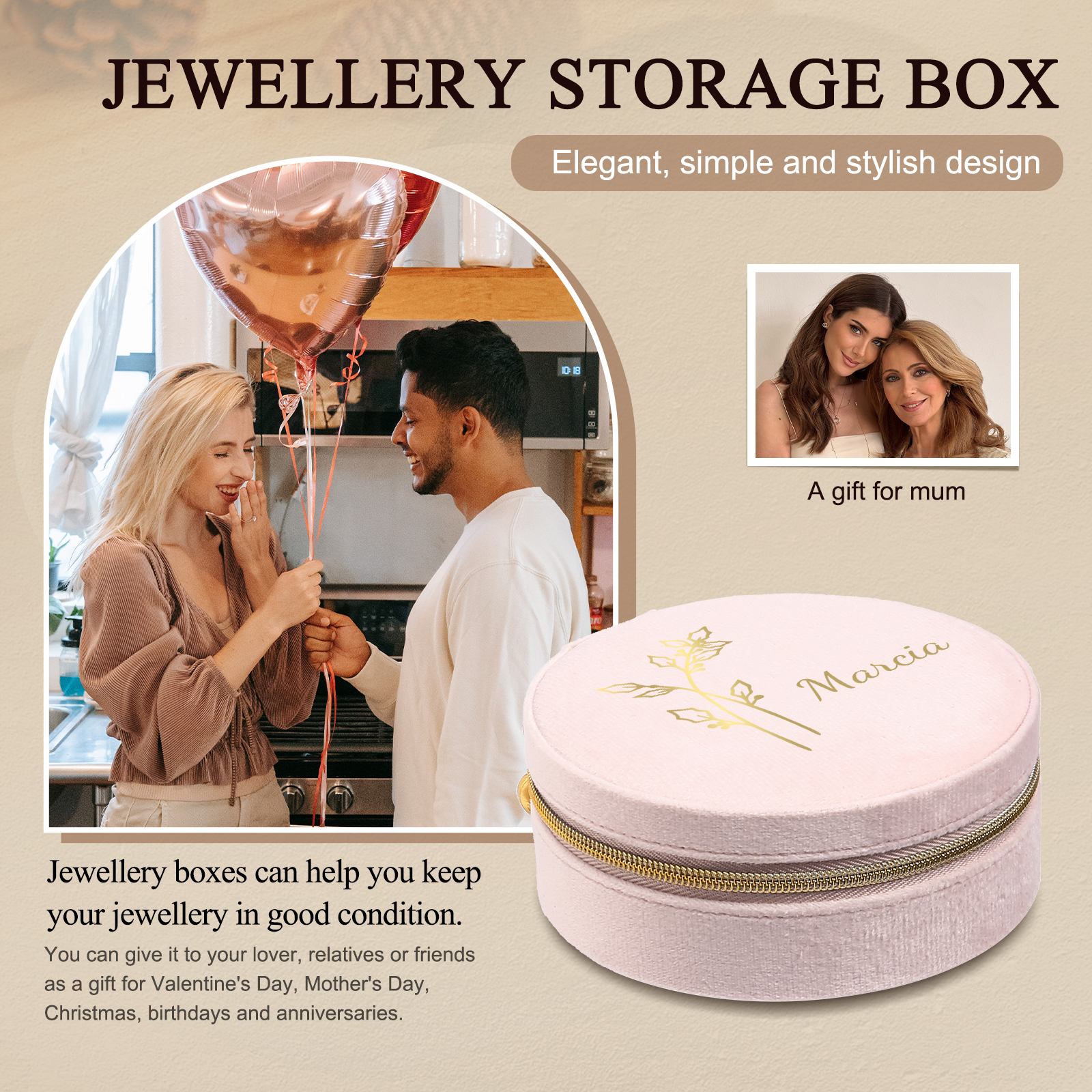 Portagioie in velluto con 1 nome e 1 fiore di nascita personalizzati regalo per donna