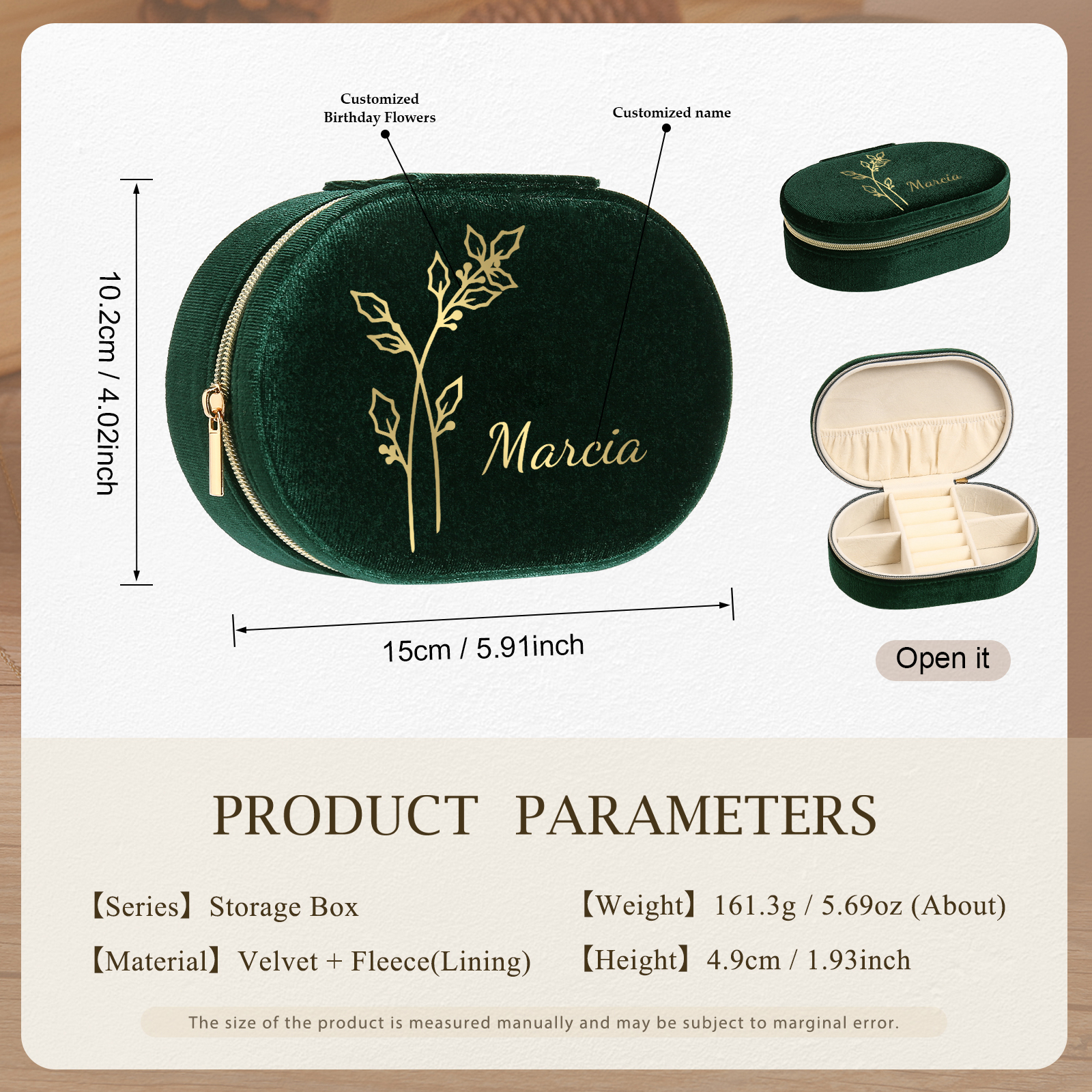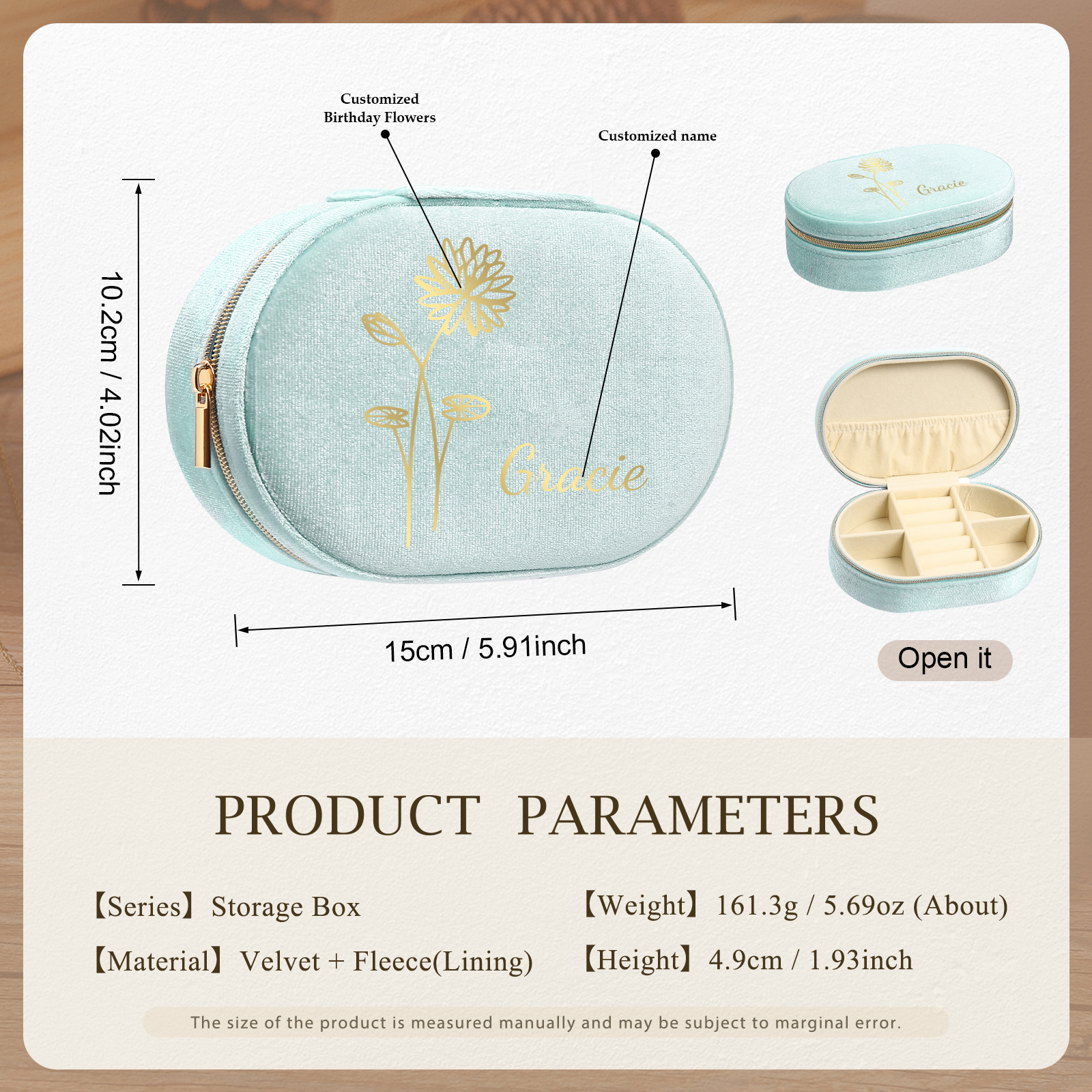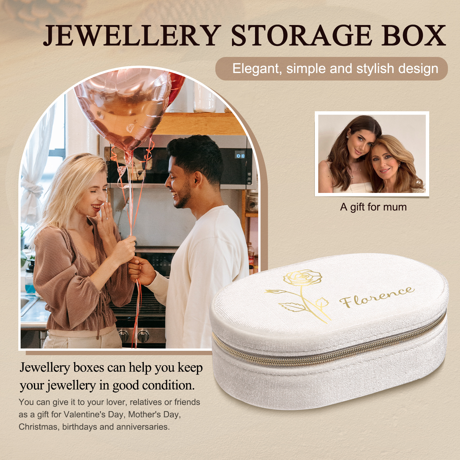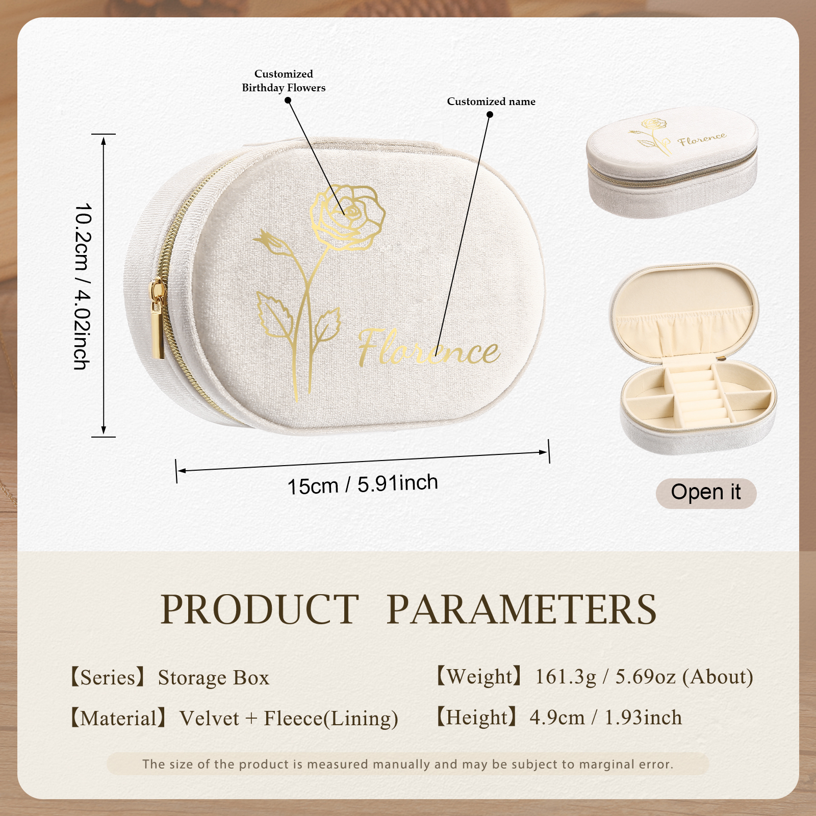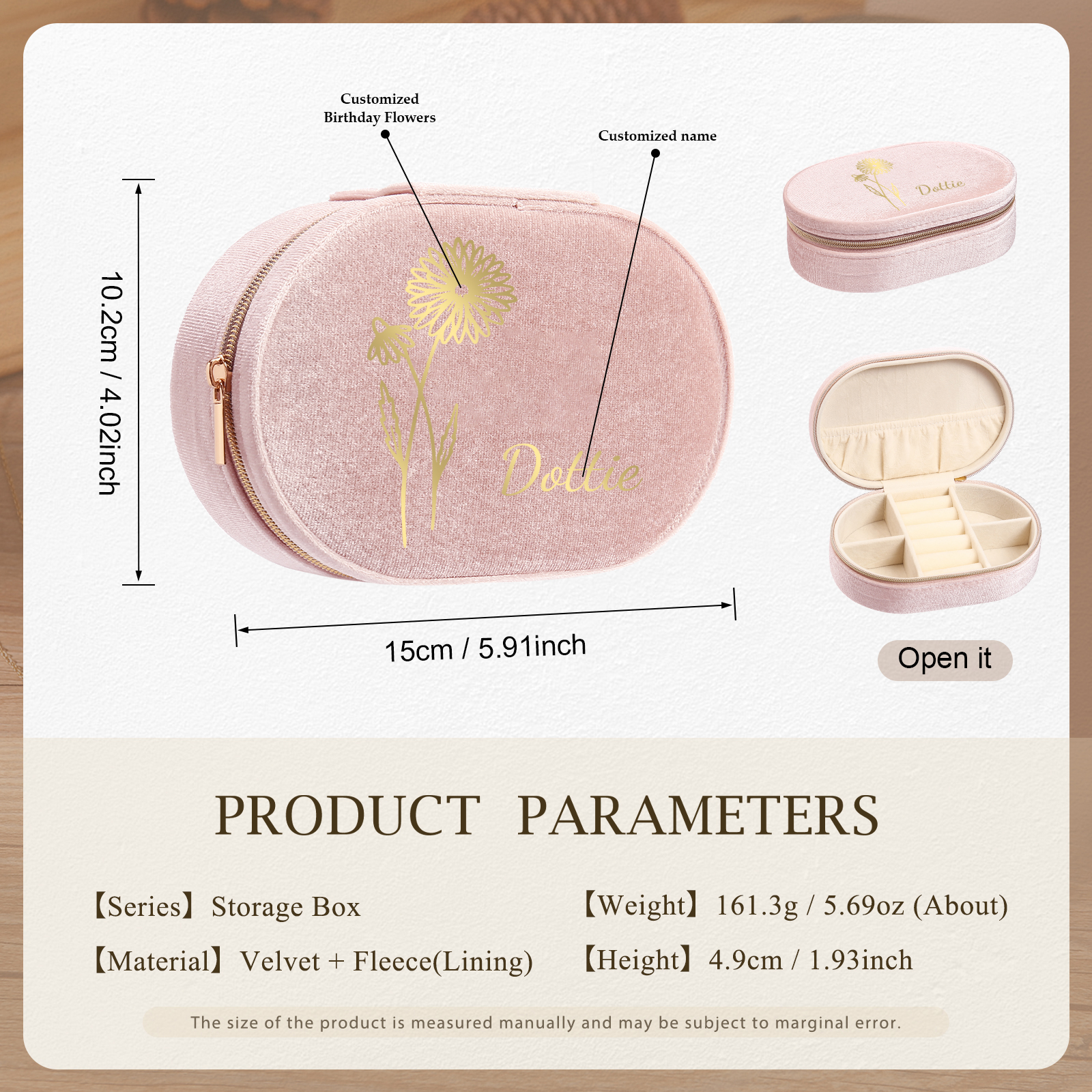 Portagioie in velluto con 1 nome e 1 fiore di nascita personalizzati regalo per donna