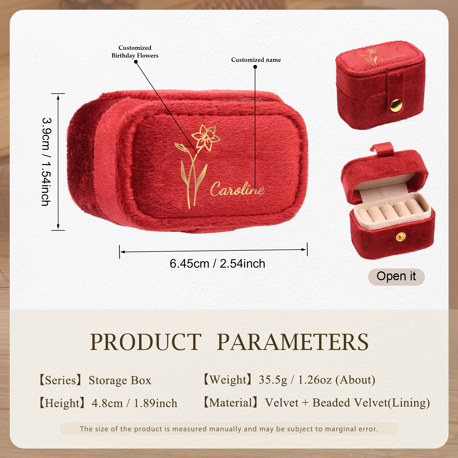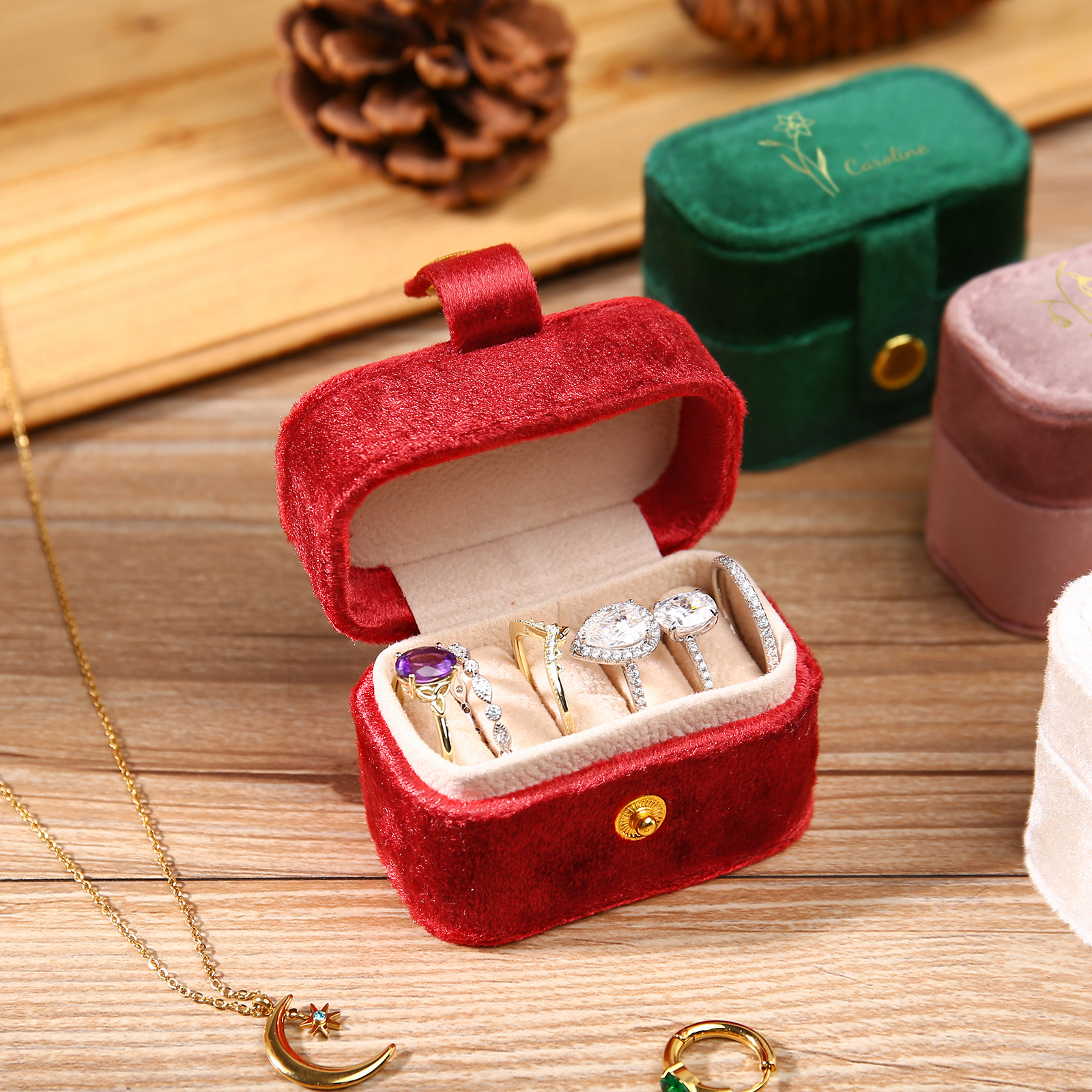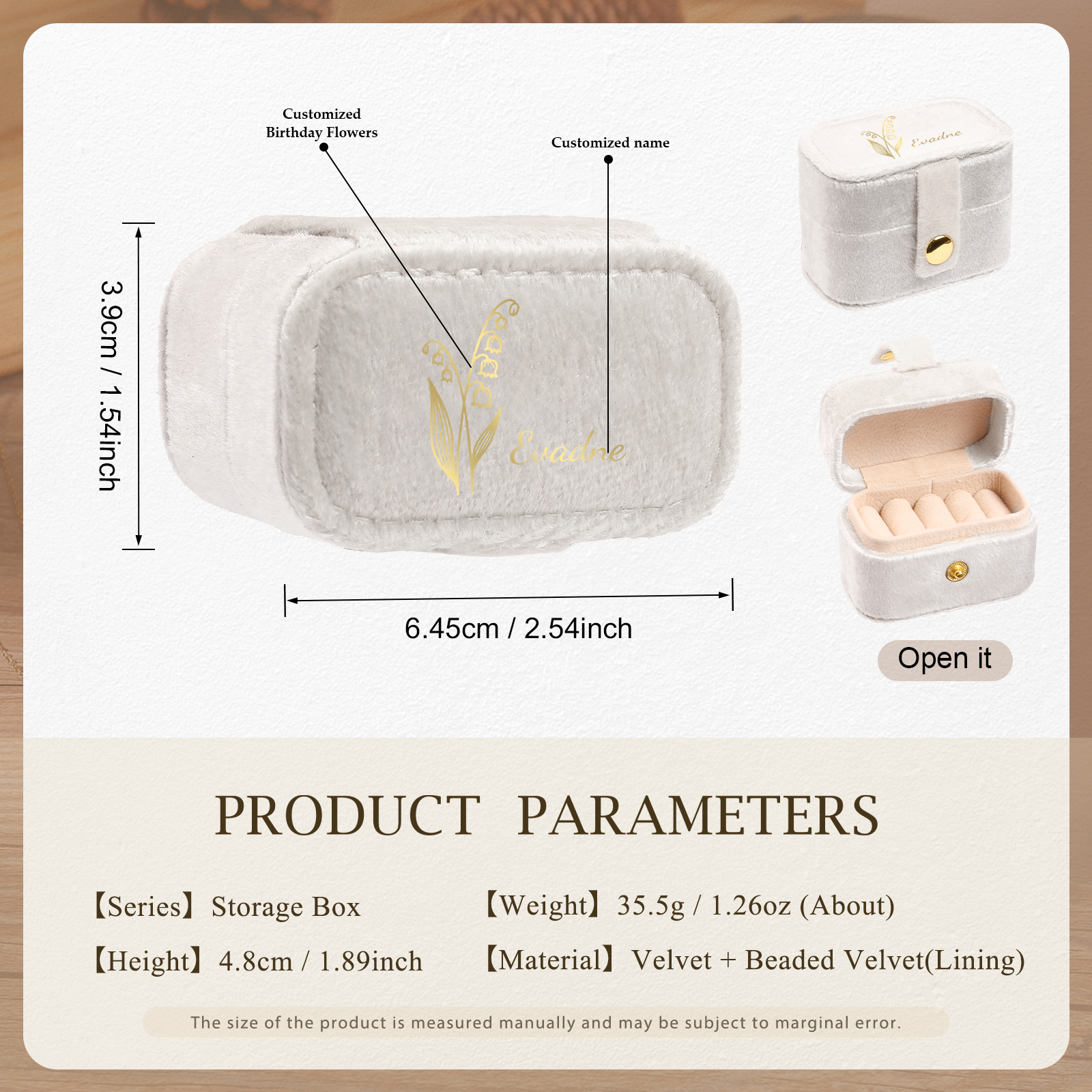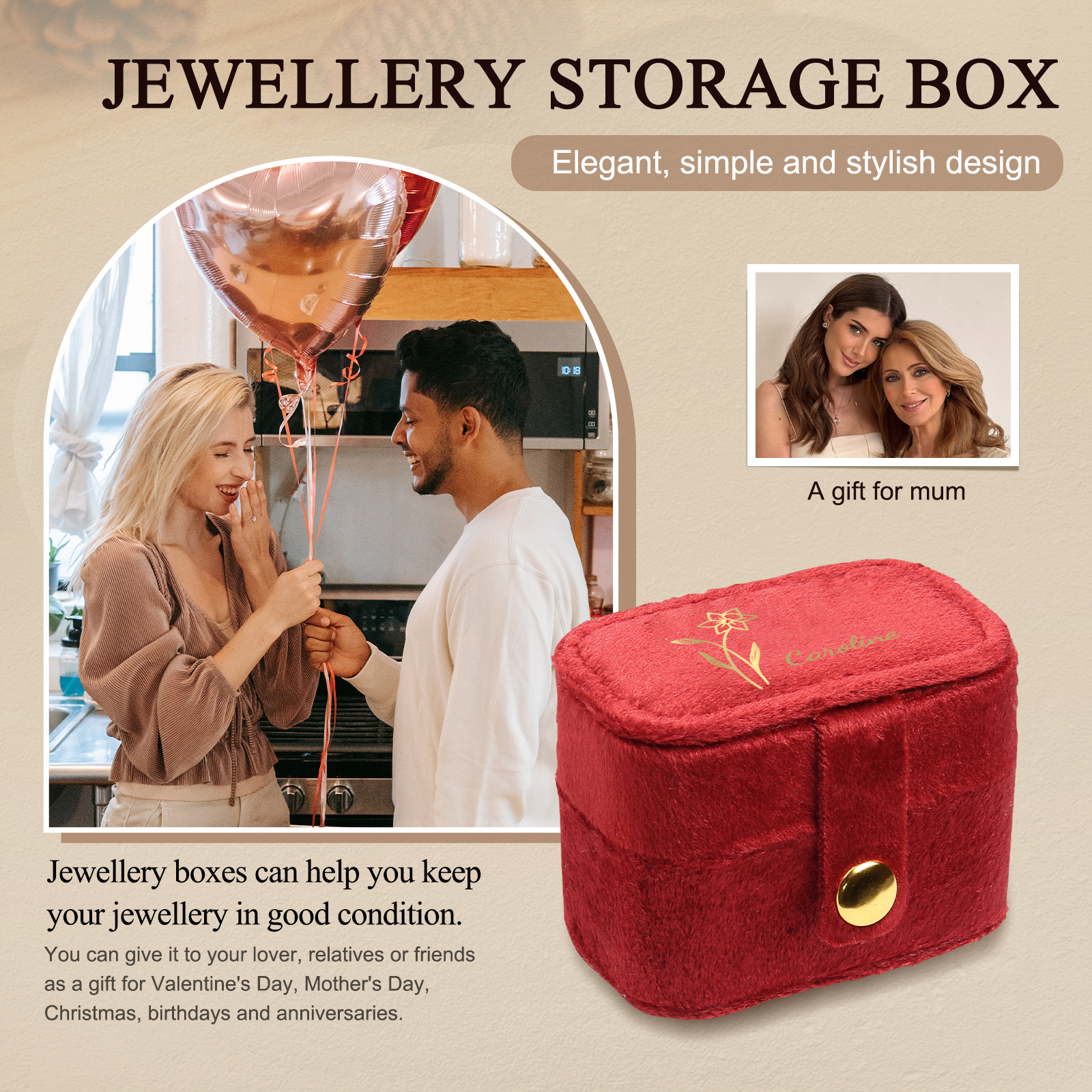 Portagioie in velluto con 1 nome e 1 fiore di nascita personalizzati regalo per donna