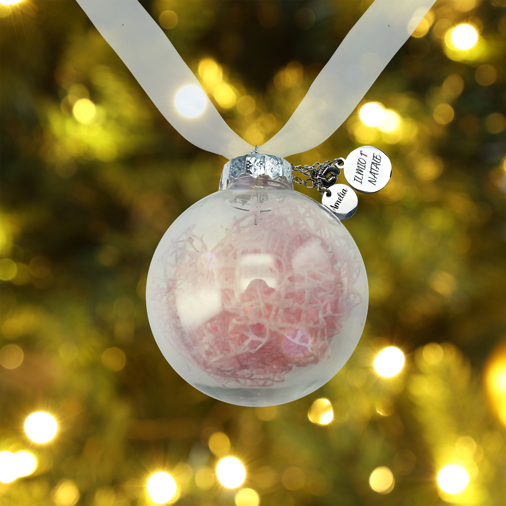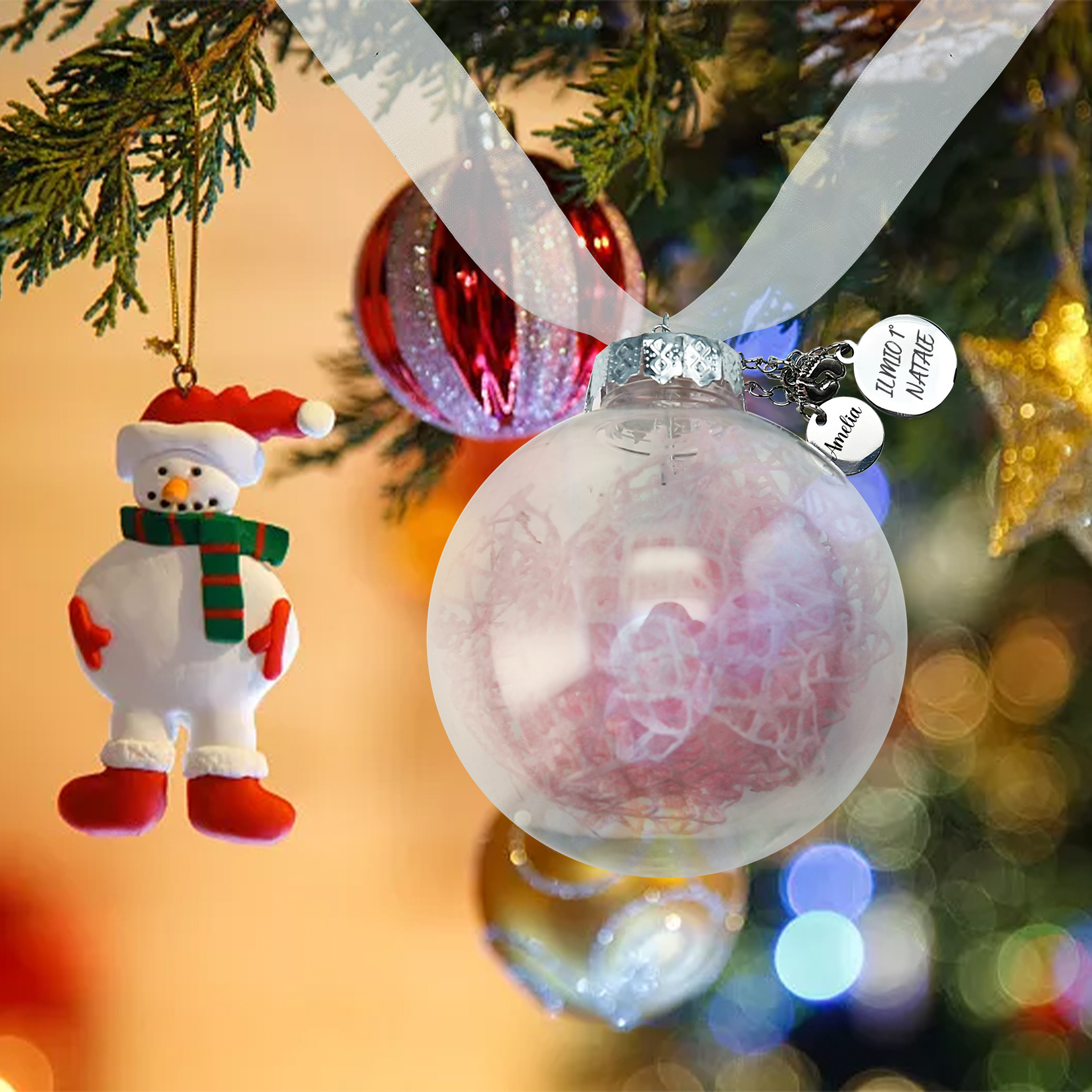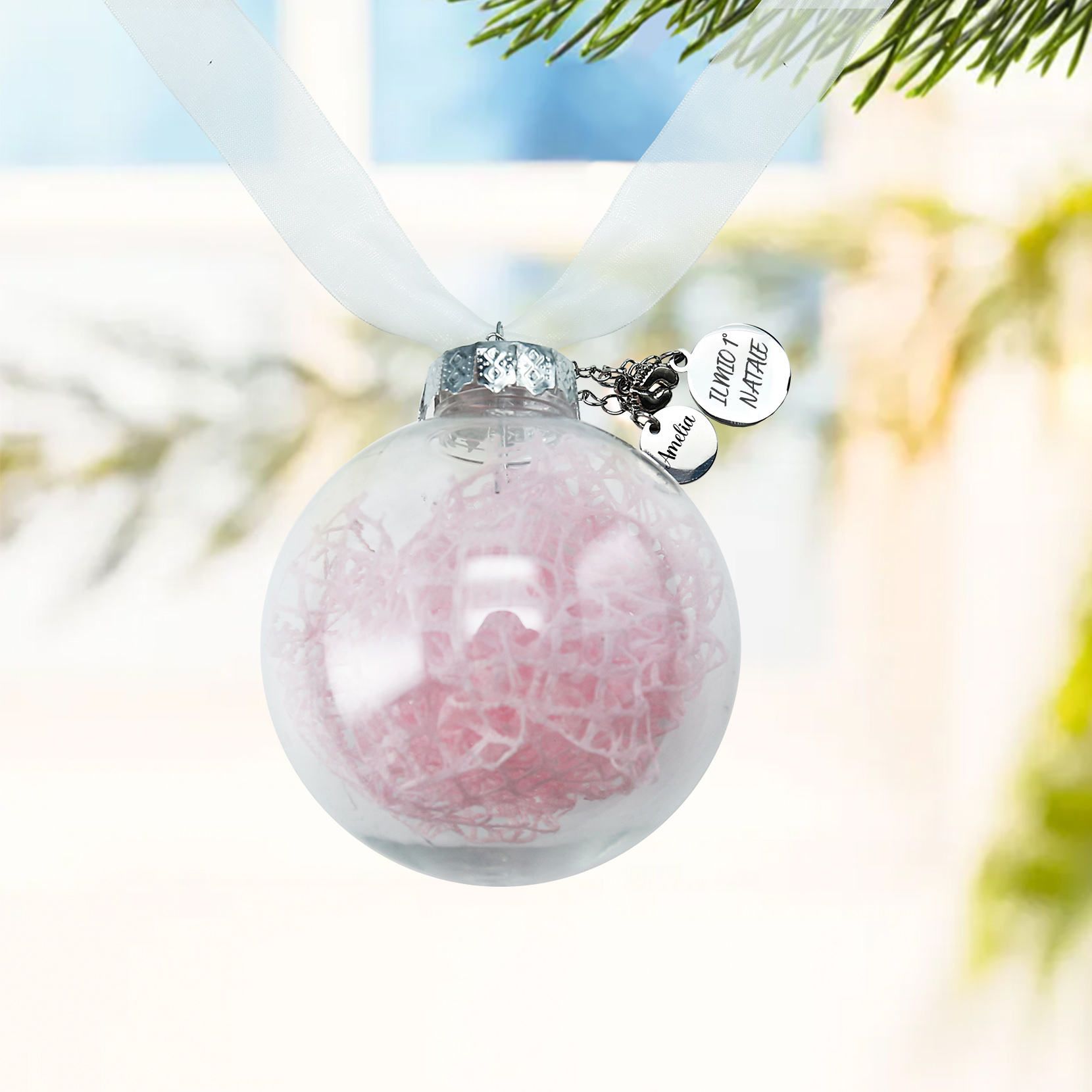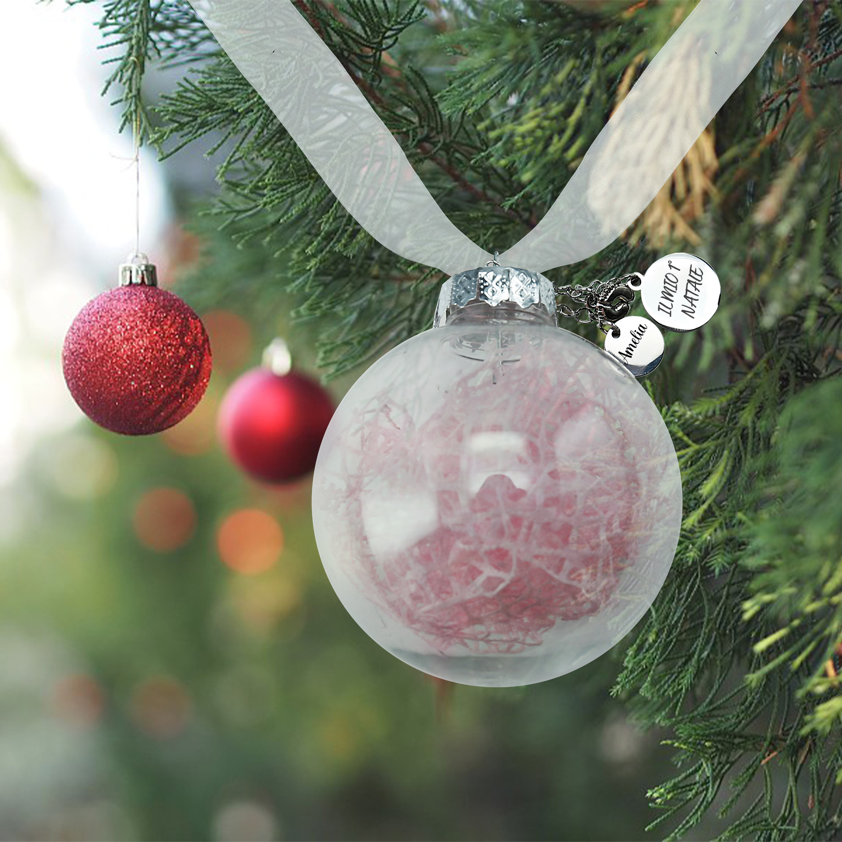 Primo Natale della bambina-Decorazione natalizia ciondolo familiare 1 nome personalizzabile