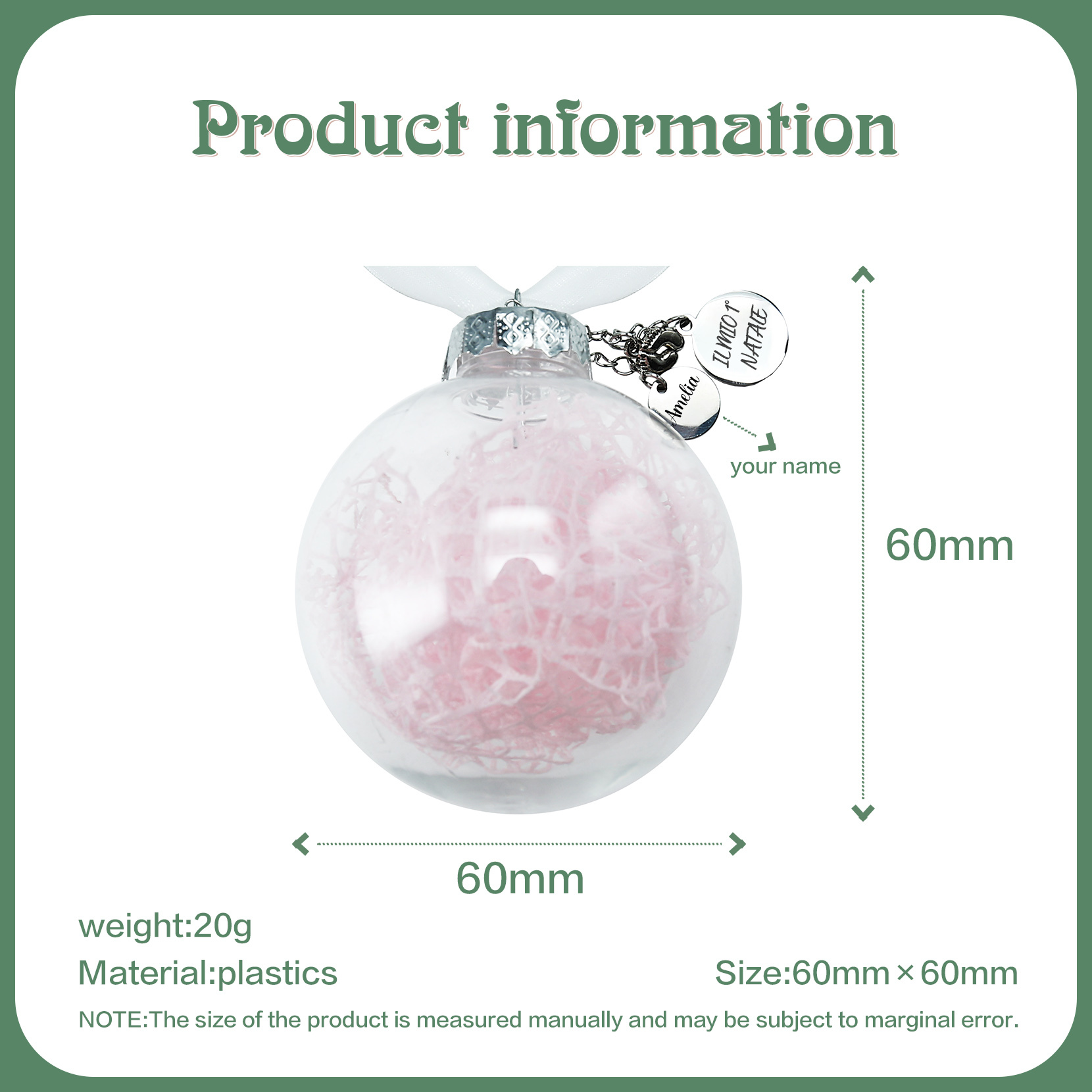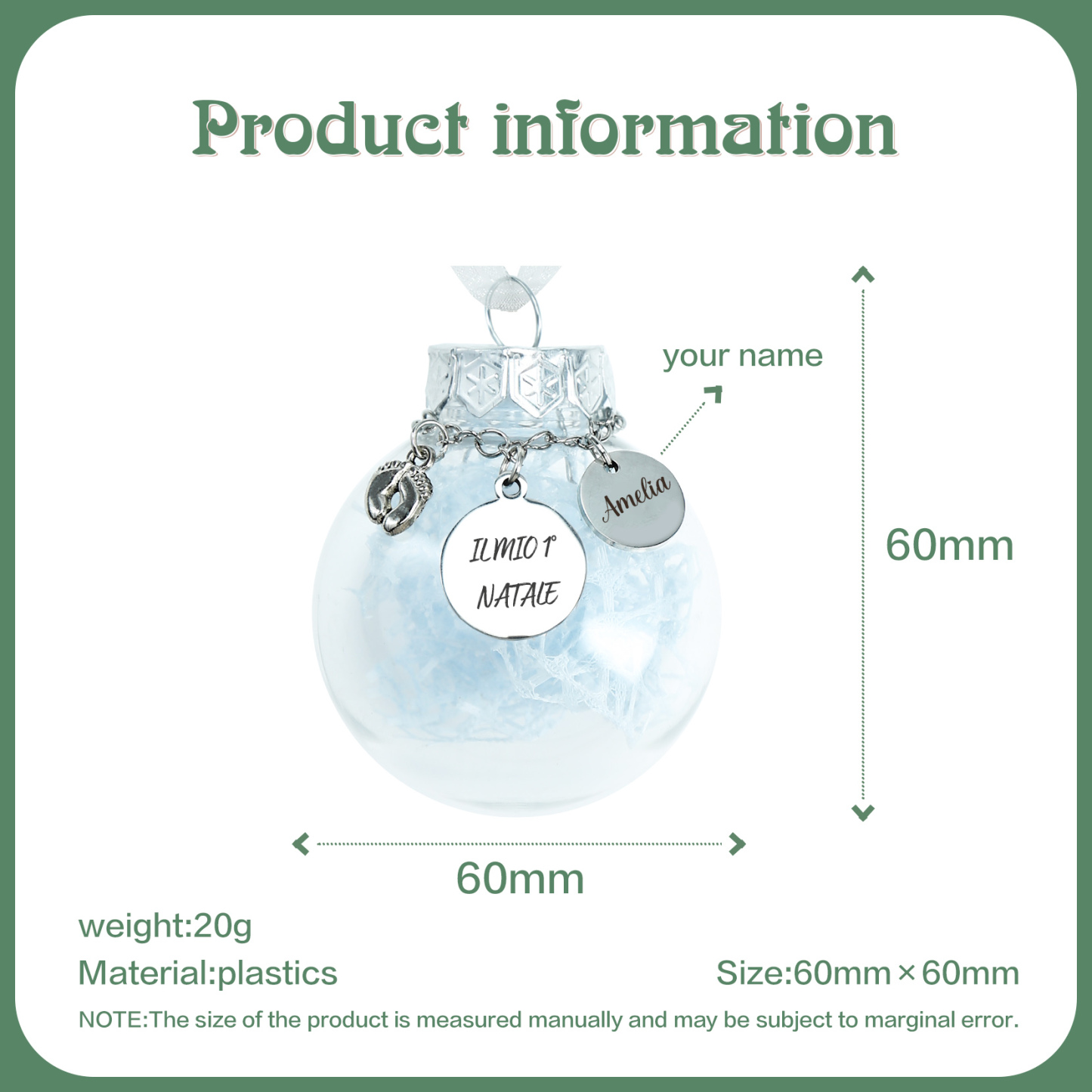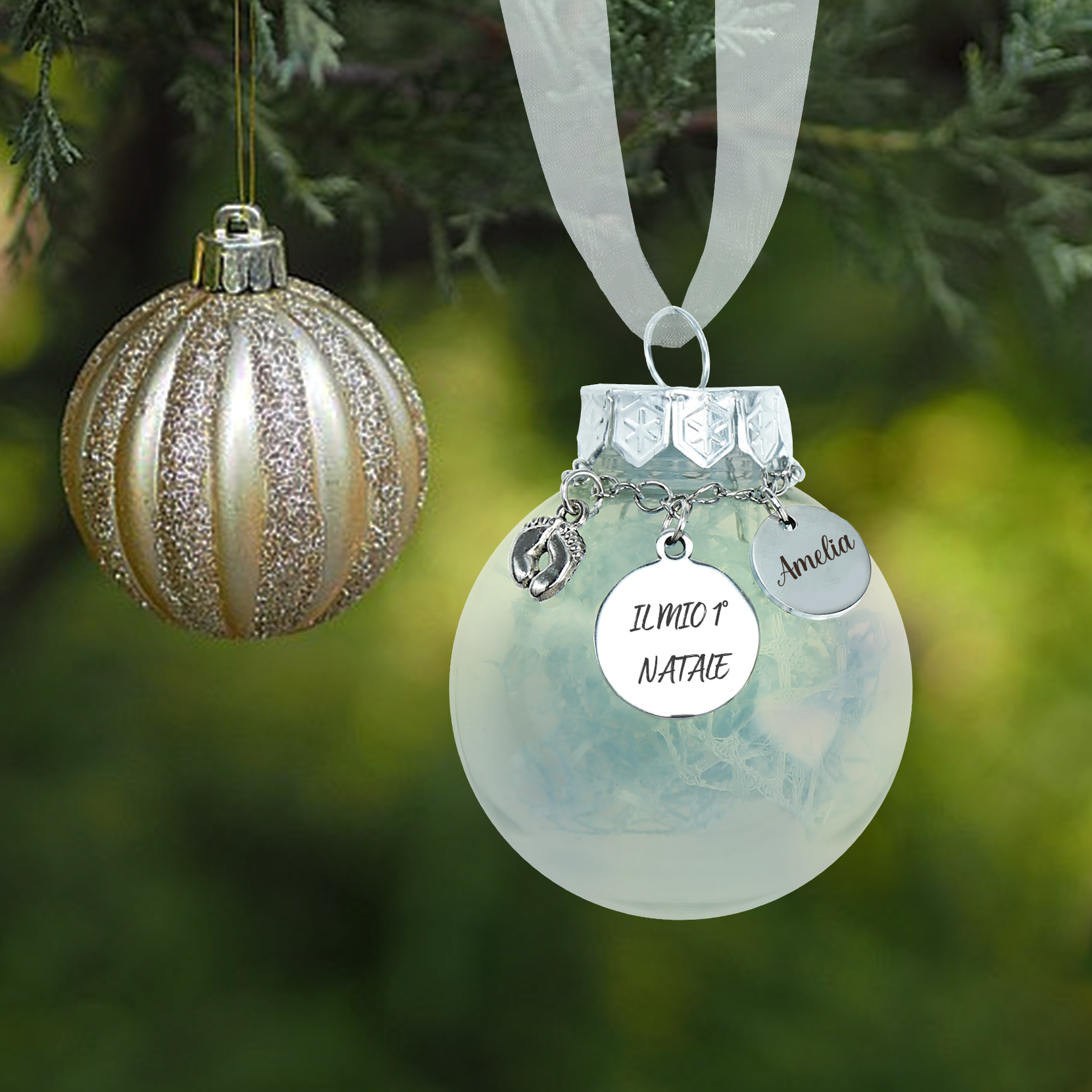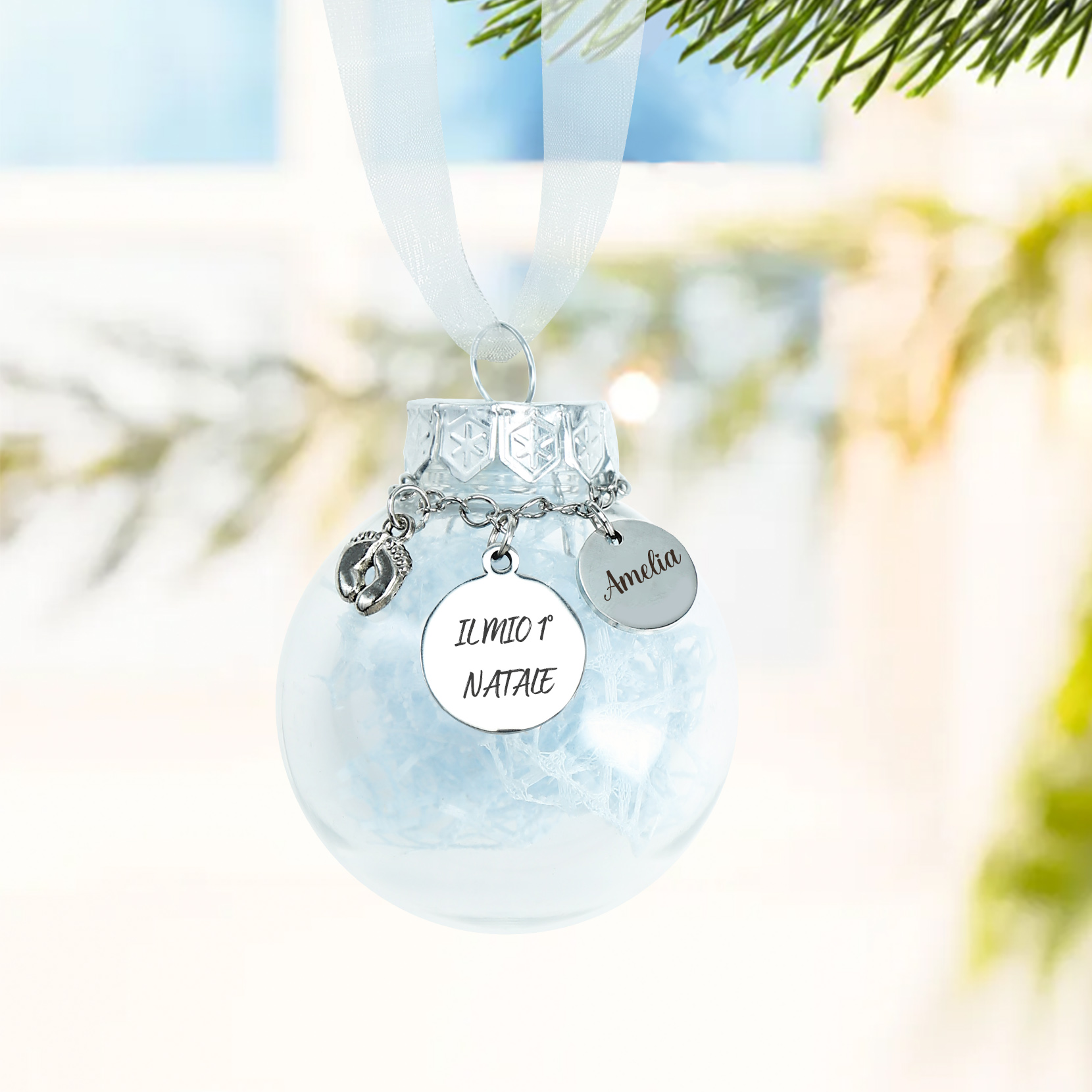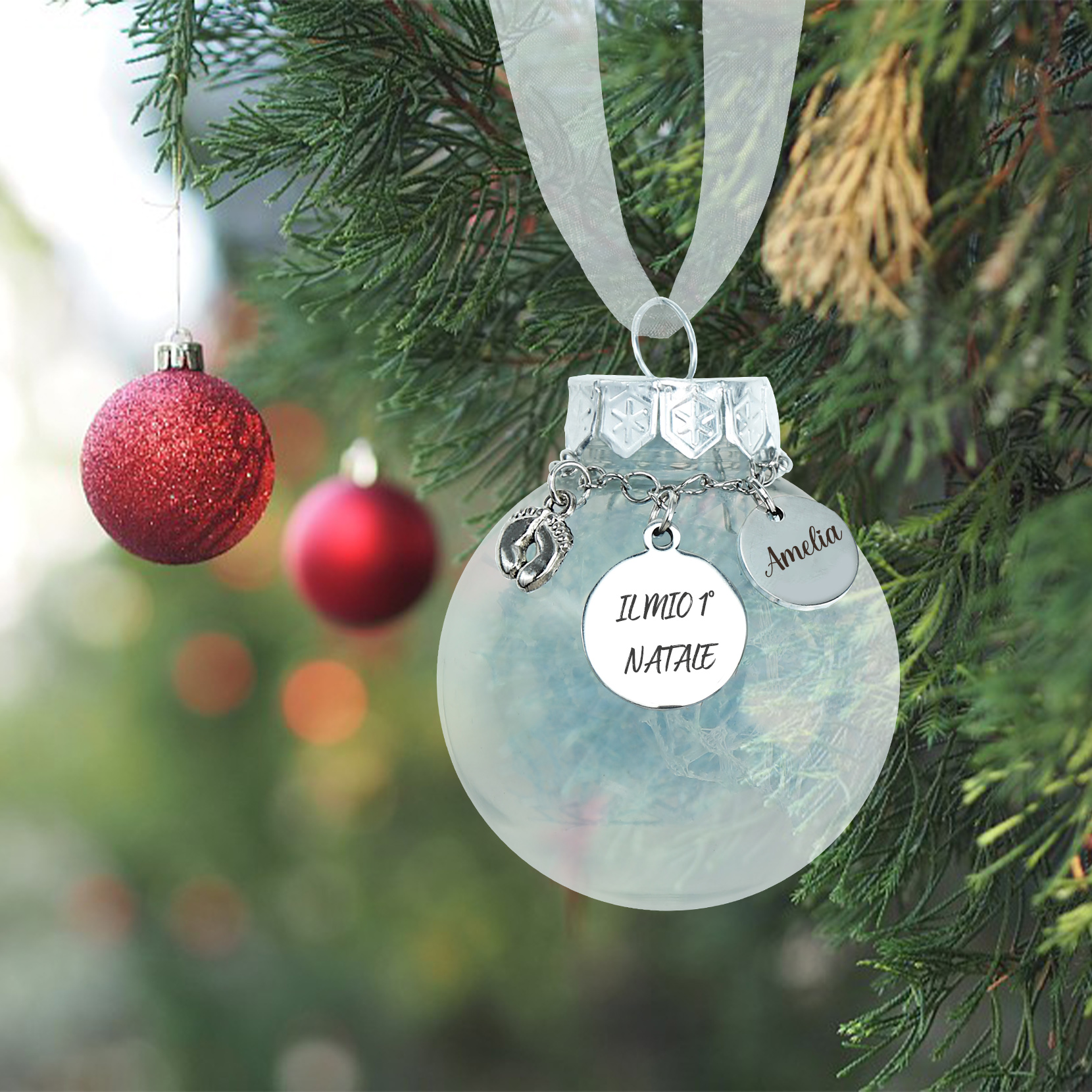 Primo Natale della bambina-Decorazione natalizia ciondolo familiare 1 nome personalizzabile
