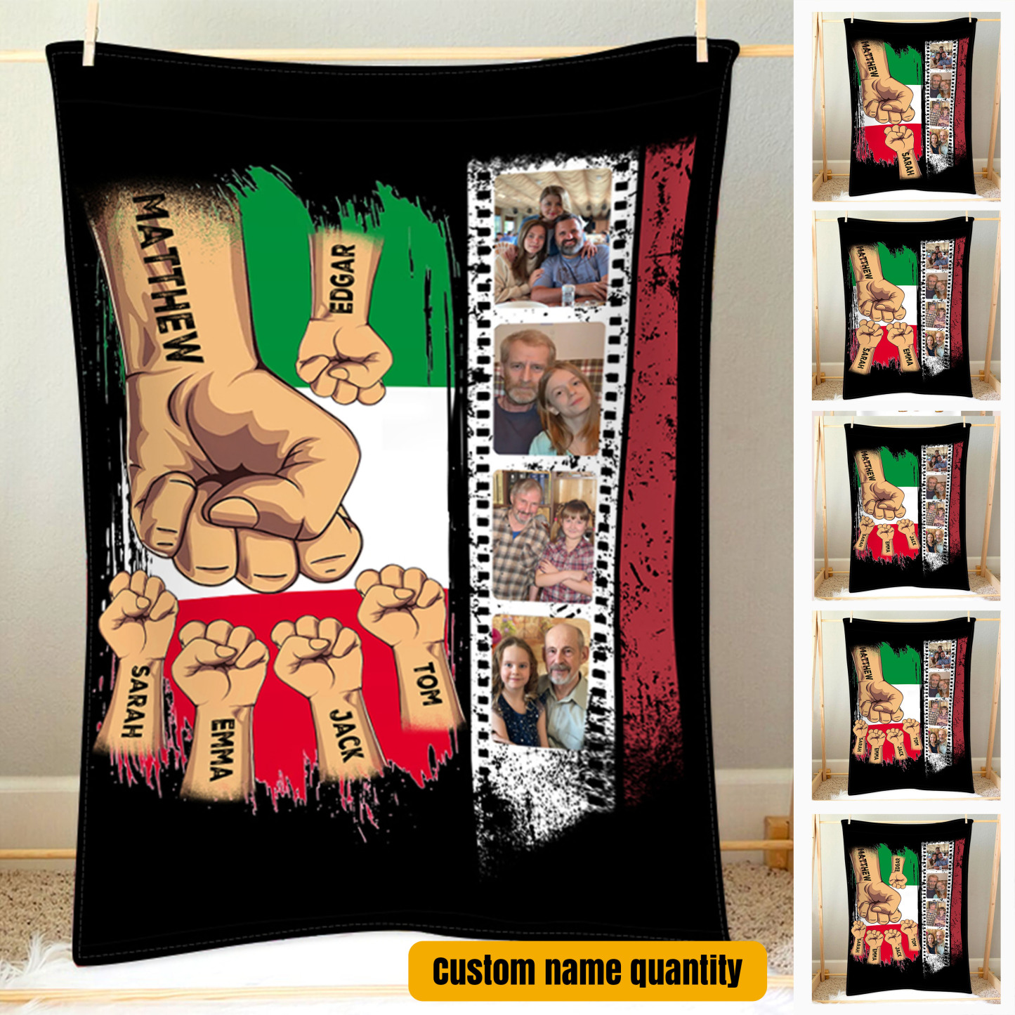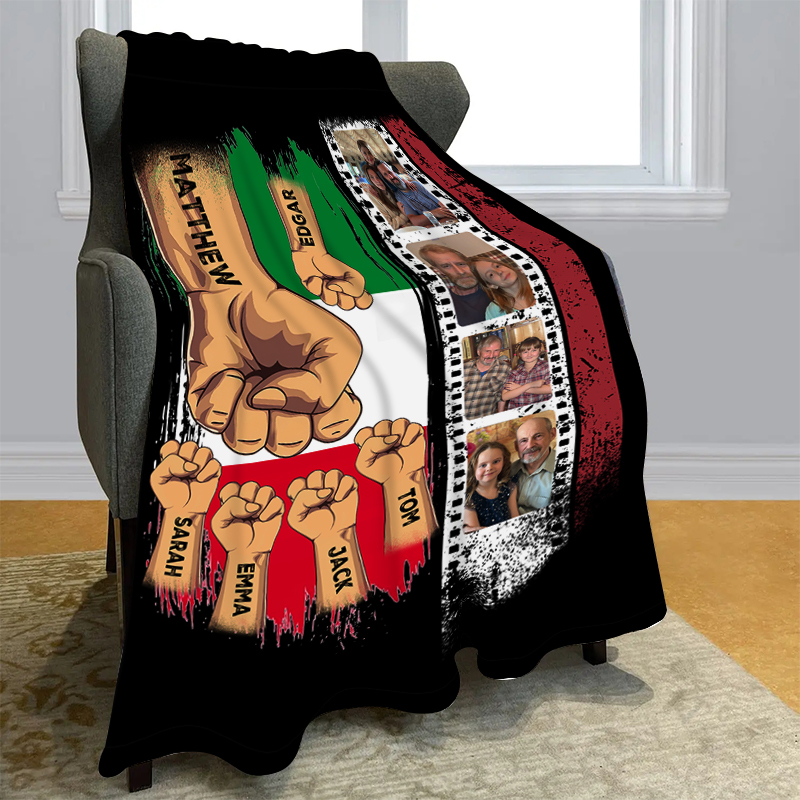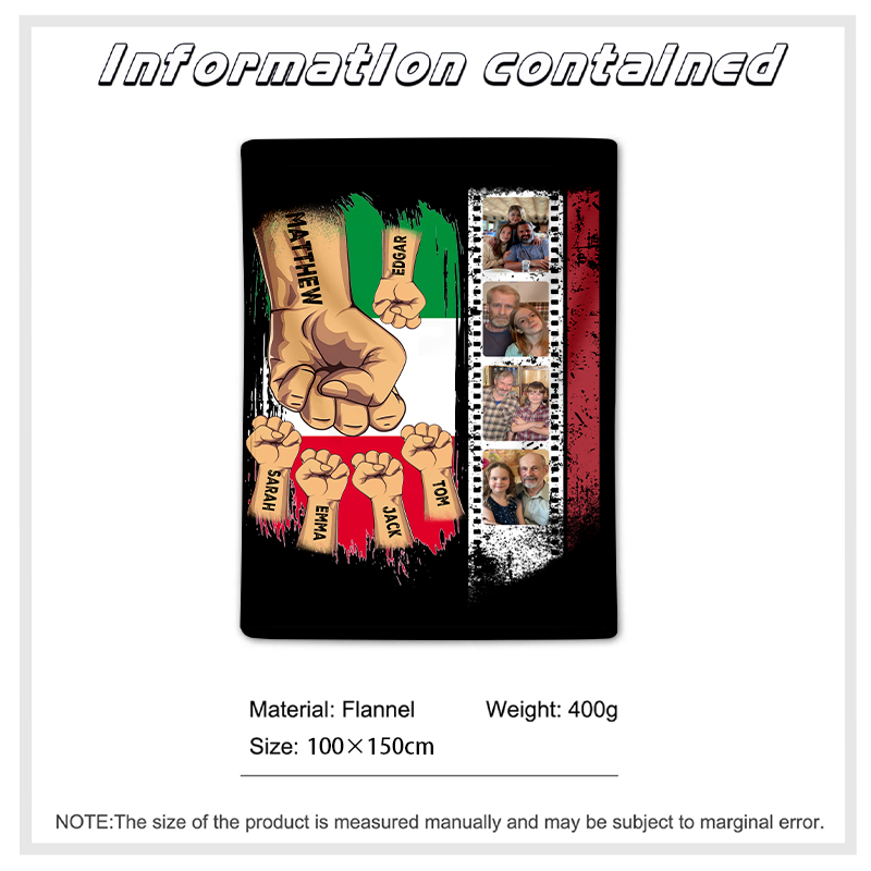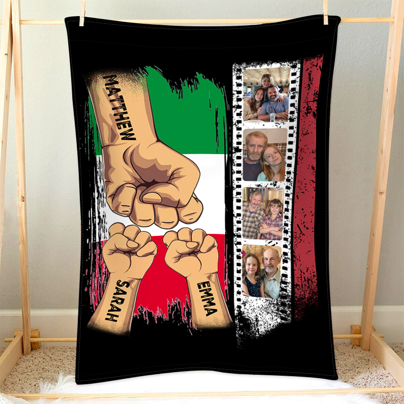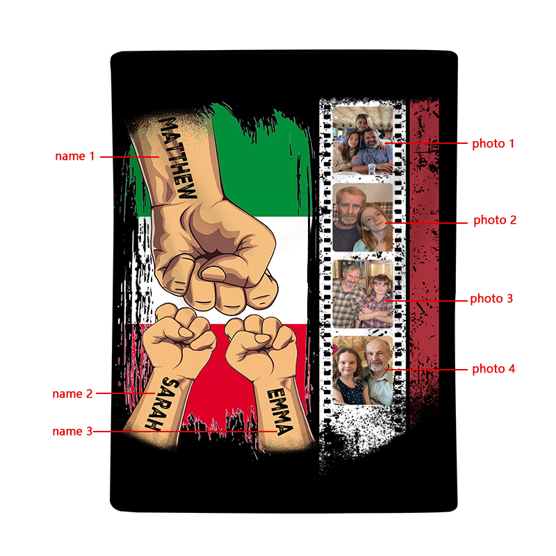 Pugno a pugno-Coperta regalo 3 nomi e 4 foto personalizzati per papà