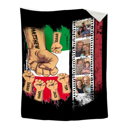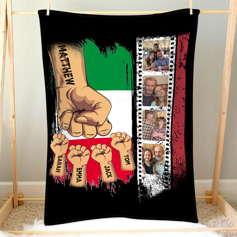 Pugno a pugno-Coperta regalo 5 nomi e 4 foto personalizzati per papà