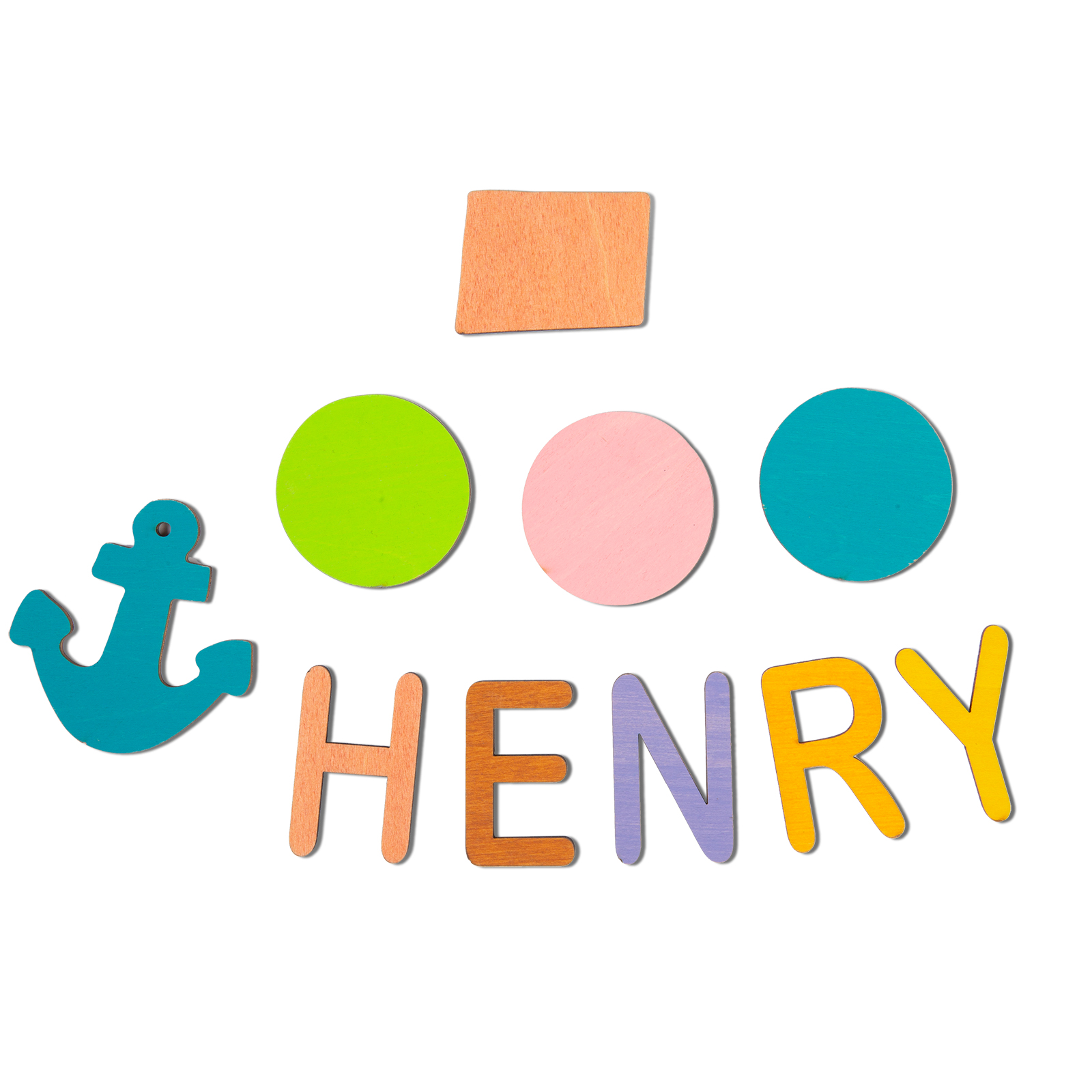 Puzzle di legno con il nome: crea dei puzzle di legno colorati con qualsiasi nome o parola per il tuo bambino per incoraggiare le abilità motorie e il riconoscimento delle lettere. Questo puzzle è sia educativo che divertente.