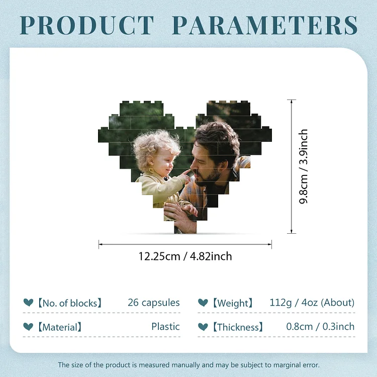 Puzzle di plastica a cuore per Papà 1 testo e 1 foto personalizzati regalo per la festa di papà