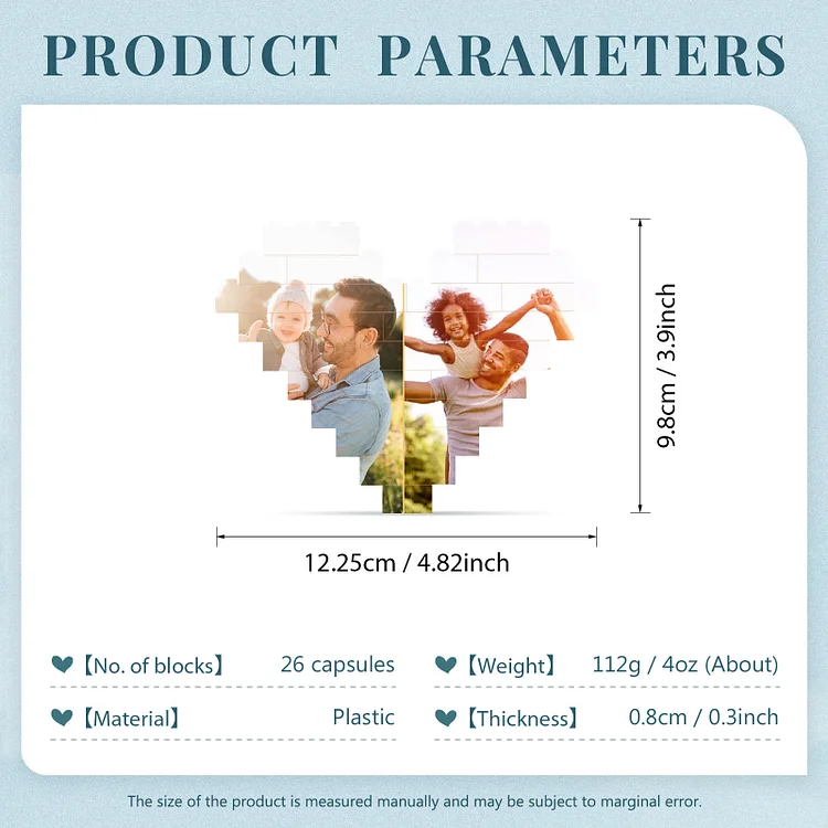 Puzzle di plastica a cuore per Papà 2 foto 2 nomi e 1 testo personalizzati regalo per la famiglia
