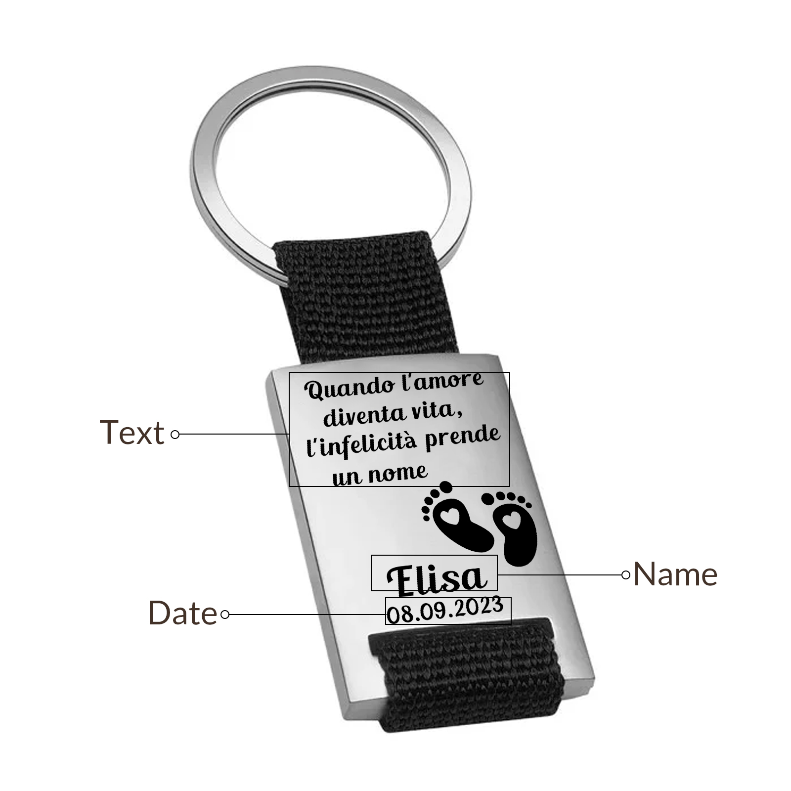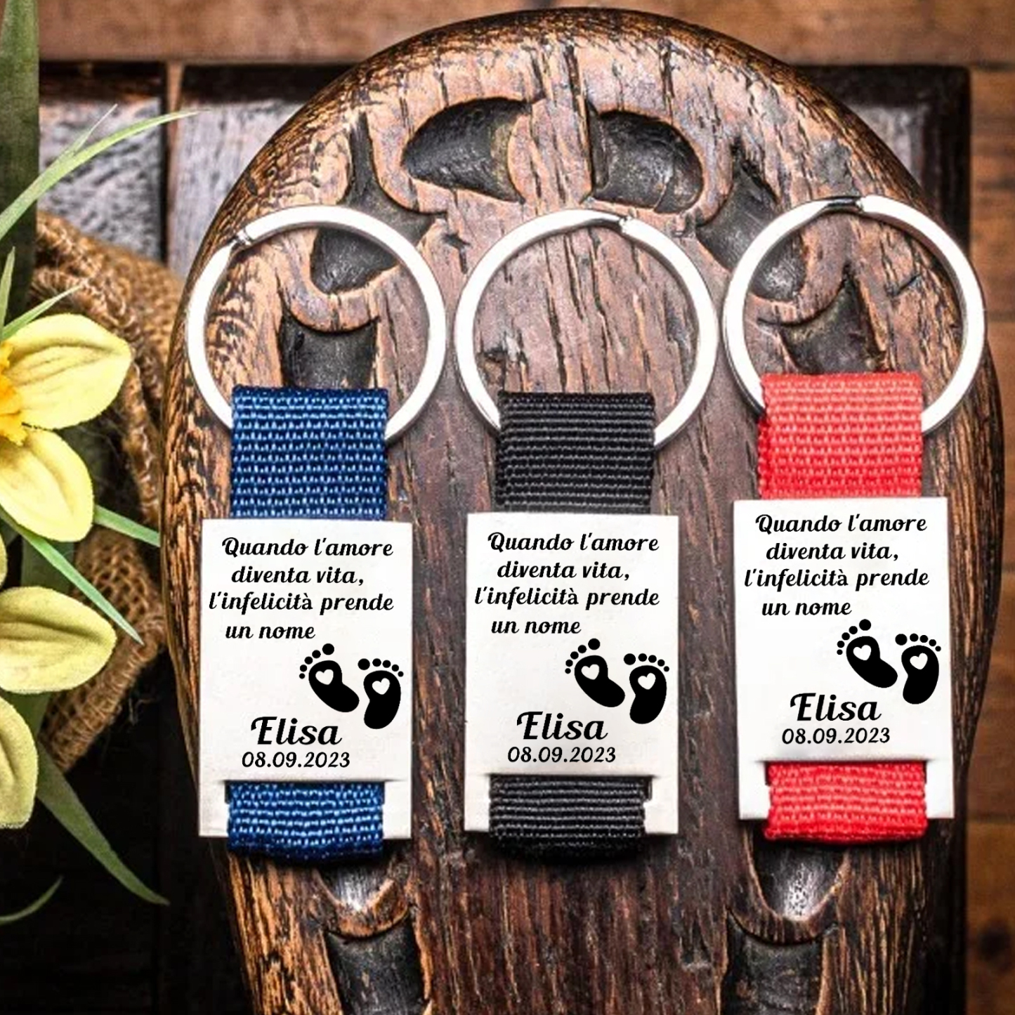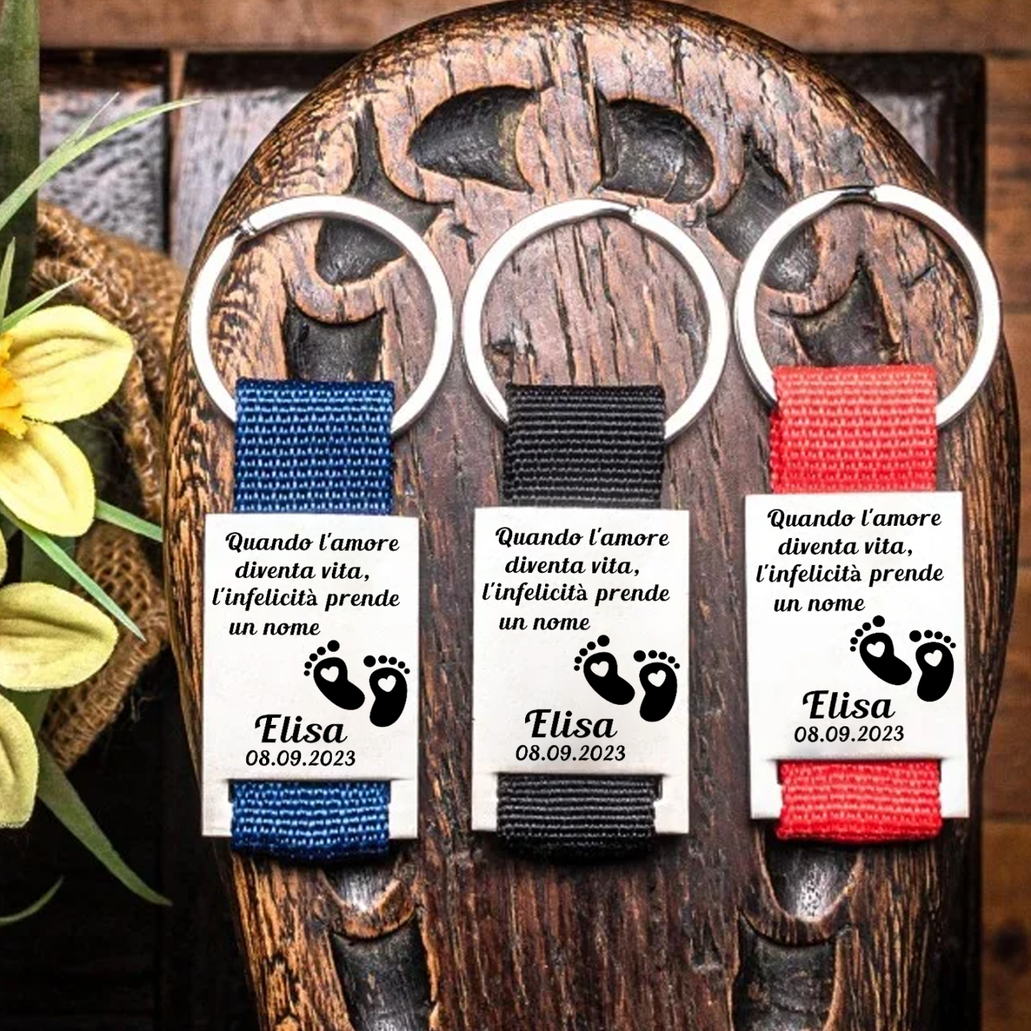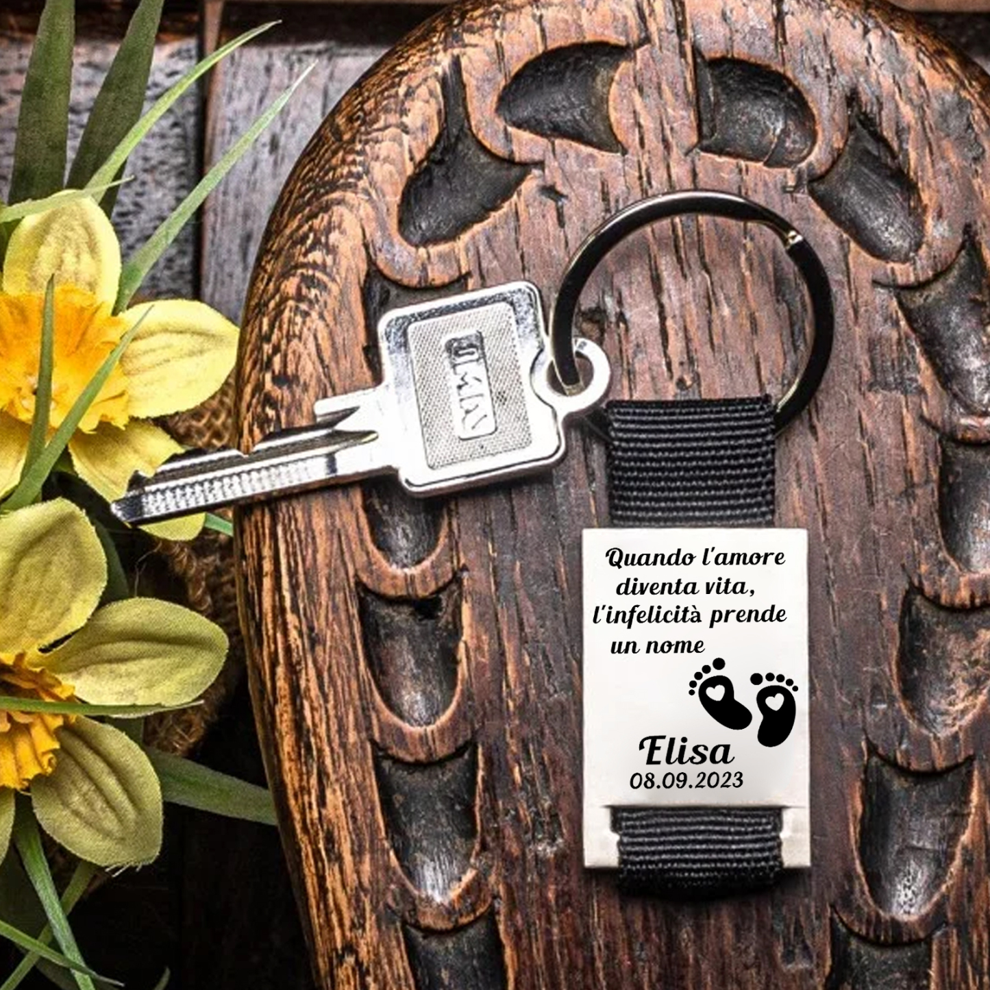 Quando l'amore diventa vita-Portachiavi 1 nome 1 testo e 1 data per papà regalo della festa di padre