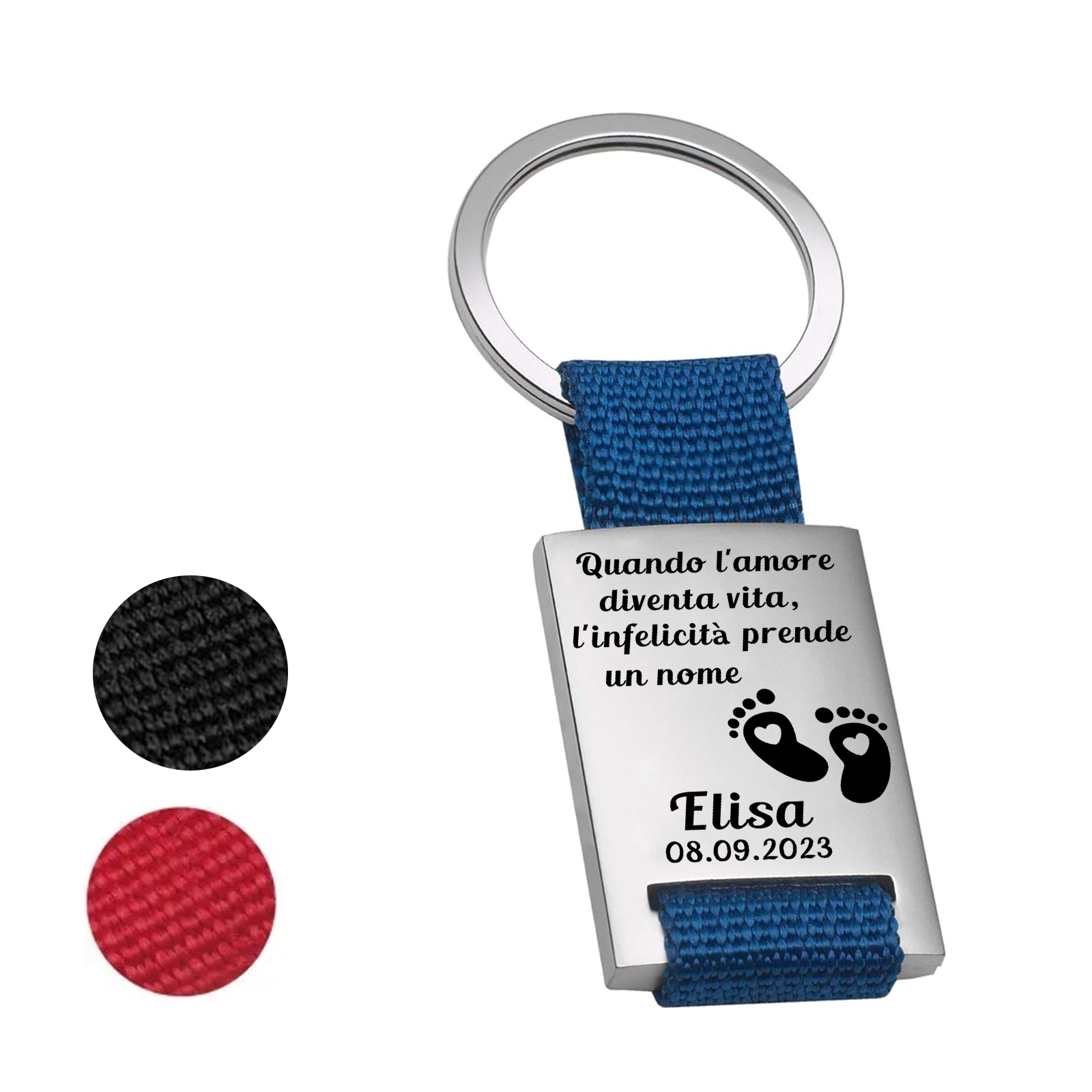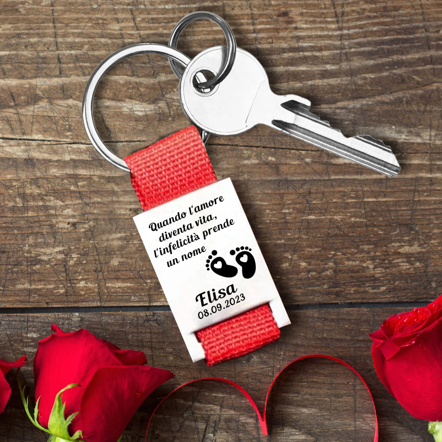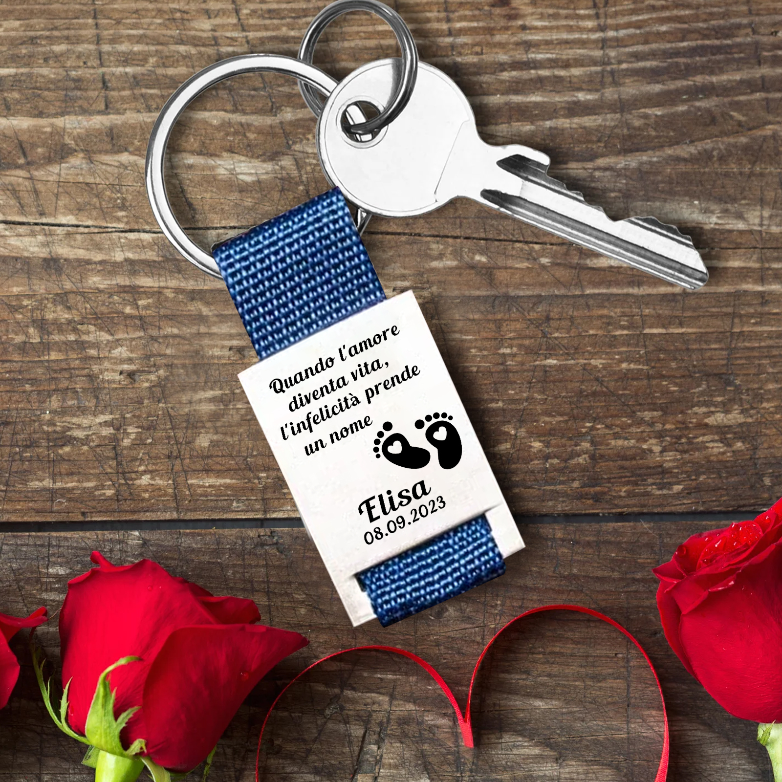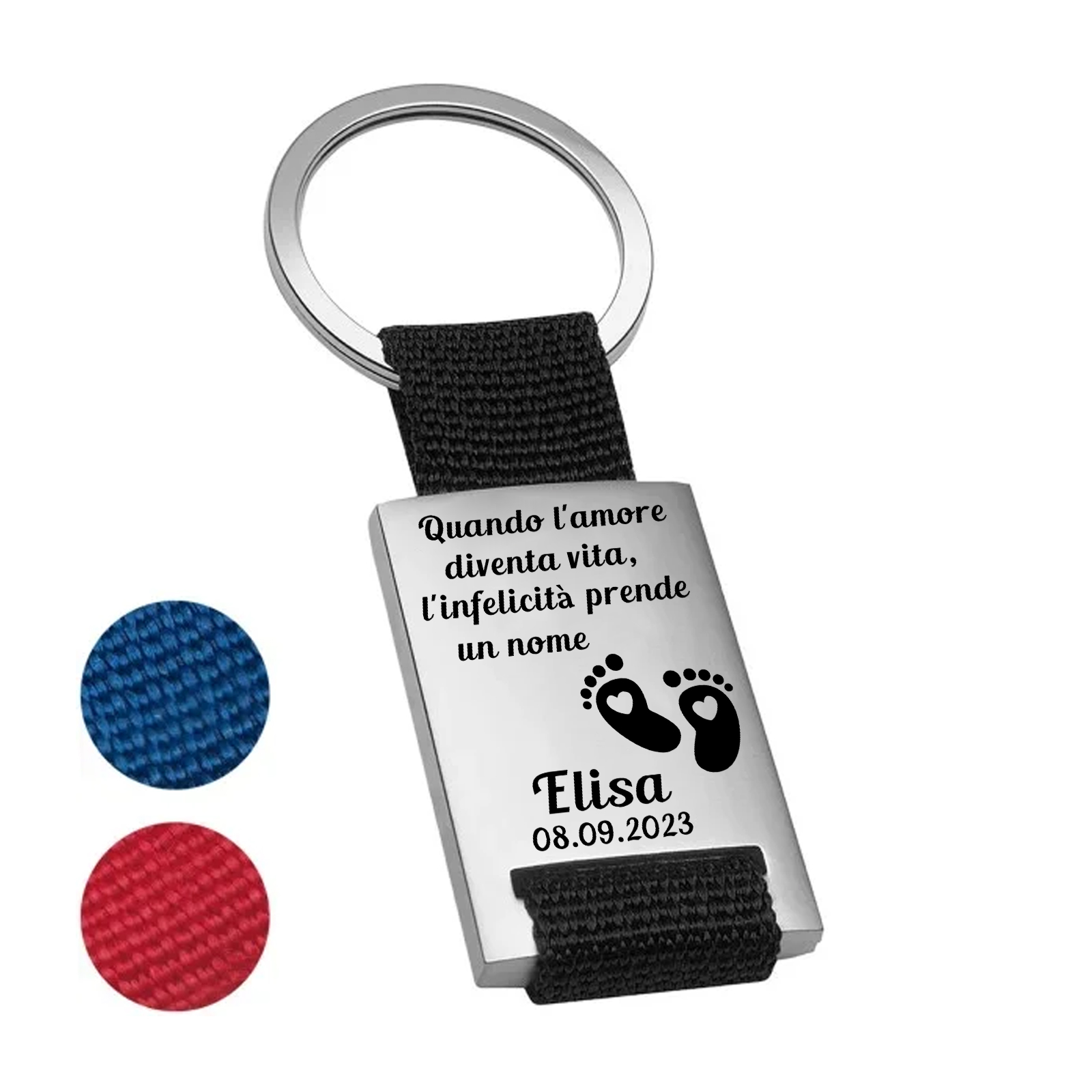 Quando l'amore diventa vita-Portachiavi 1 nome 1 testo e 1 data per papà regalo della festa di padre