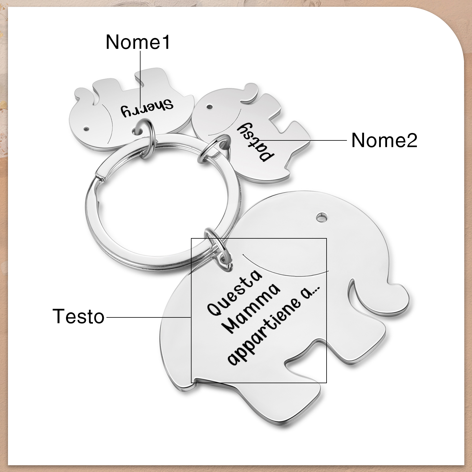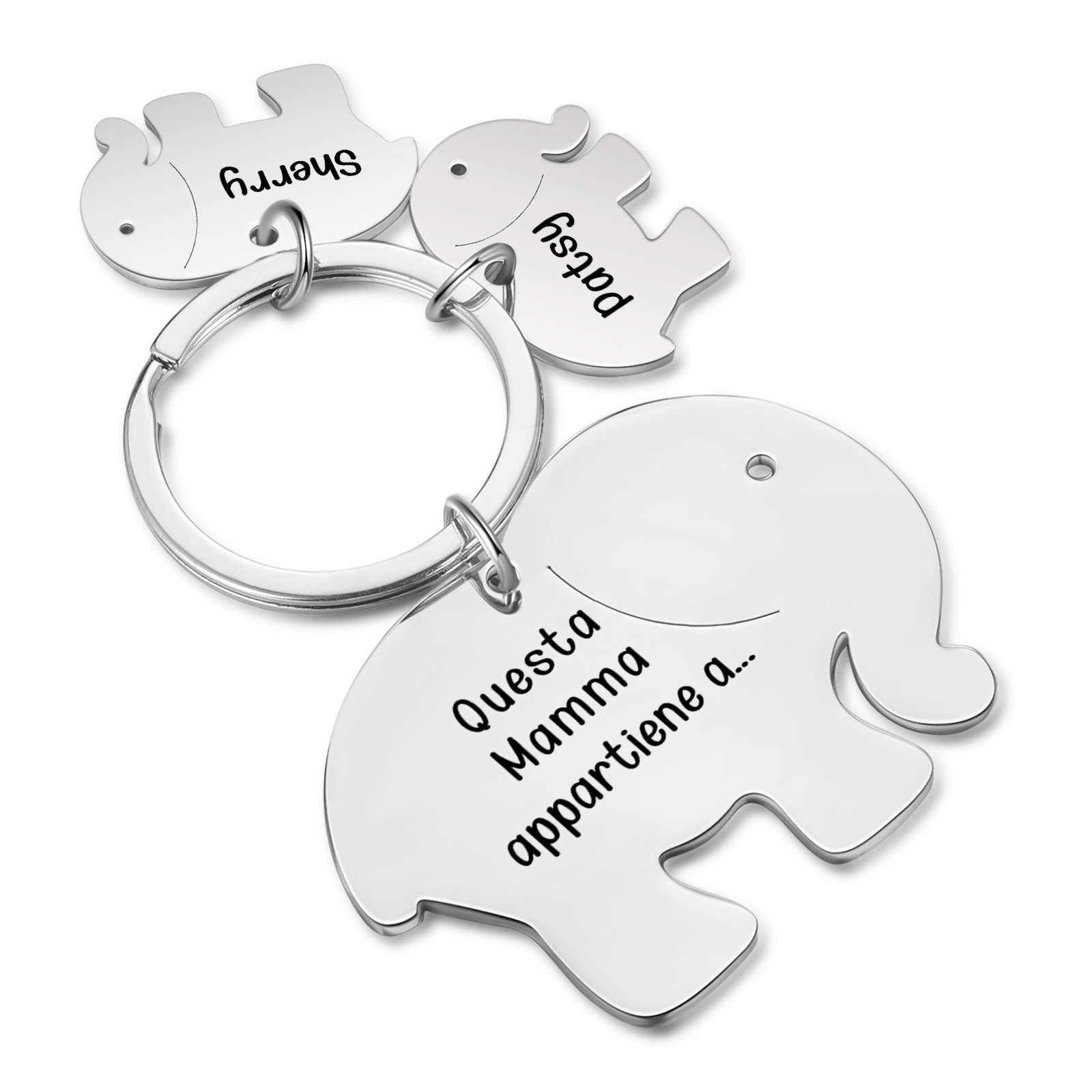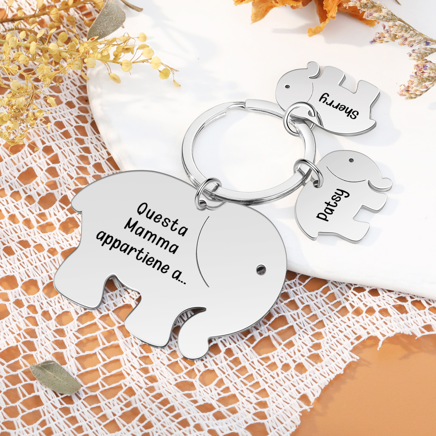 Questa mamma Appartiene a-Portachiavi con ciondolo d'elefante con 2 nomi e 1 testo personalizzati