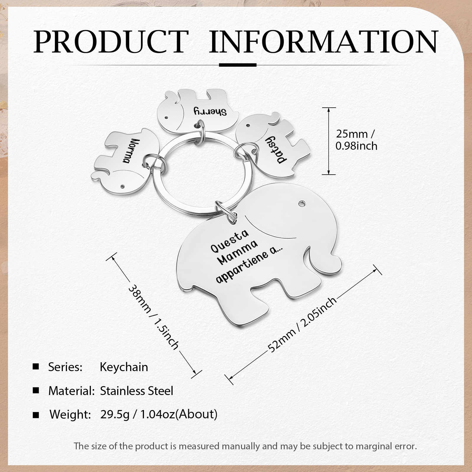 Questa mamma Appartiene a-Portachiavi con ciondolo d'elefante con 3 nomi e 1 testo personalizzati