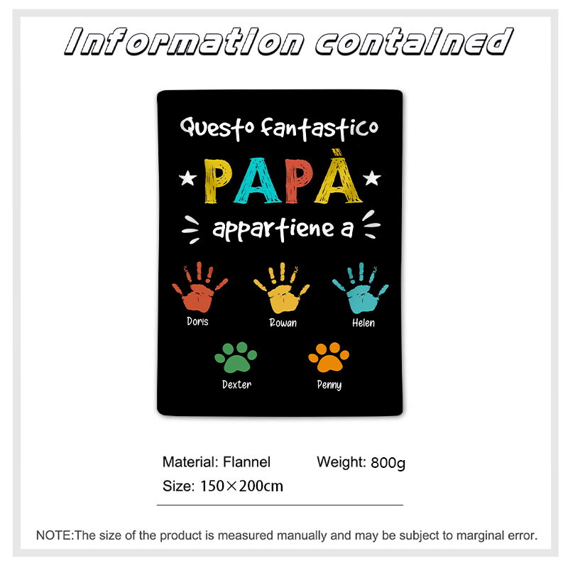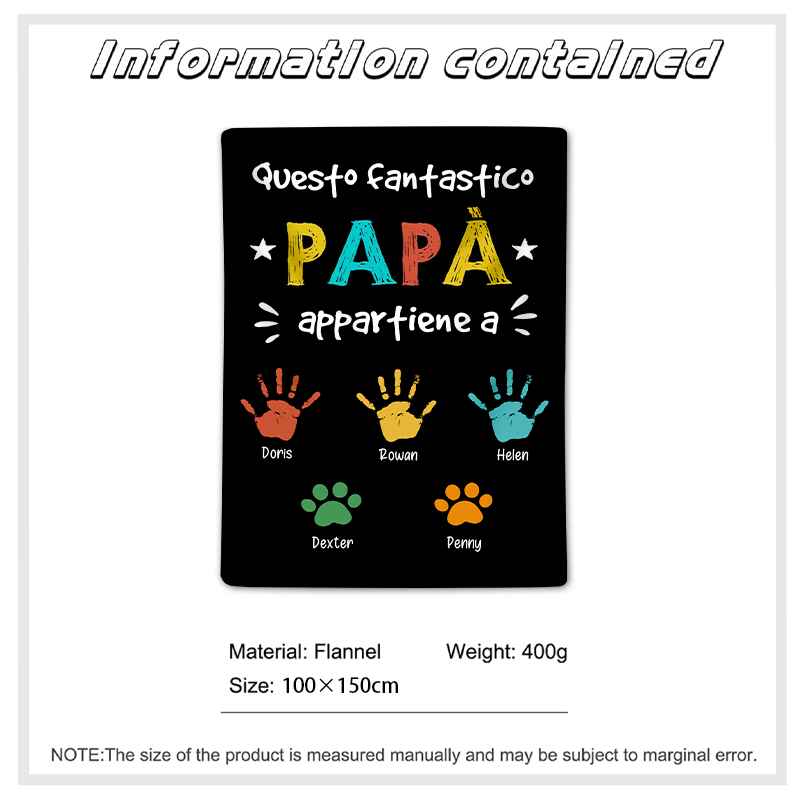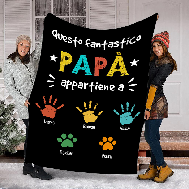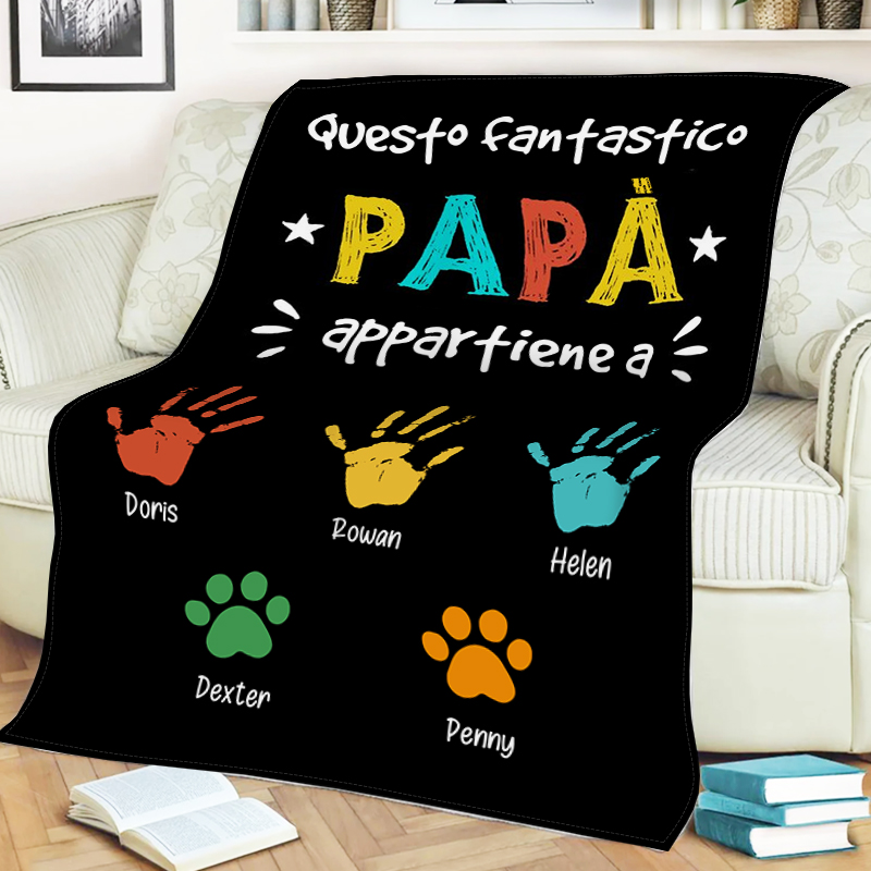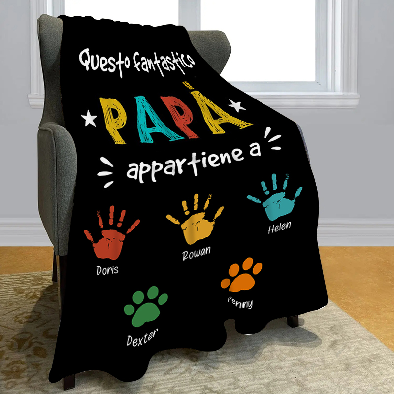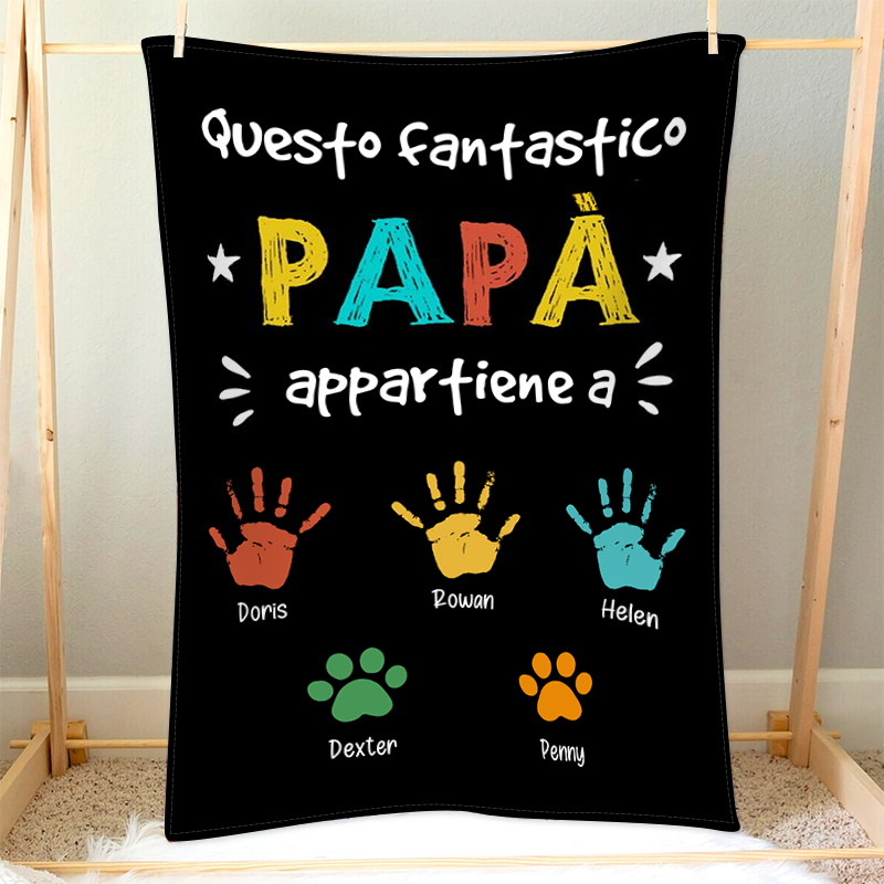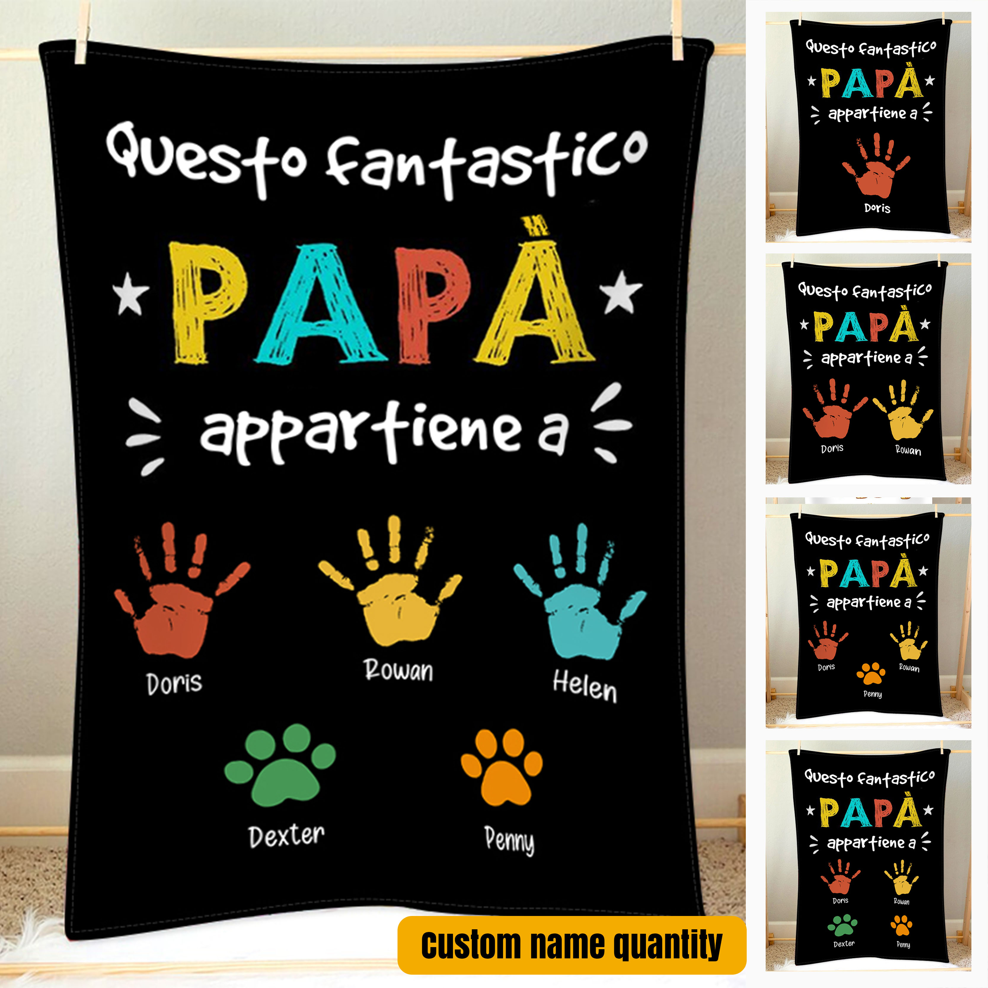 Questo fantastico papà appartiene a-Coperta impronta di mano regalo 4 nomi personalizzati per papà