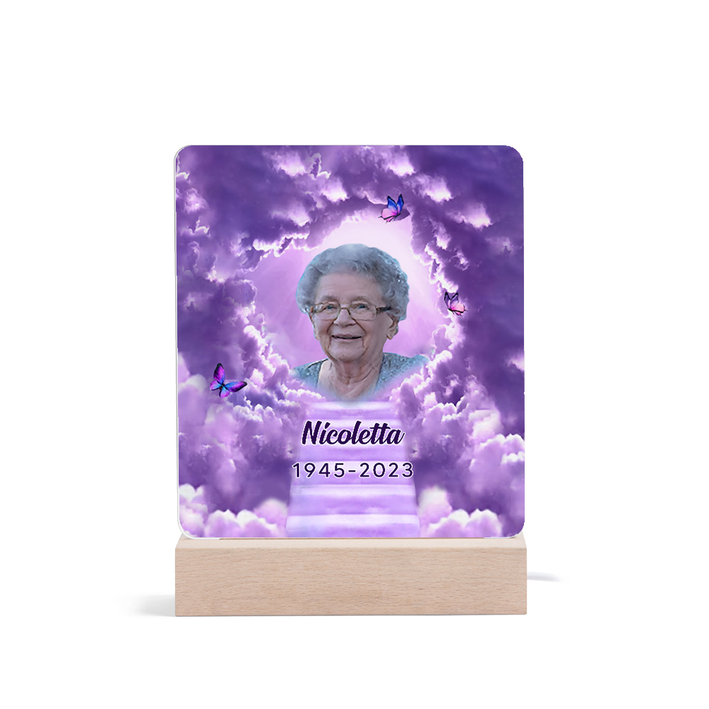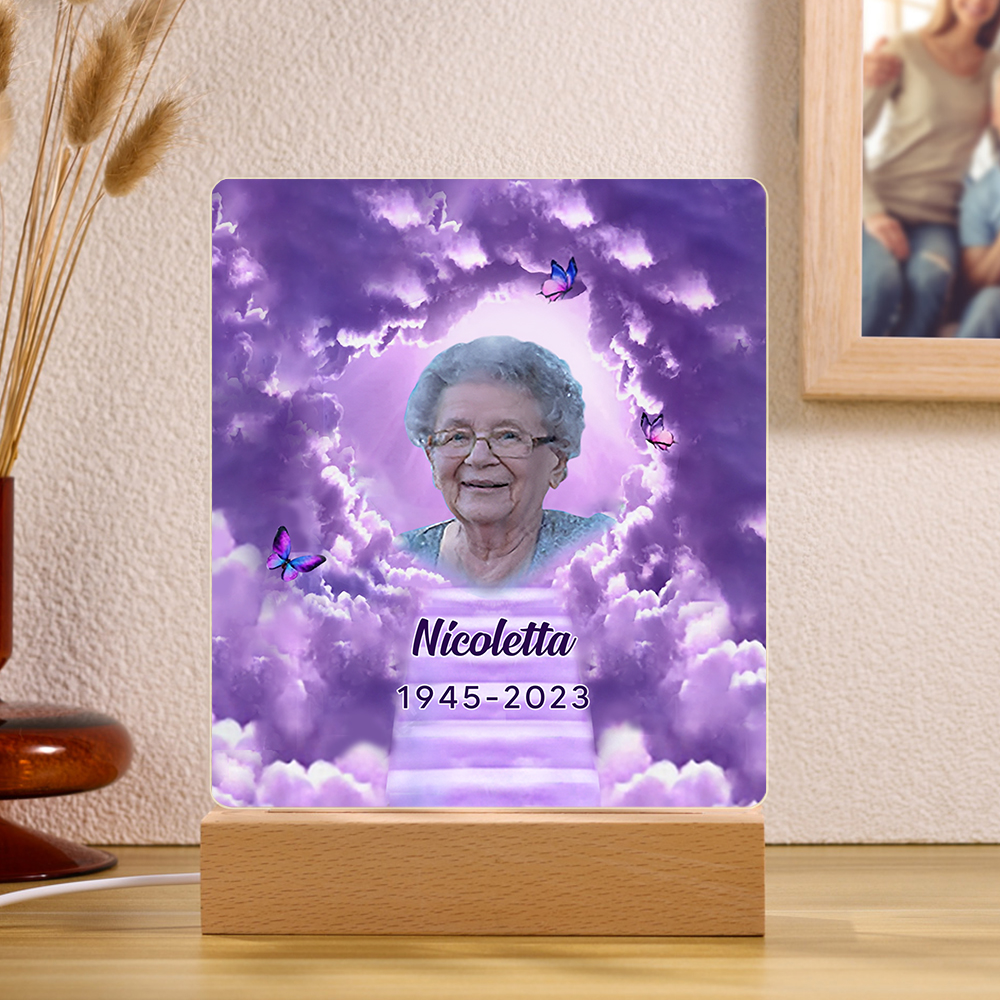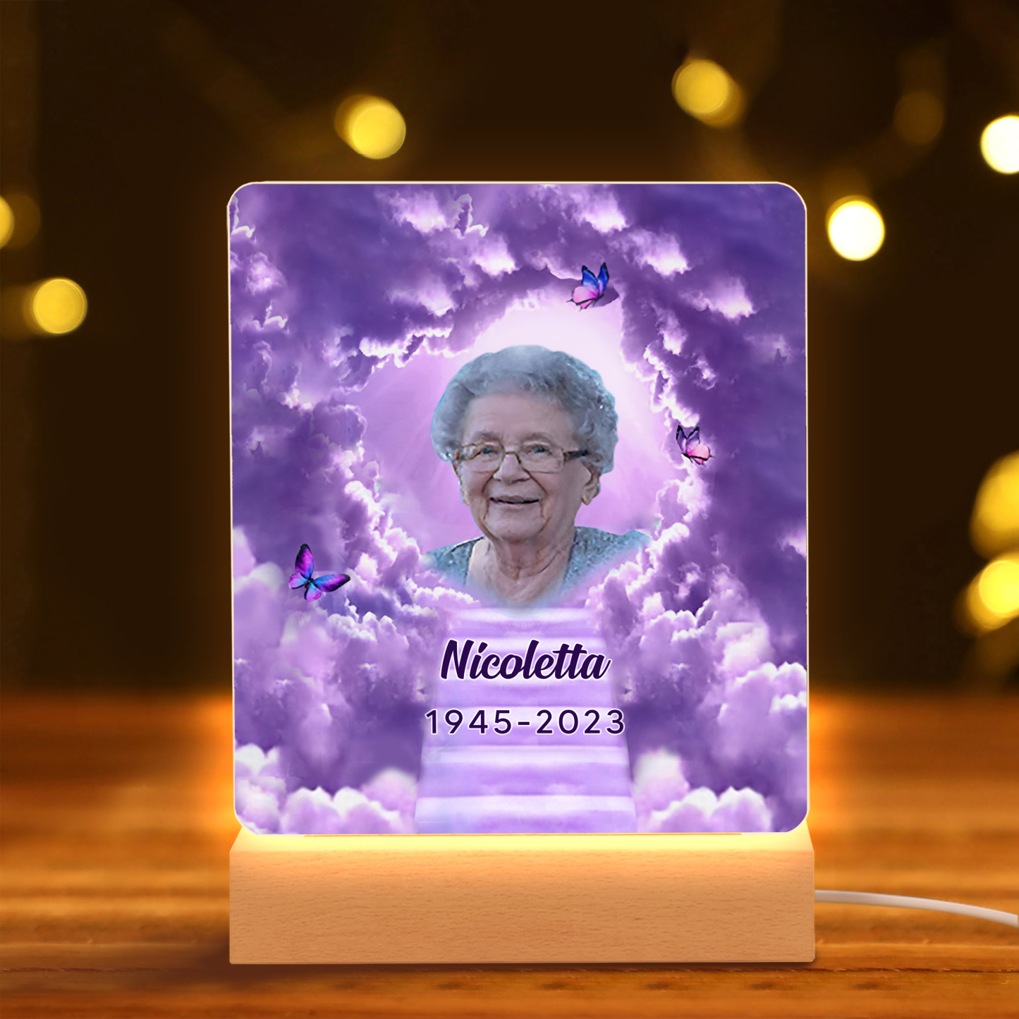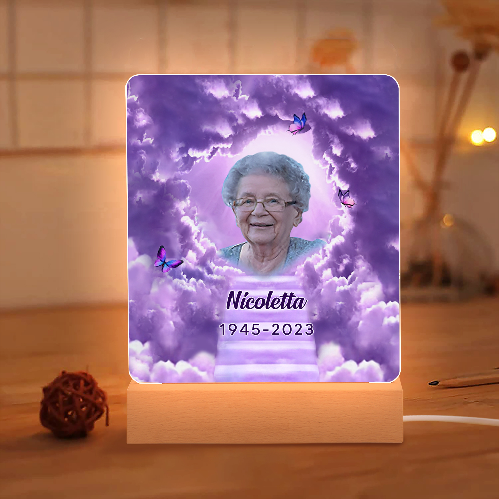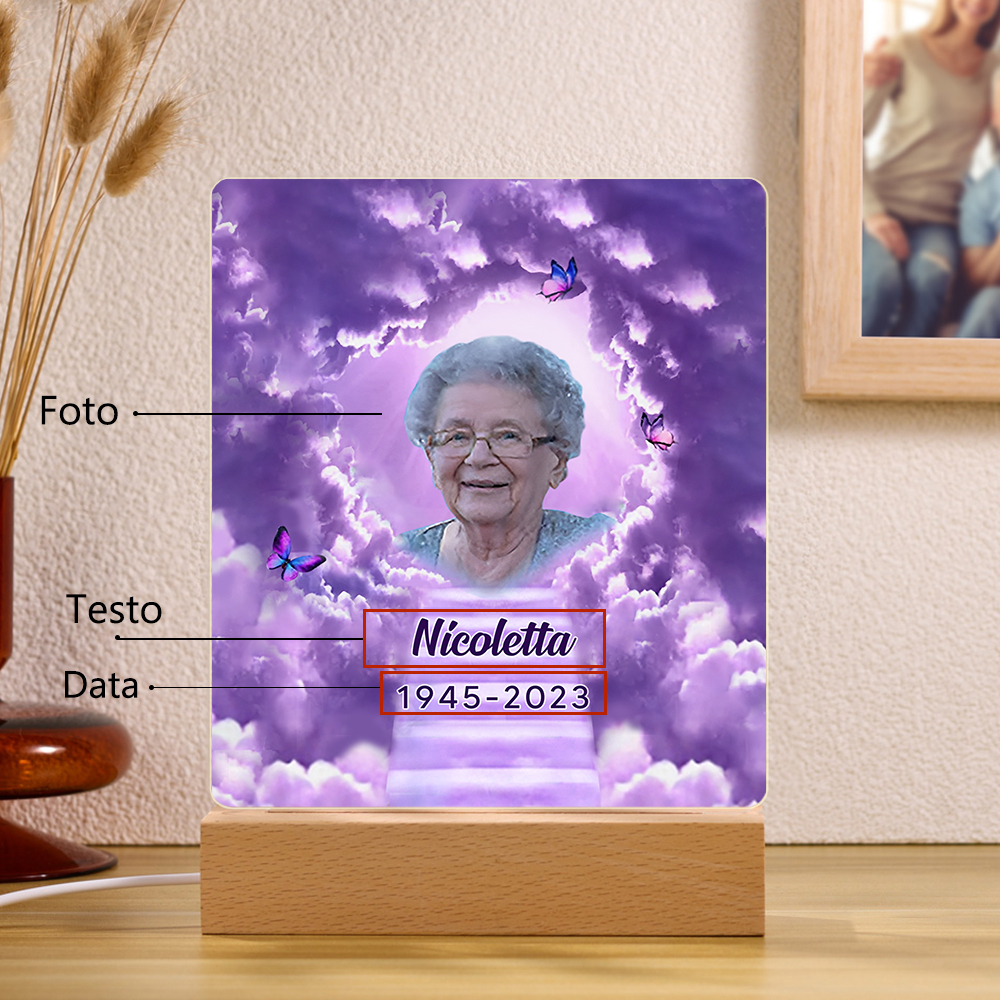 Colomba e Paradiso-Lampada LED commemorativa acrilica 1 nome e data personalizzato