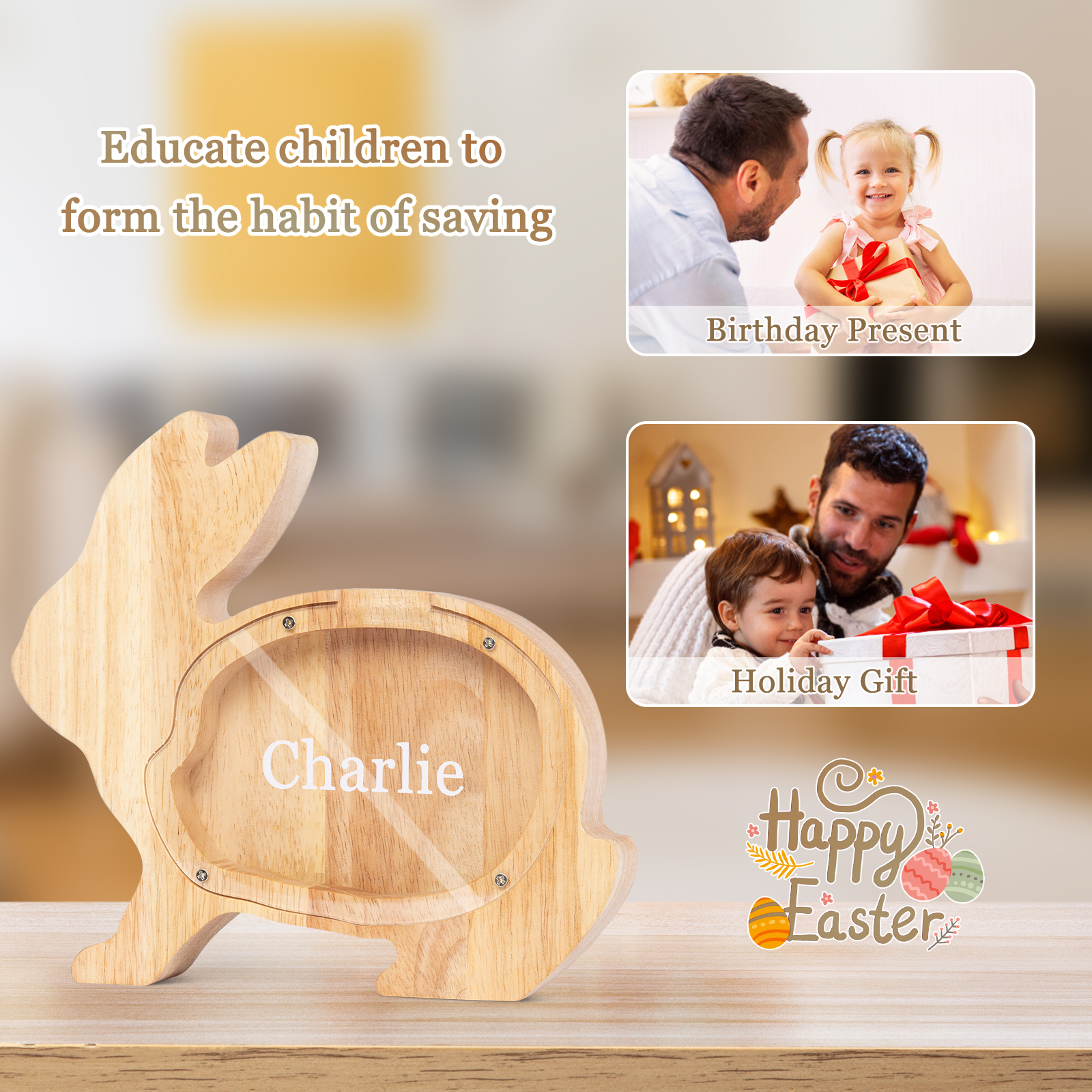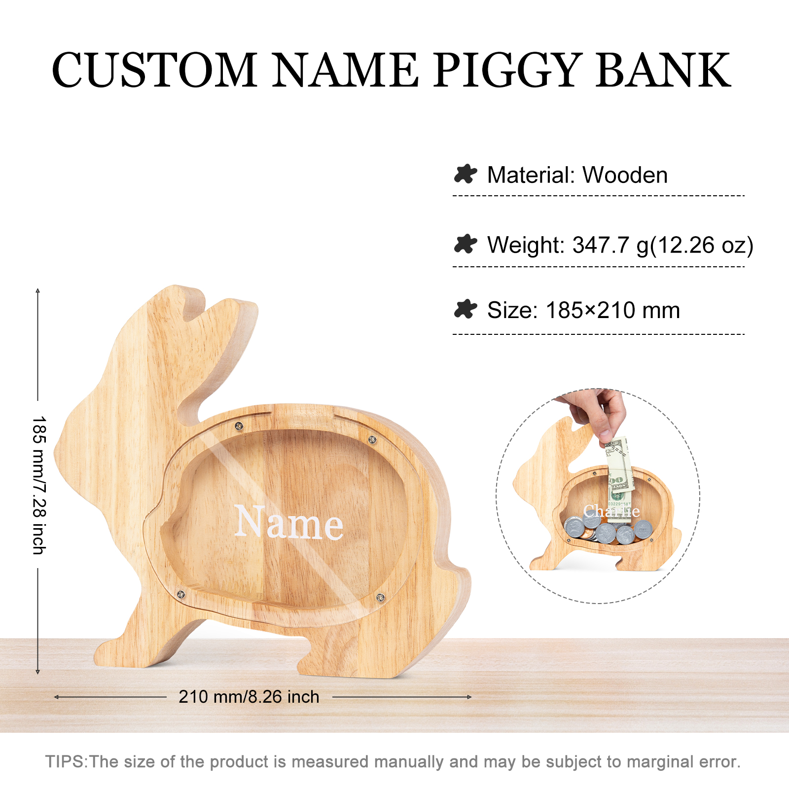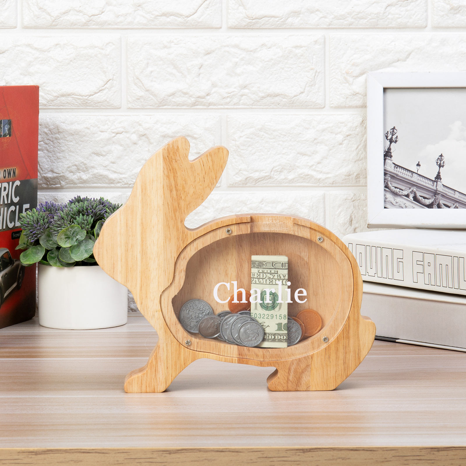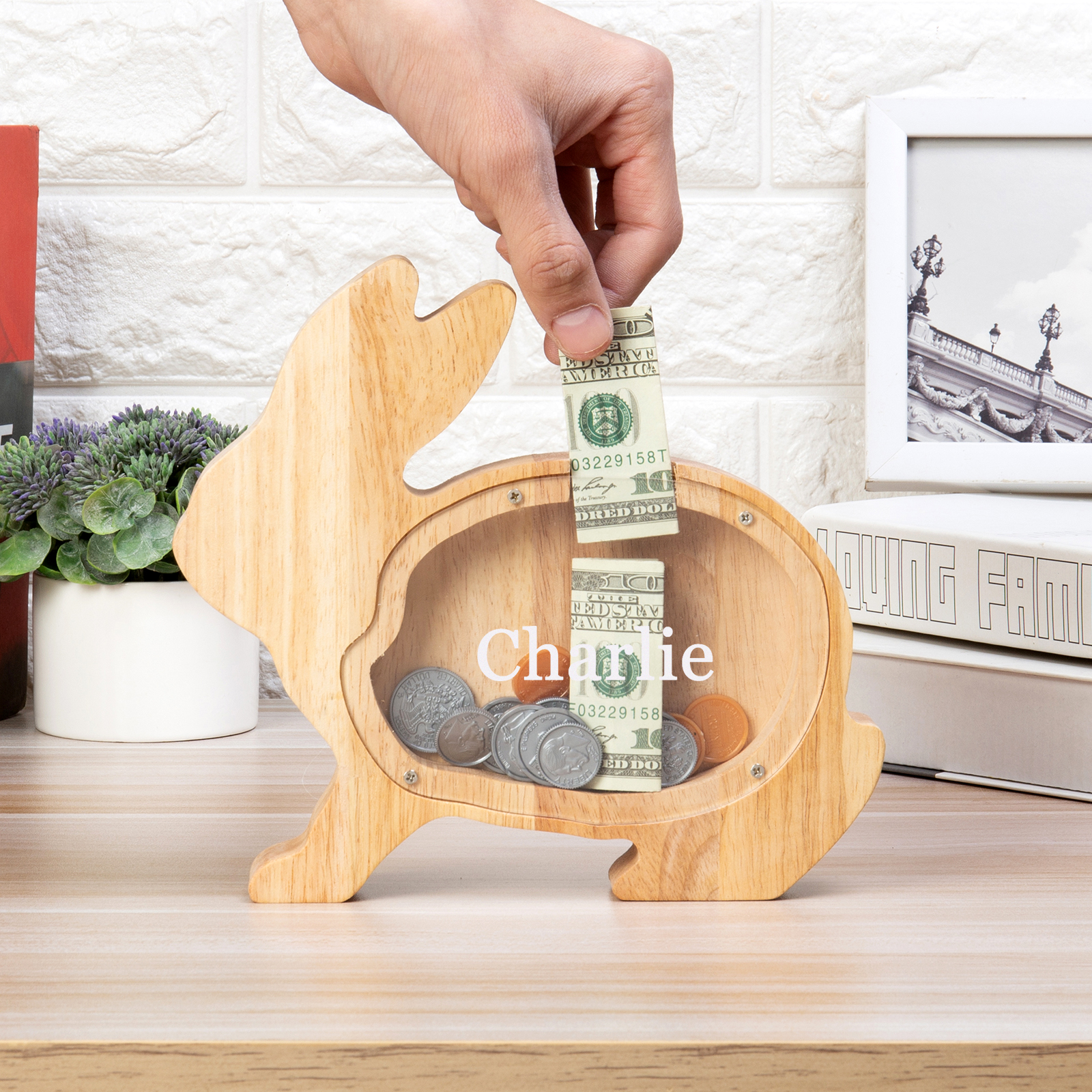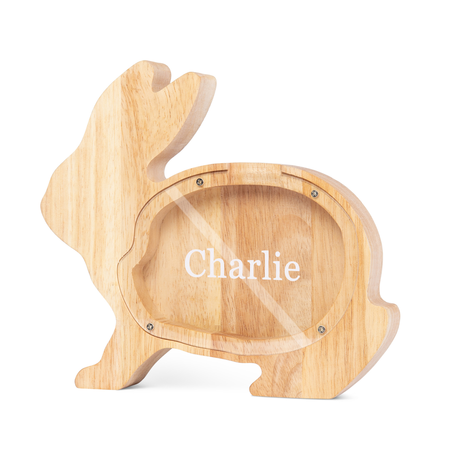 Salvadanaio in legno coniglio personalizzato con 1 nome regalo per i bambini