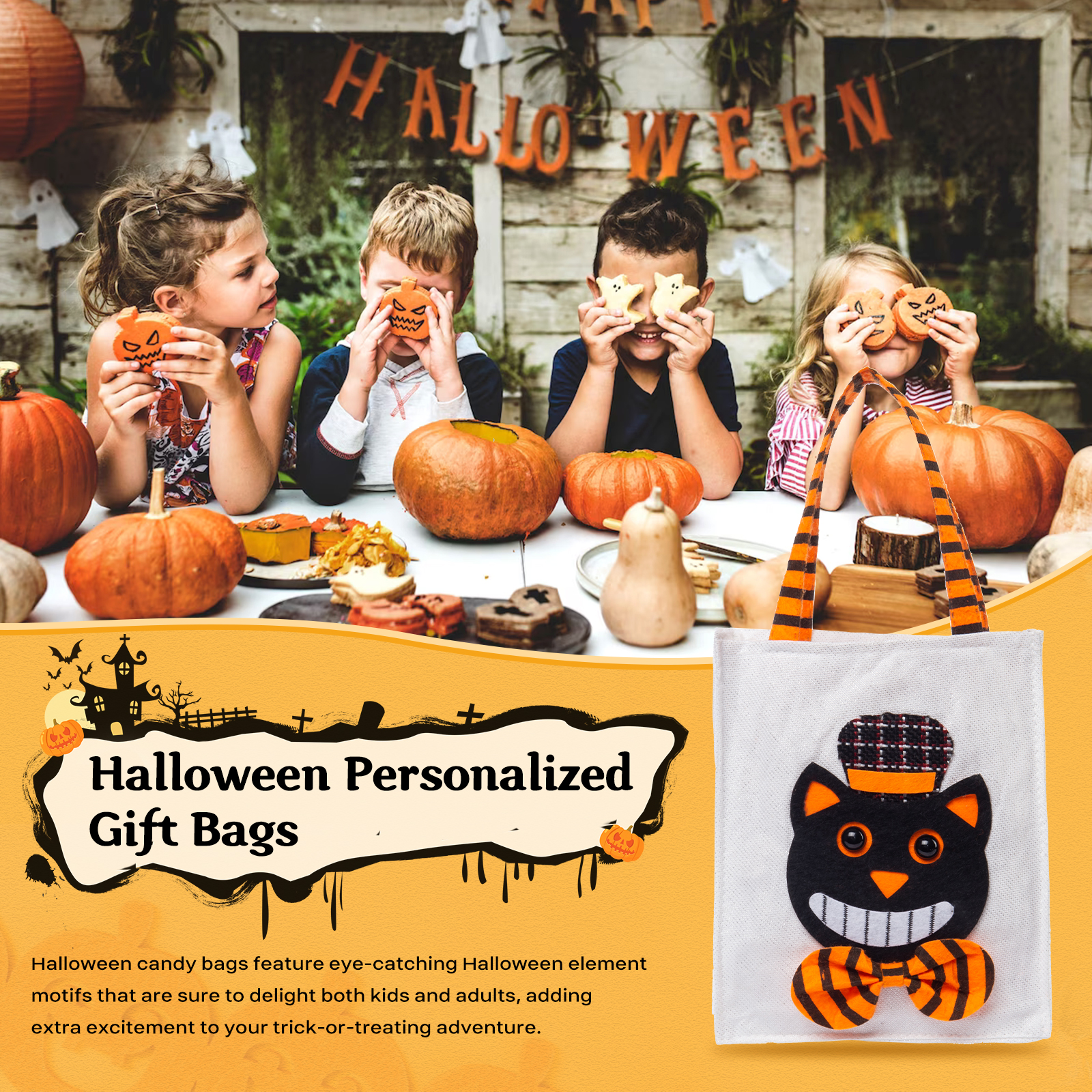 Secchiello Halloween borsa per caramelle regalo per i bambini contenitore cioccolatini 1 nome personalizzato