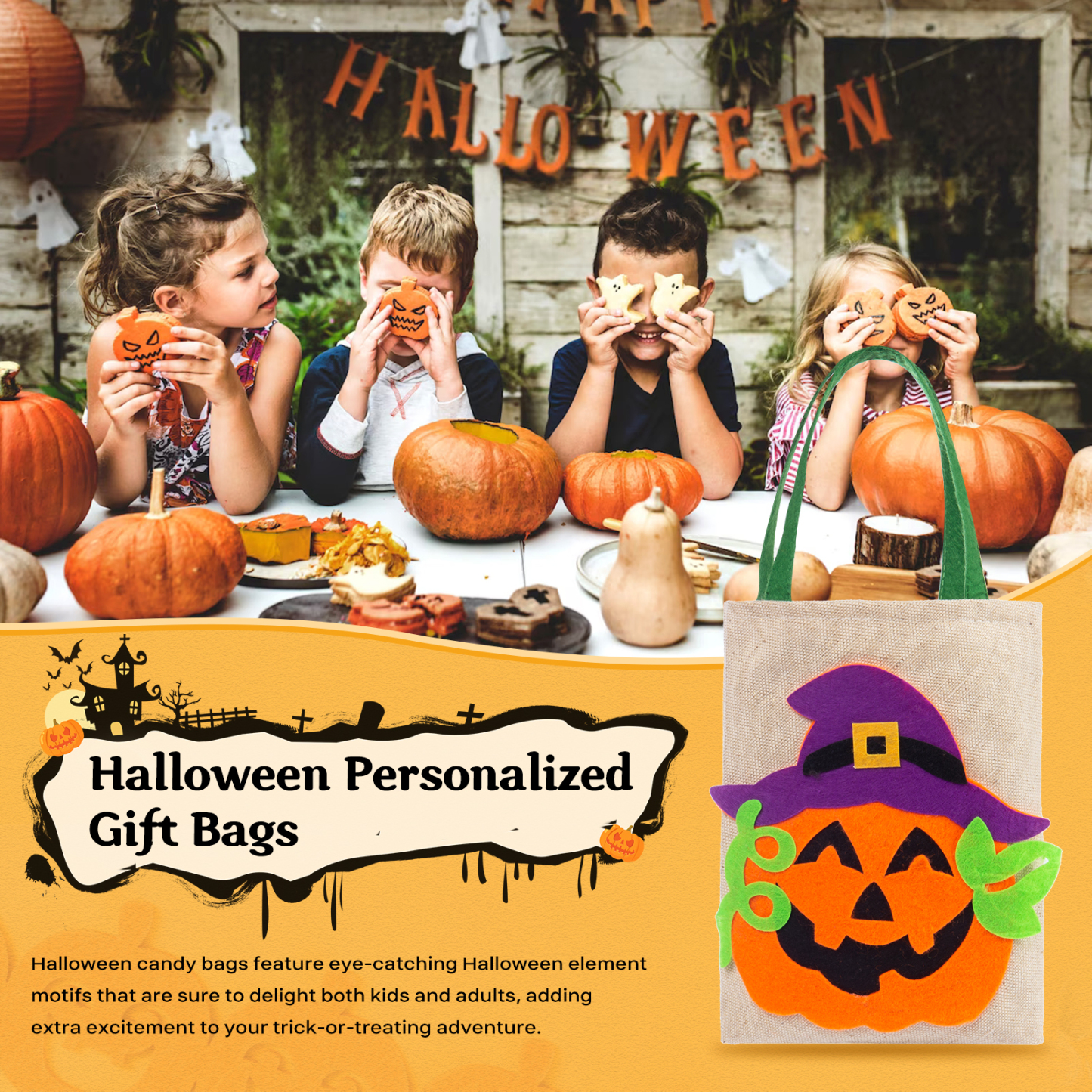 Secchiello Halloween borsa per caramelle regalo per i bambini contenitore cioccolatini 1 nome personalizzato