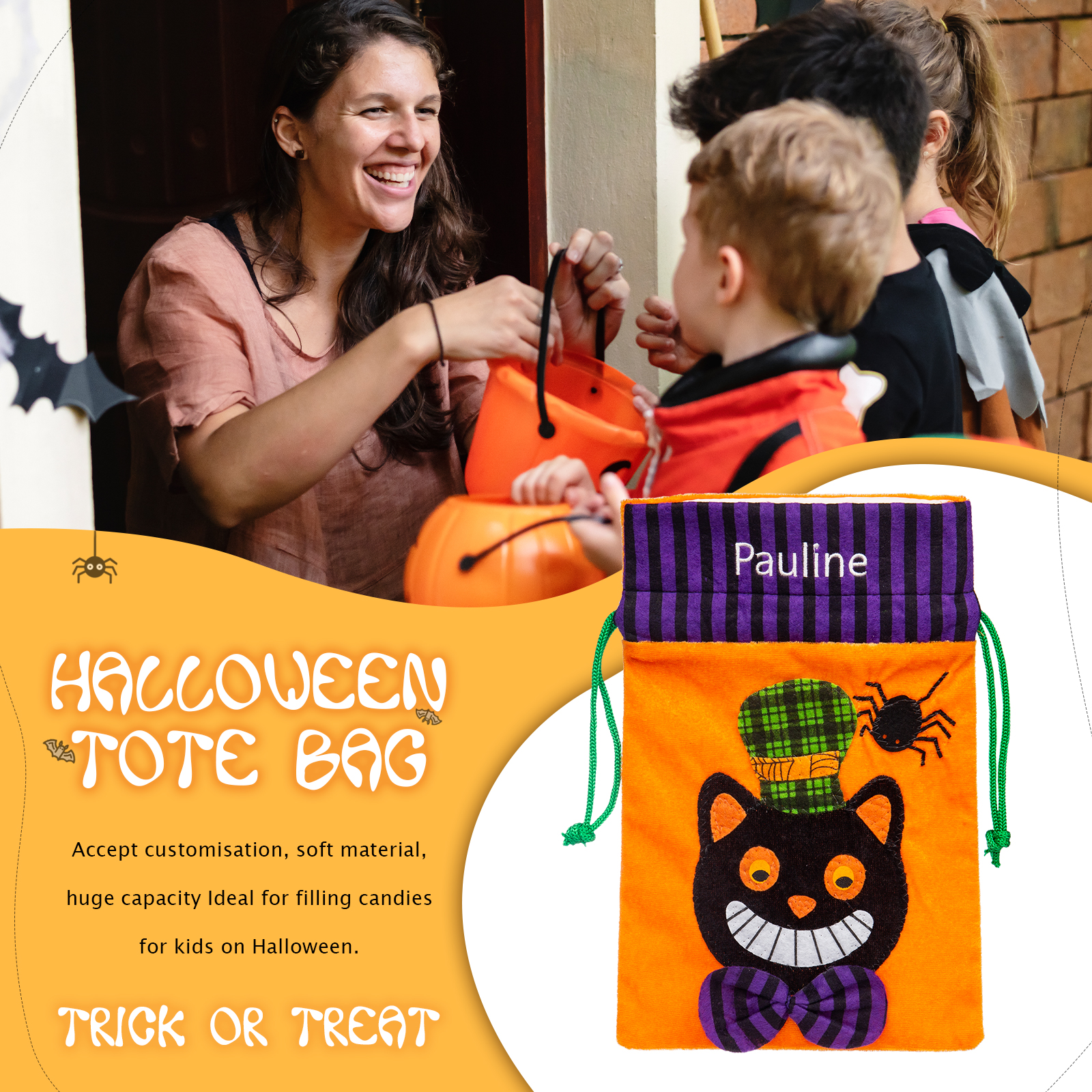 Secchiello Halloween borsa per caramelle regalo per i bambini contenitore cioccolatini 1 nome personalizzato