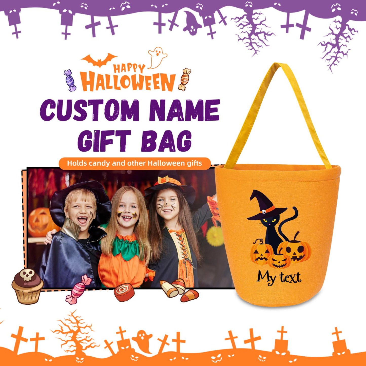 Secchiello Halloween borsa per caramelle regalo per i bambini contenitore cioccolatini 1 nome personalizzato
