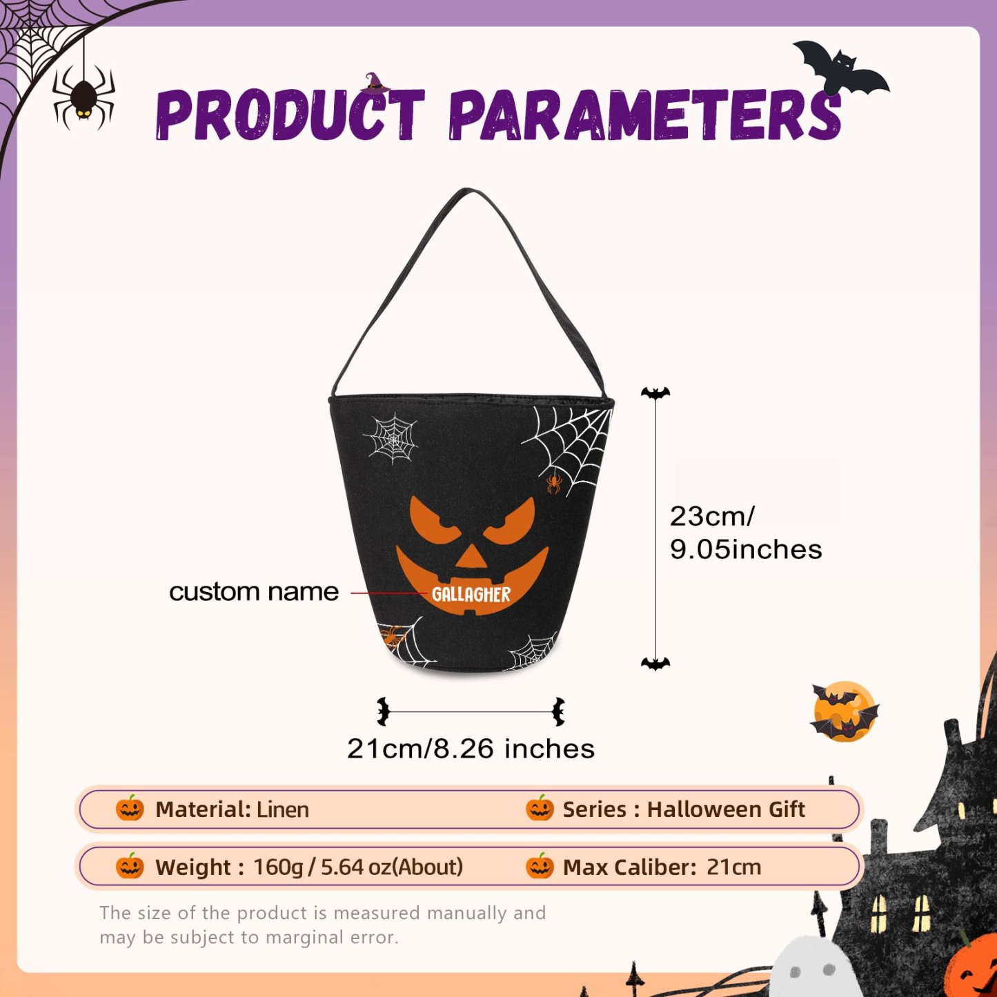 Secchiello Halloween borsa per caramelle regalo per i bambini contenitore cioccolatini 1 nome personalizzato
