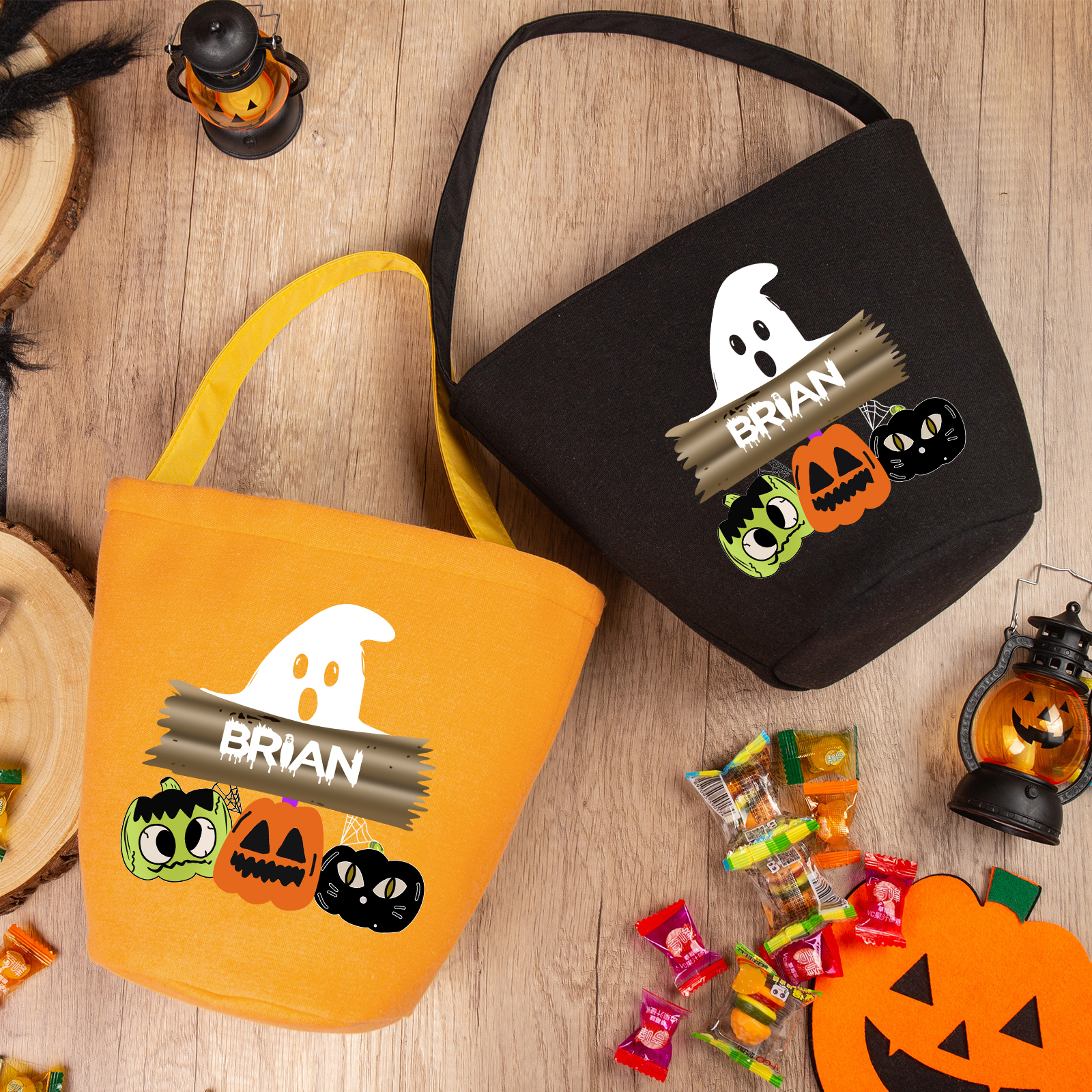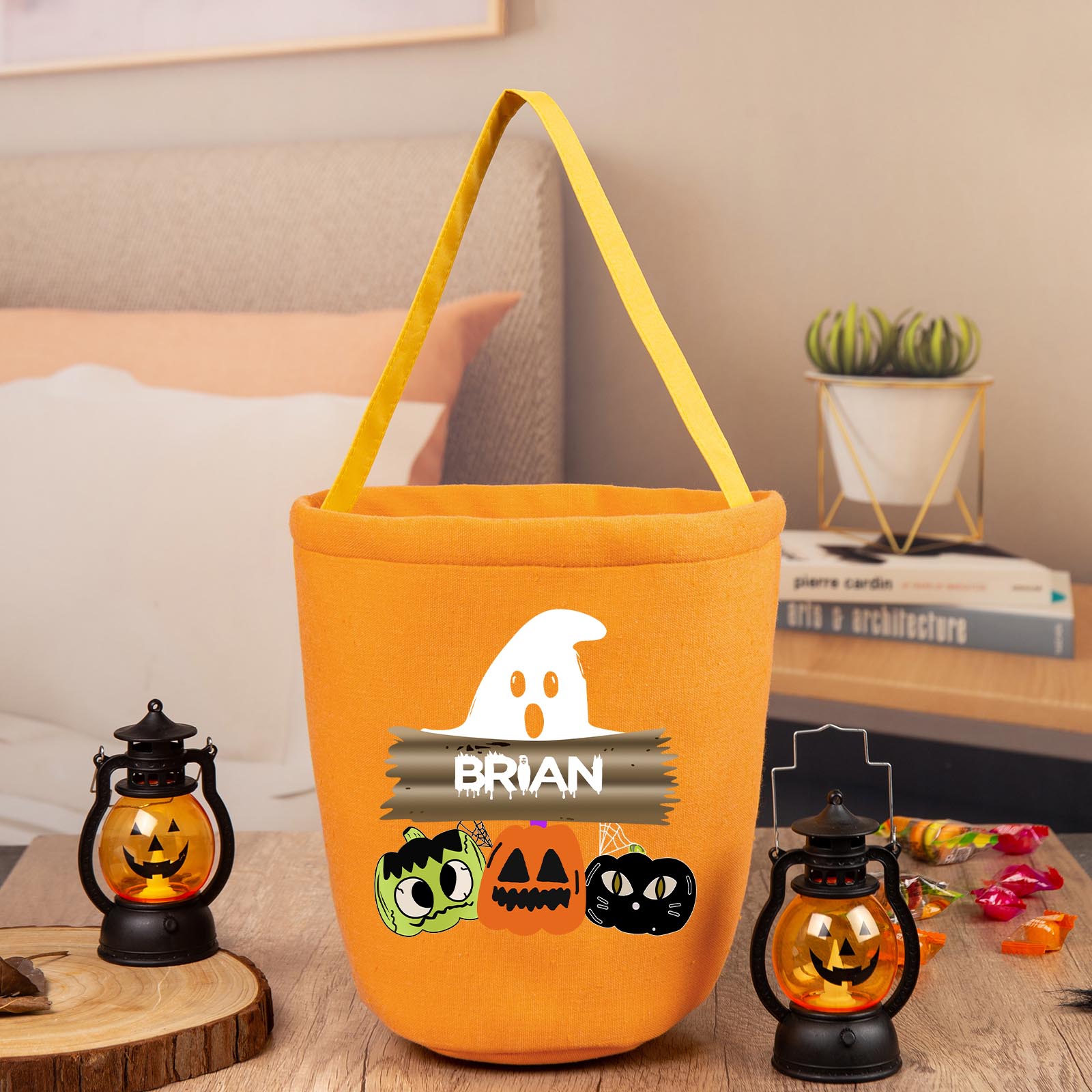 Secchiello Halloween borsa per caramelle regalo per i bambini contenitore cioccolatini 1 nome personalizzato