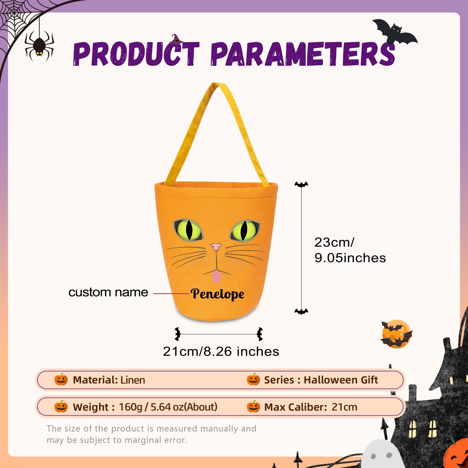 Secchiello Halloween borsa per caramelle regalo per i bambini contenitore cioccolatini 1 nome personalizzato
