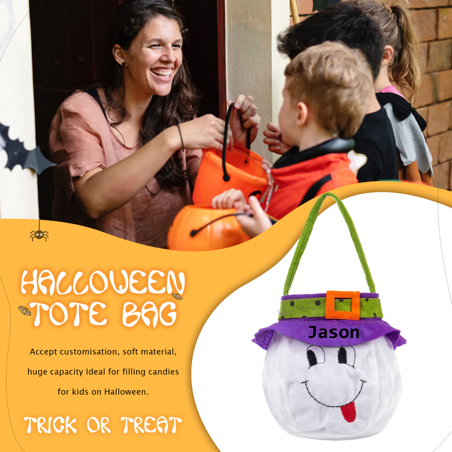 Halloween Secchiello borsa per caramelle regalo per i bambini contenitore cioccolatini 1 nome personalizzato