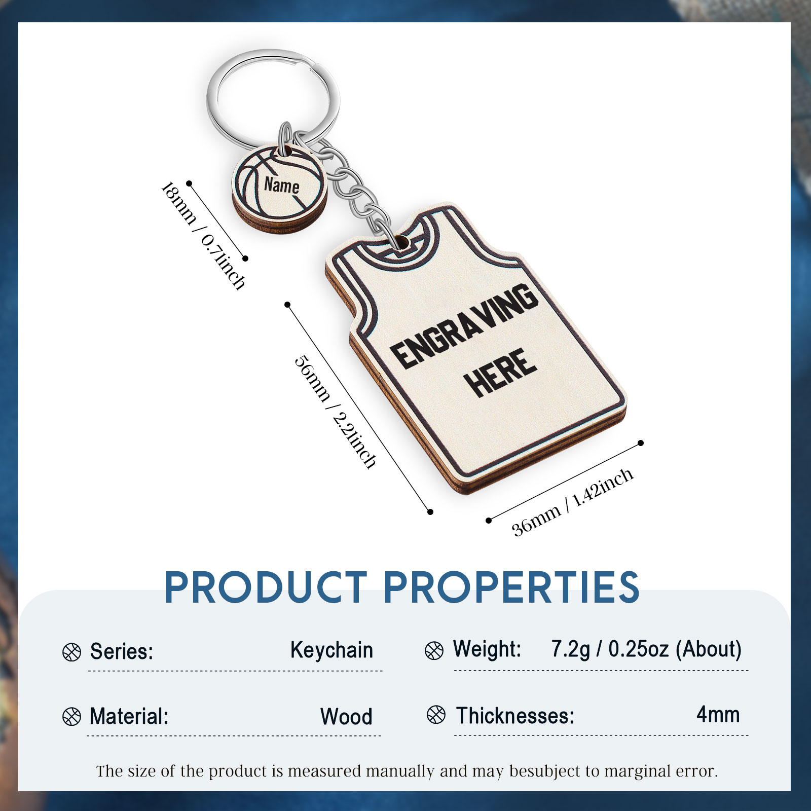 Portachiavi maglia e pallacanestro personalizzato con 1 nome e 1 testo per papà/figlio