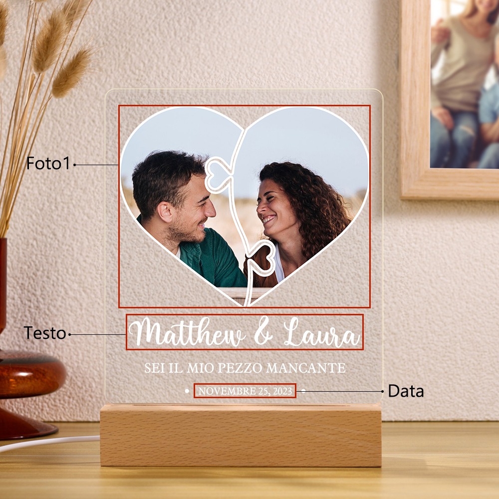 Sei il mio pezzo mancante-Lampada LED per coppia 2 nomi personalizzabili
