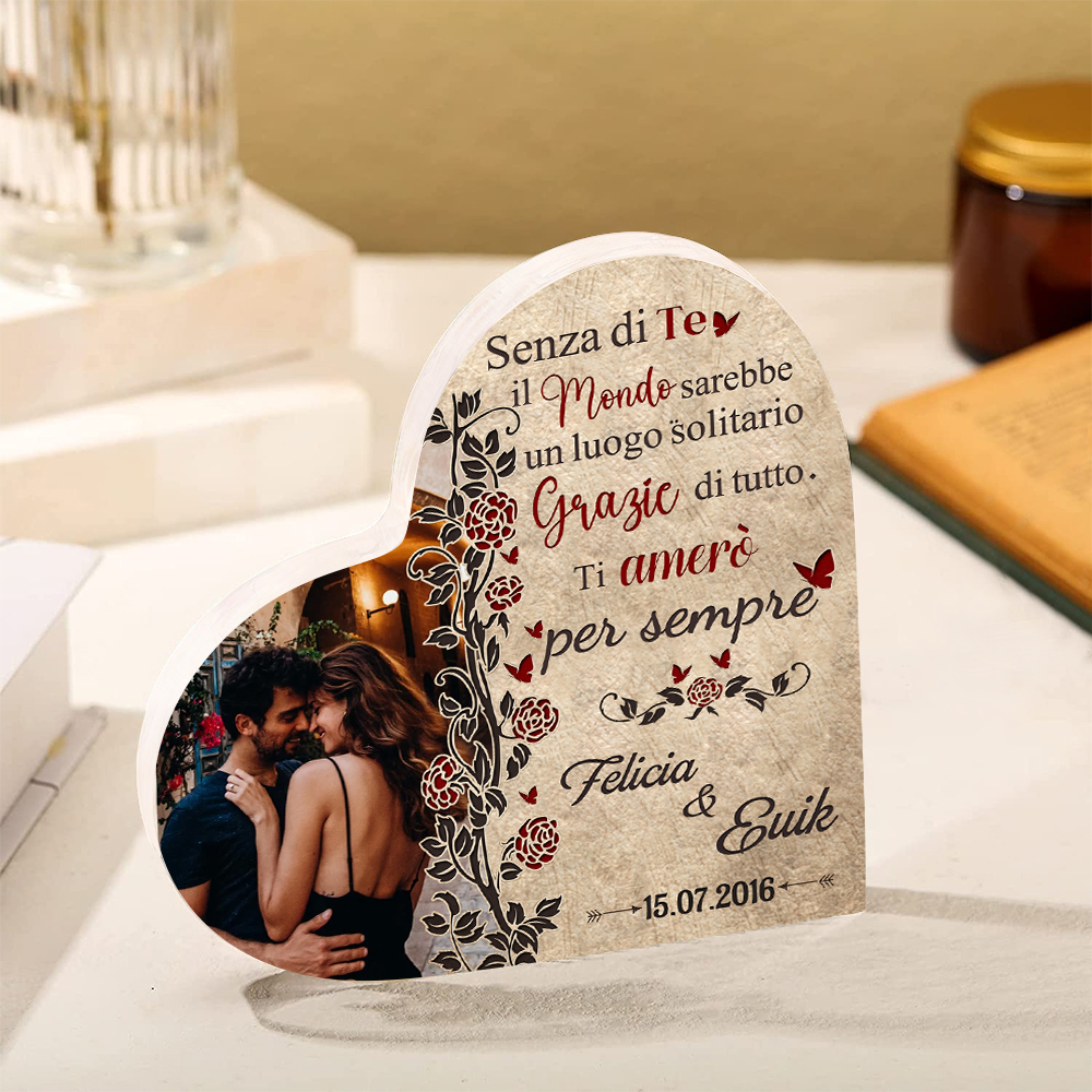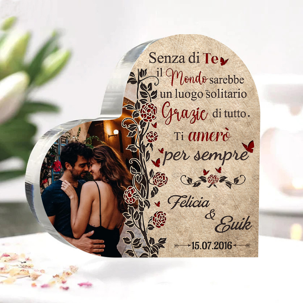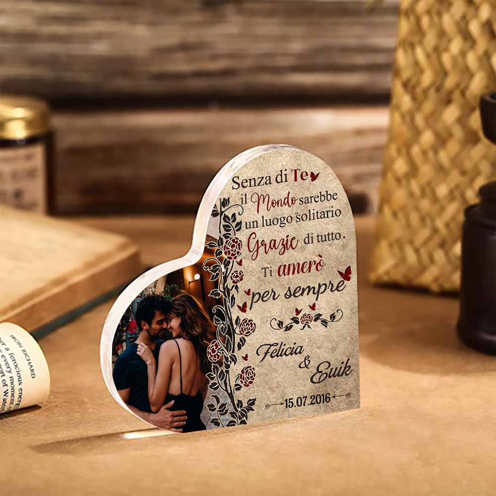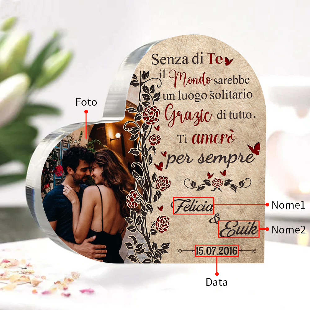 Senza di te il mondo sarebbe un luogo solitario-Deco acrilico cuore per coppia 2 nomi 1 data e 1 fotopersonalizzabili