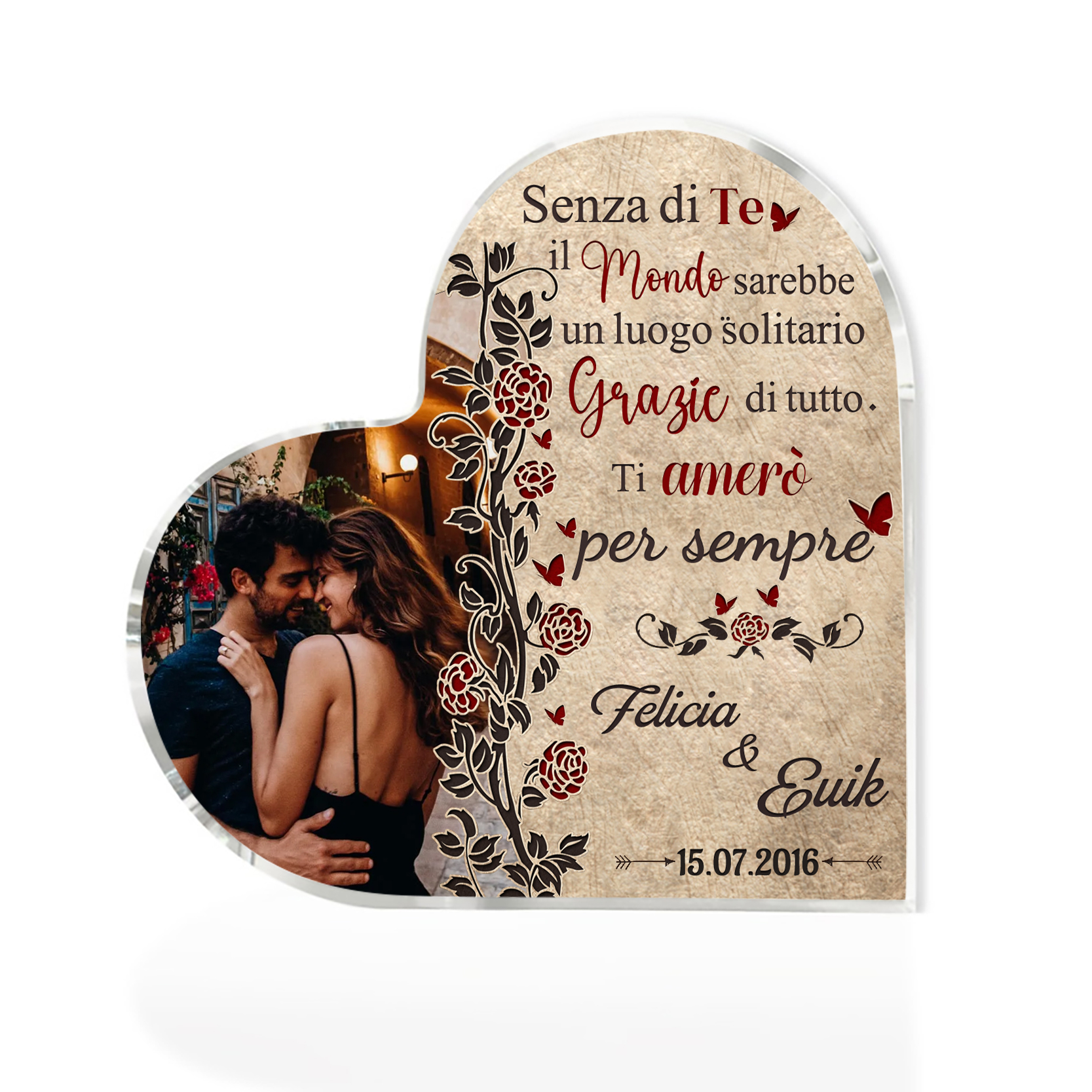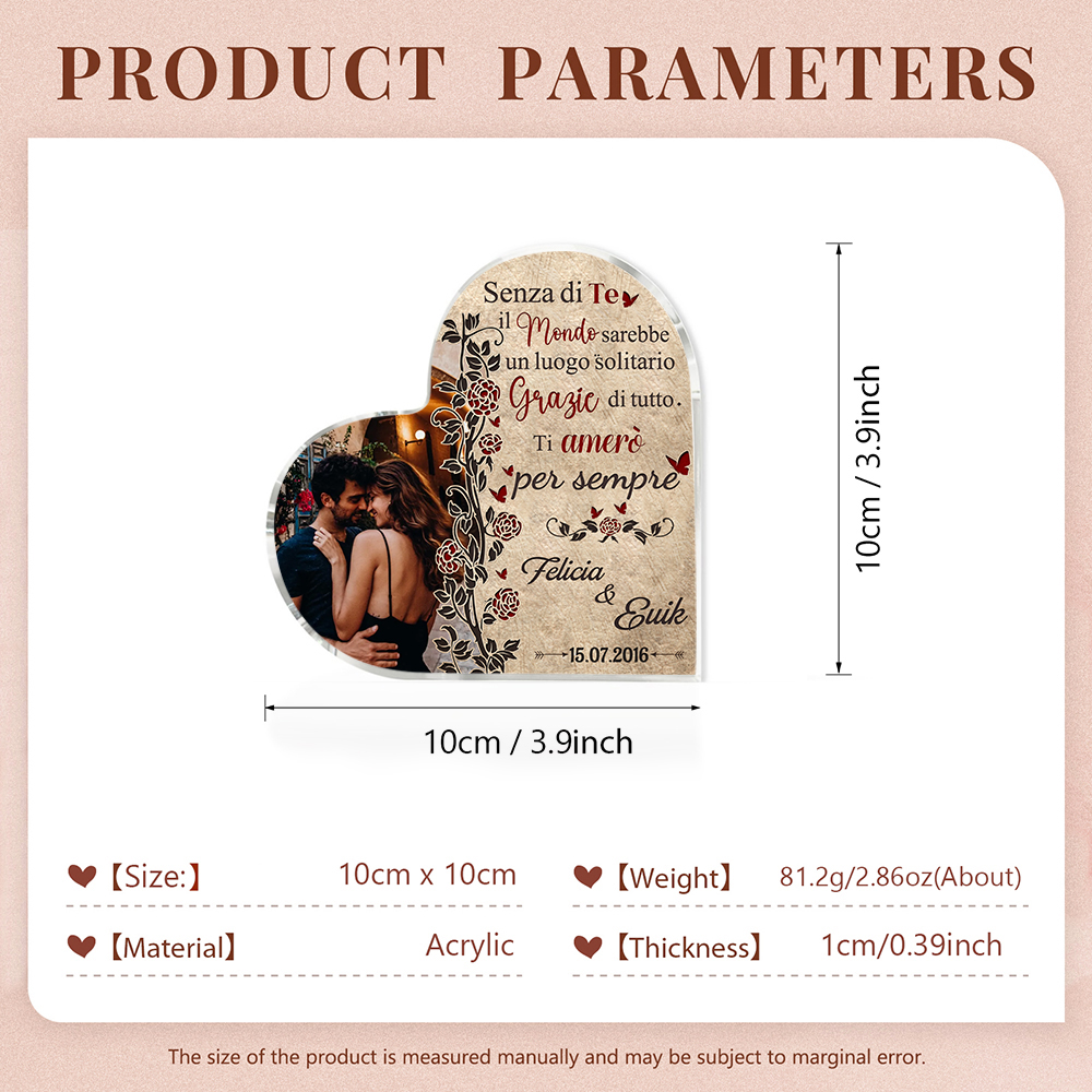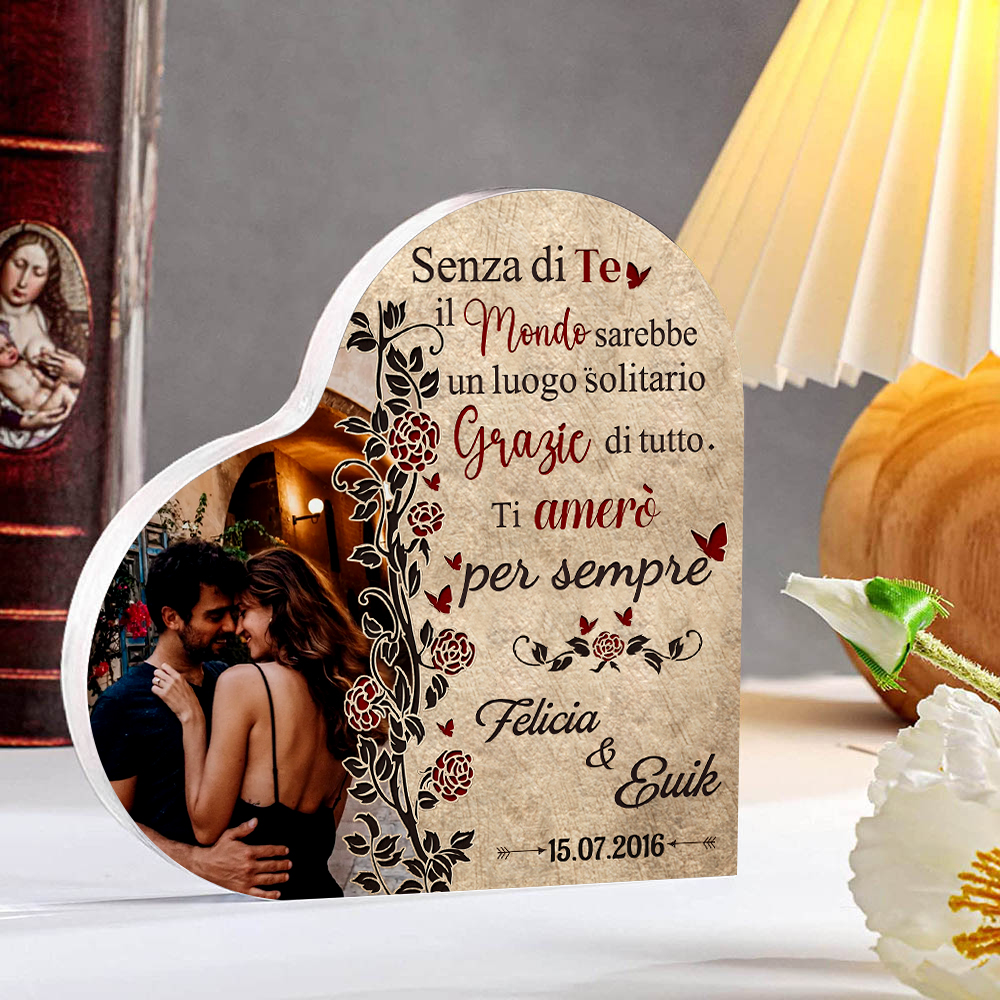 Senza di te il mondo sarebbe un luogo solitario-Deco acrilico cuore per coppia 2 nomi 1 data e 1 fotopersonalizzabili