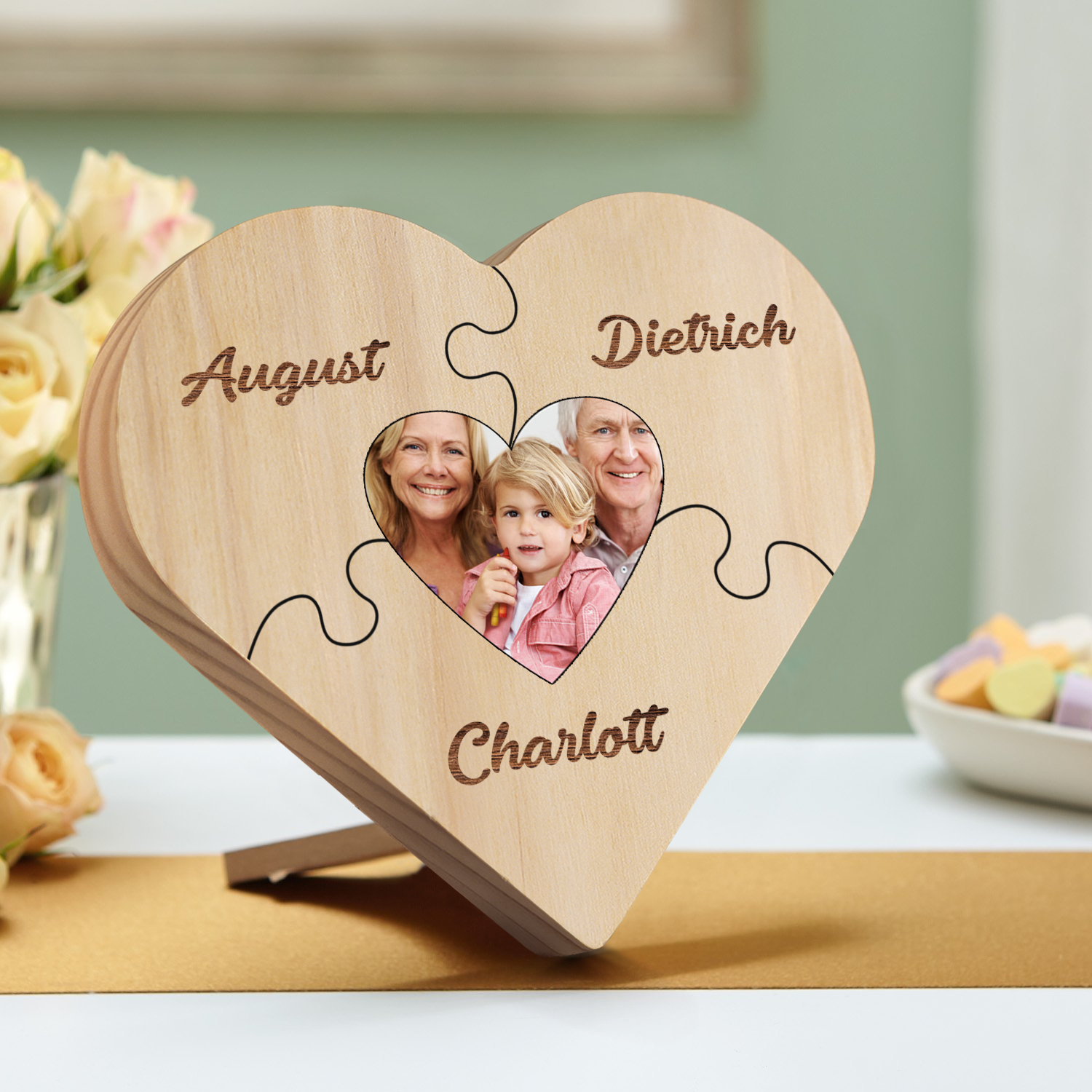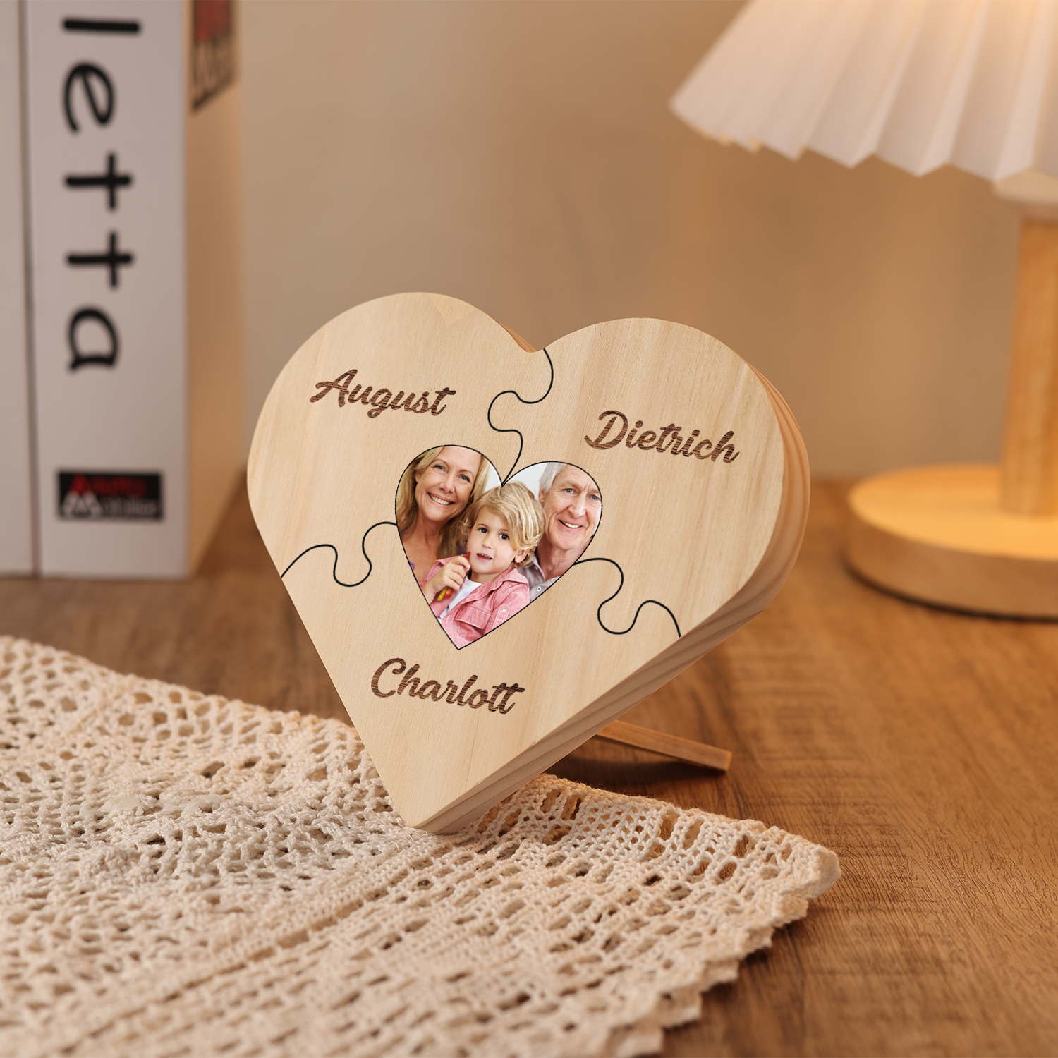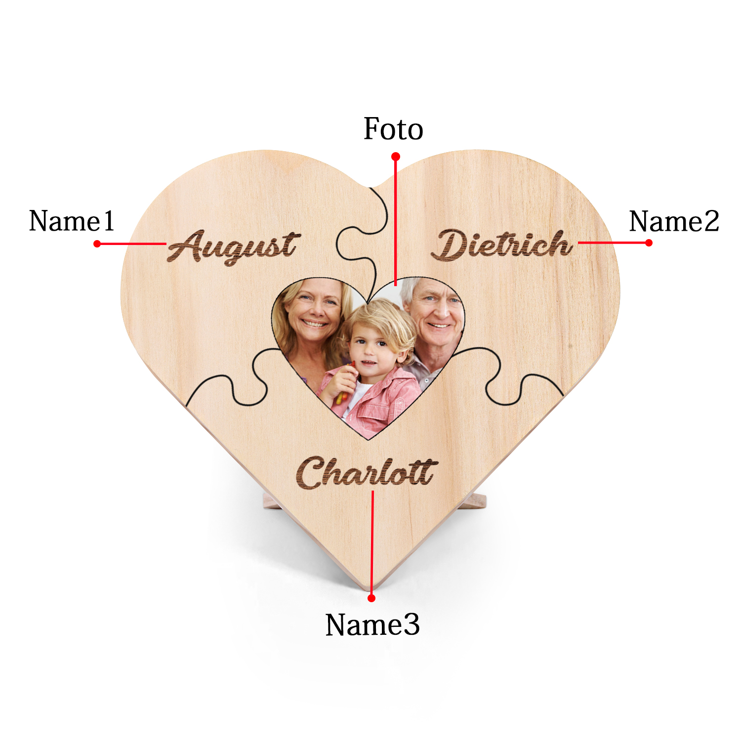 Targa di legno a cuore puzzle per famiglia 3 nomi personalizzabili