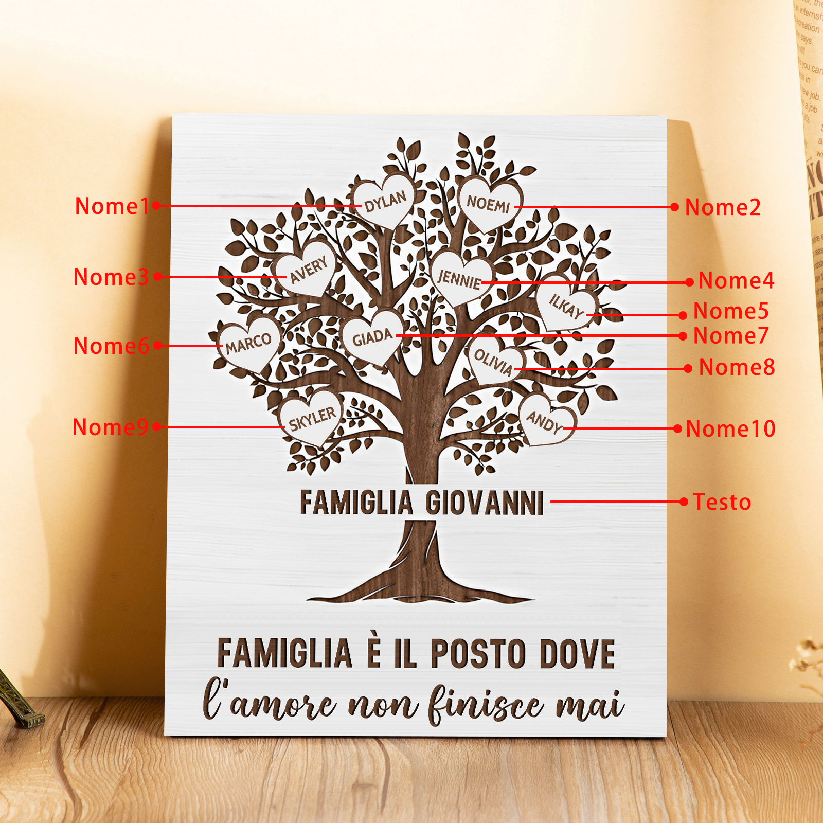 Targa di legno albero della vita 10 nomi personalizzabili regalo familiare