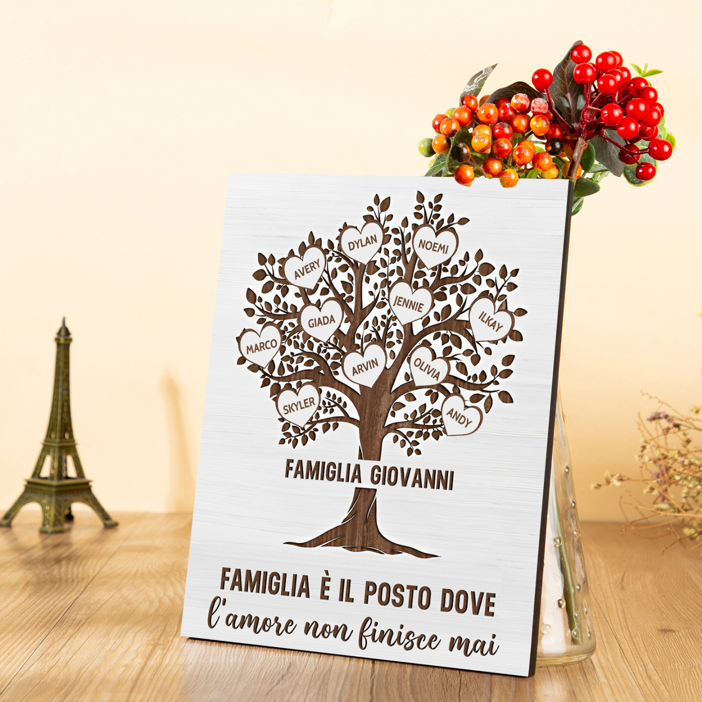Targa di legno albero della vita 11 nomi personalizzabili regalo familiare